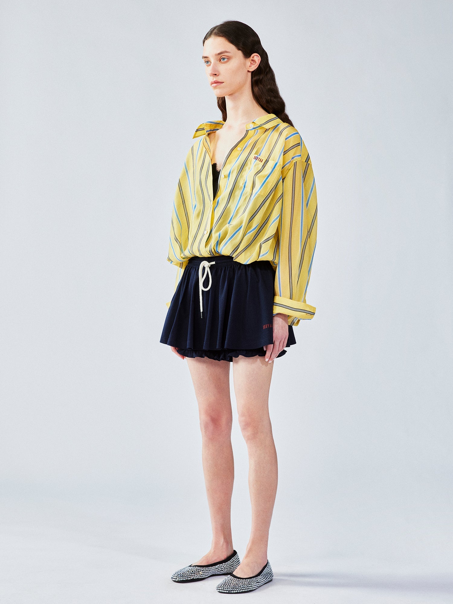 Distressed satin tulip jersey