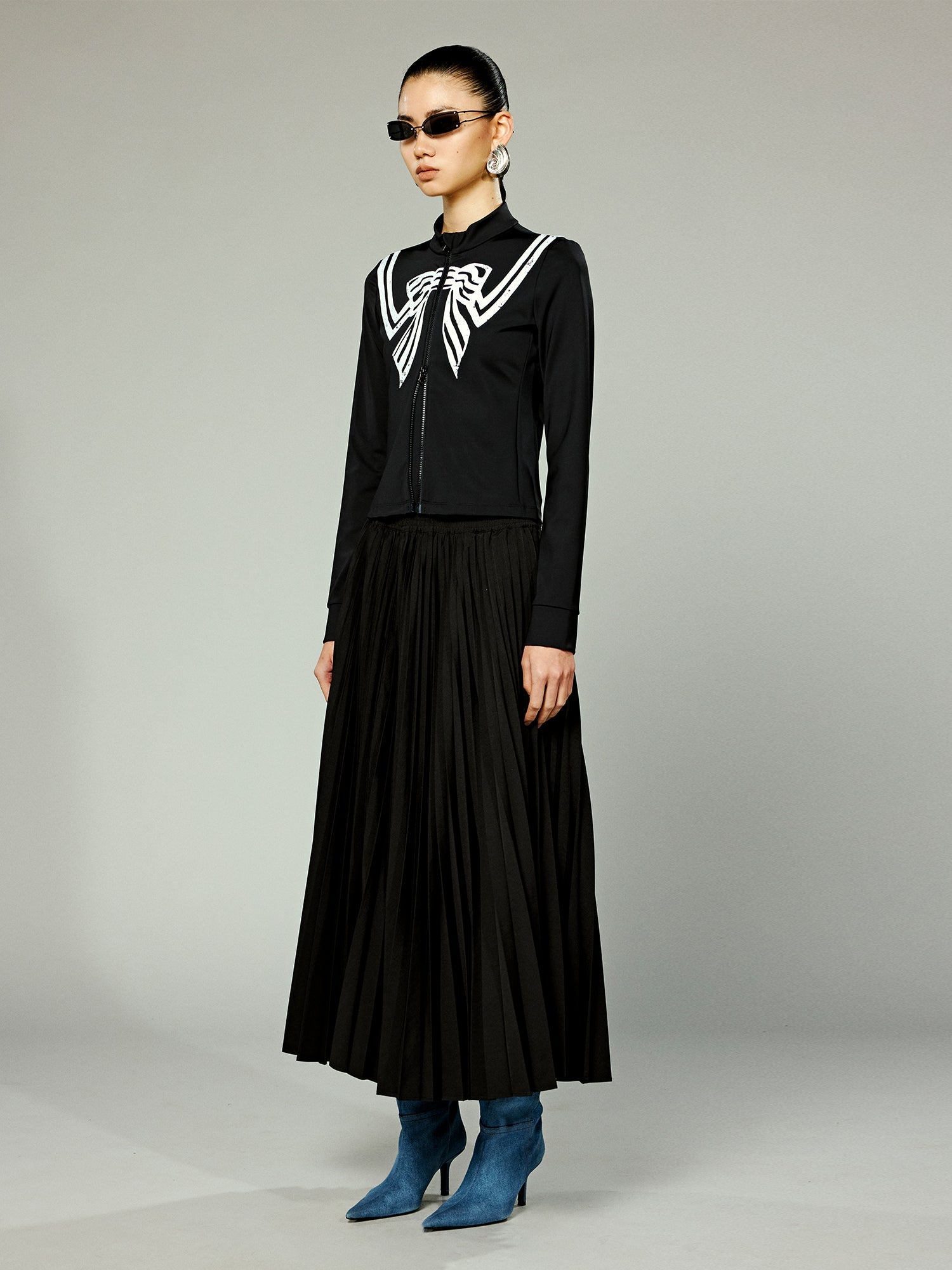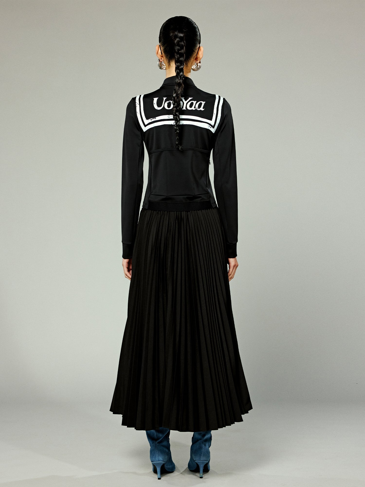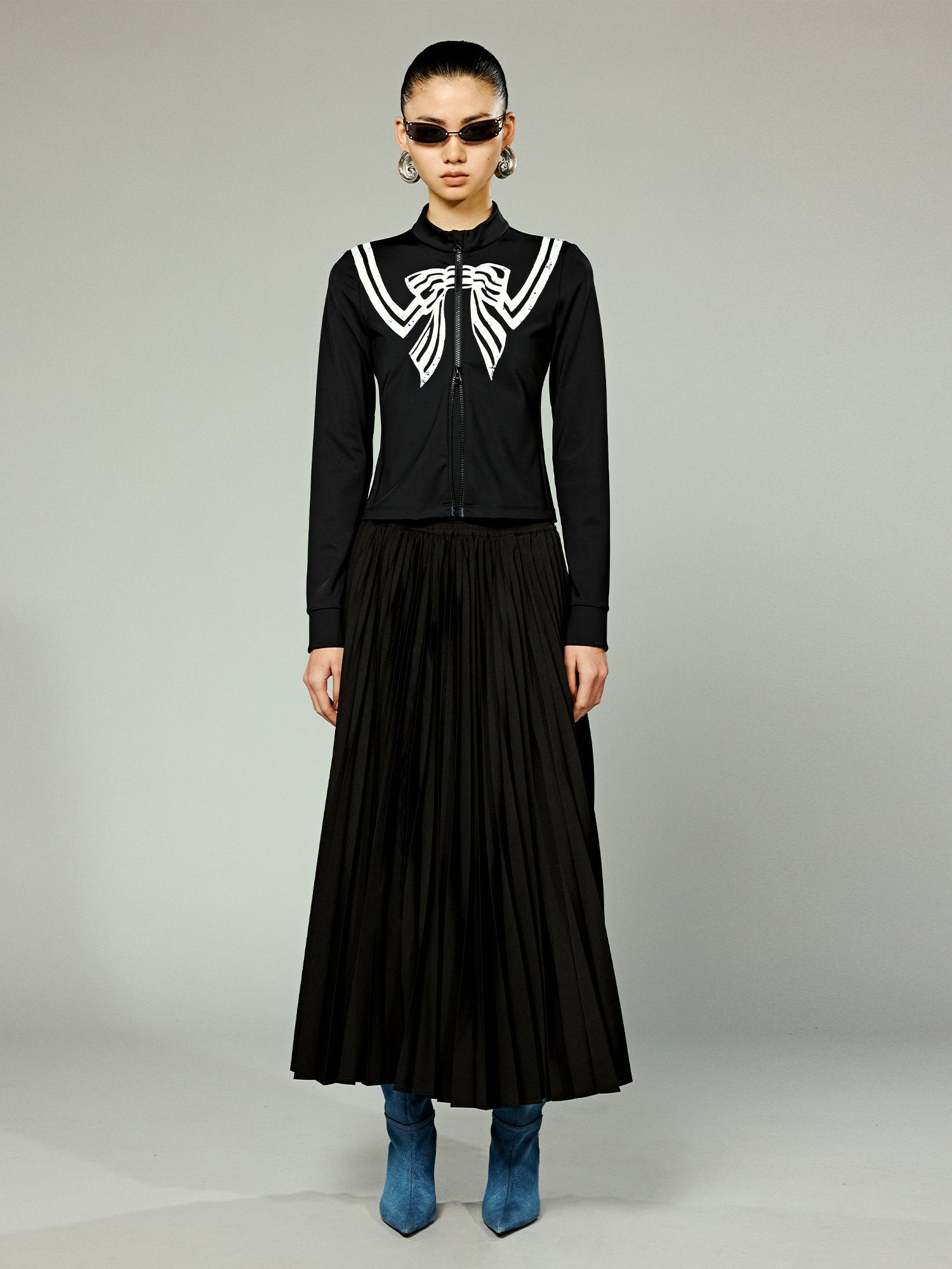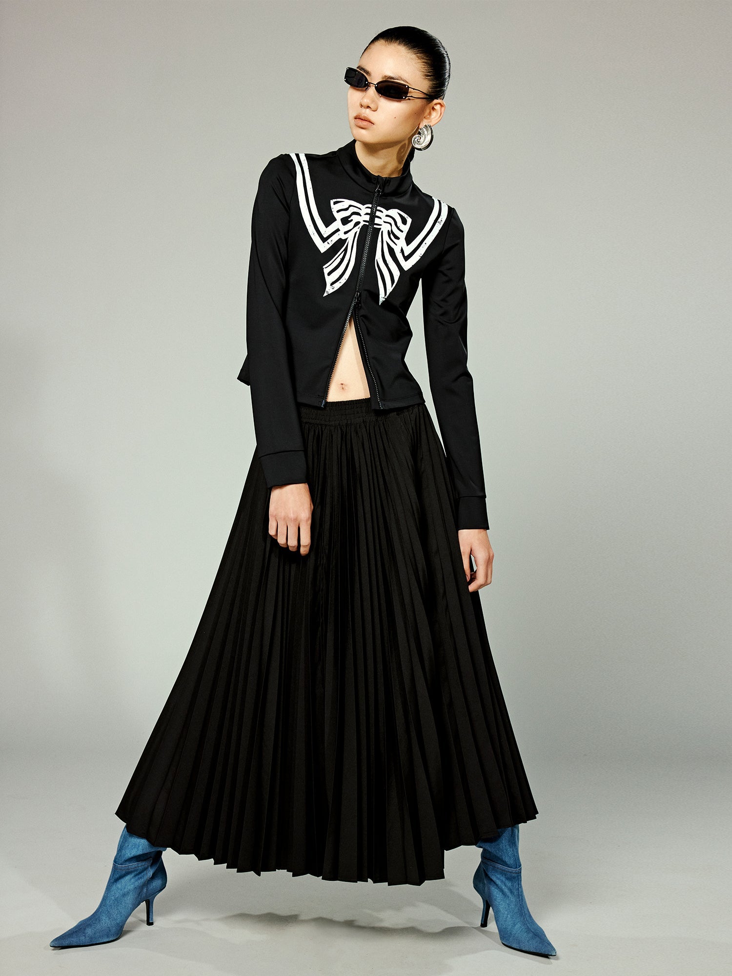 ポップアートコミックネイビーカラーのボウ付きサイクリングジャケット