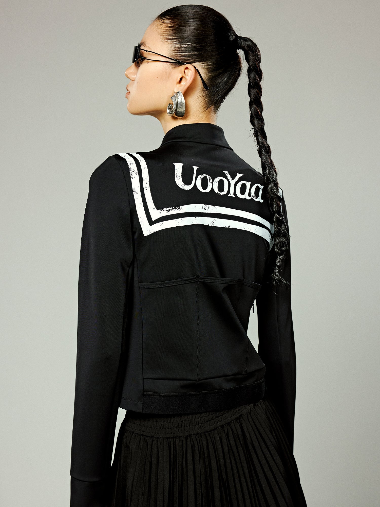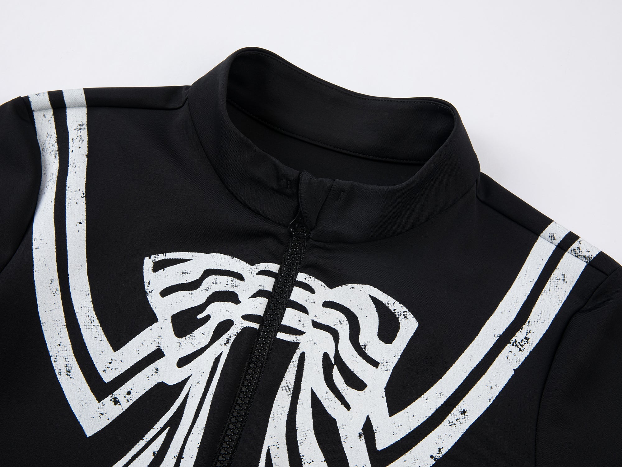 このジャケットはポップアートコミックの技法を使用し、幻想的なリボンと破線のネイビーカラーを特徴としており、プロ仕様のサイクリングジャケットを活気のある遊び心のあるアイテムに変身させています。