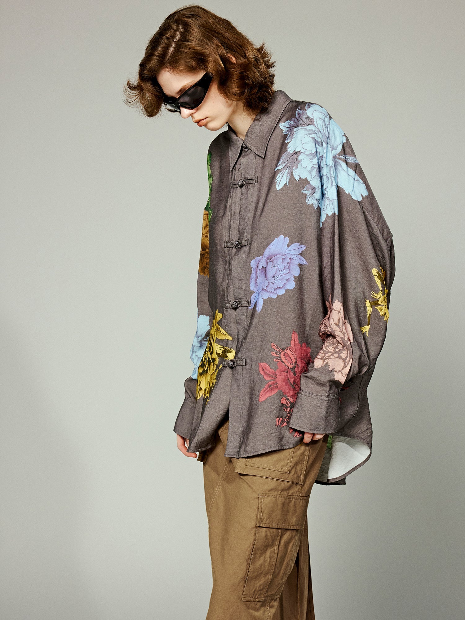 精巧なヴィンテージのカエルボタンをハンドメイドで仕上げたこのシャツは、レトロな花柄と精巧なモンスターモチーフを組み合わせ、新しいチャイナスタイルに新鮮な活力を吹き込んでいます。UOOYAAの遊び心と遊び心あふれるセンスが光ります。