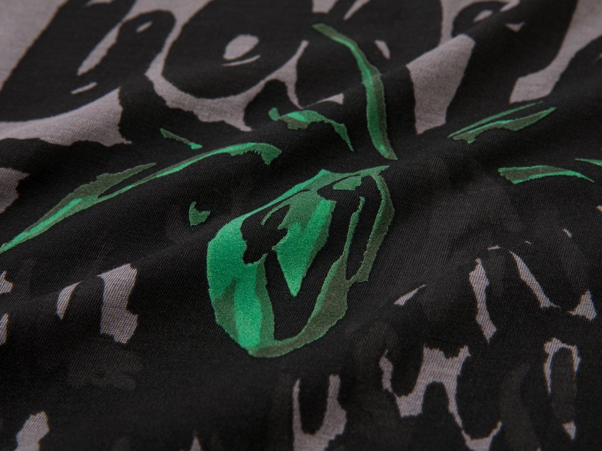 フロントのロゴに、デジタルプリントのまだら模様のイチゴのデザインを組み合わせ、さらにフロックプリントを重ねて、豊かで目を引く質感を実現しました。
