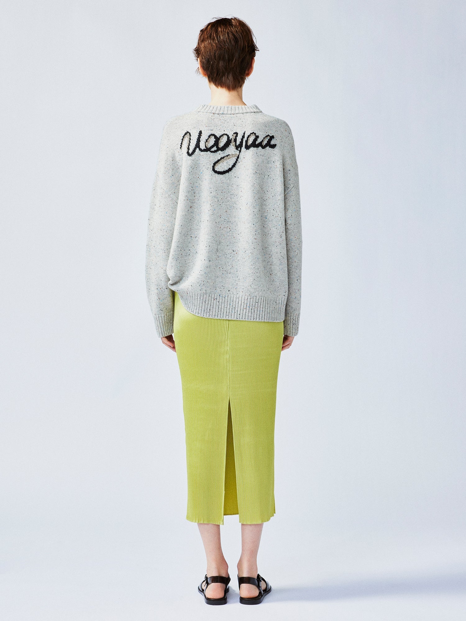 明るく生き生きとしたライムグリーンは、春の到来を告げるかのように、プリーツミディスカートに生命力のみなぎる新鮮さと活気、エネルギーを吹き込みます。
