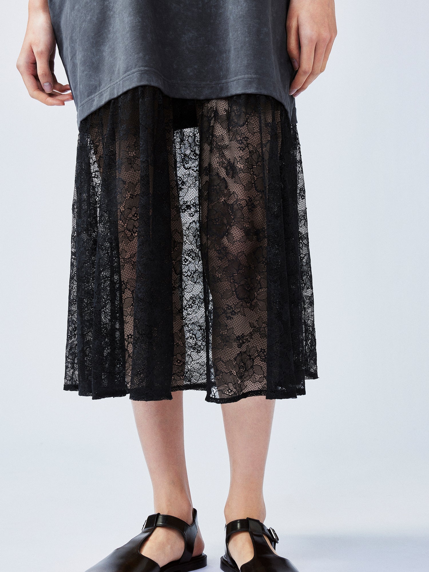 クラシックなコットンTシャツにレースの裾スカートを合わせた、シンプルさの中にロマンティックな遊び心をプラス。毎日の通勤やちょっとしたお出かけにぴったりの、さりげないスタイリッシュさ。