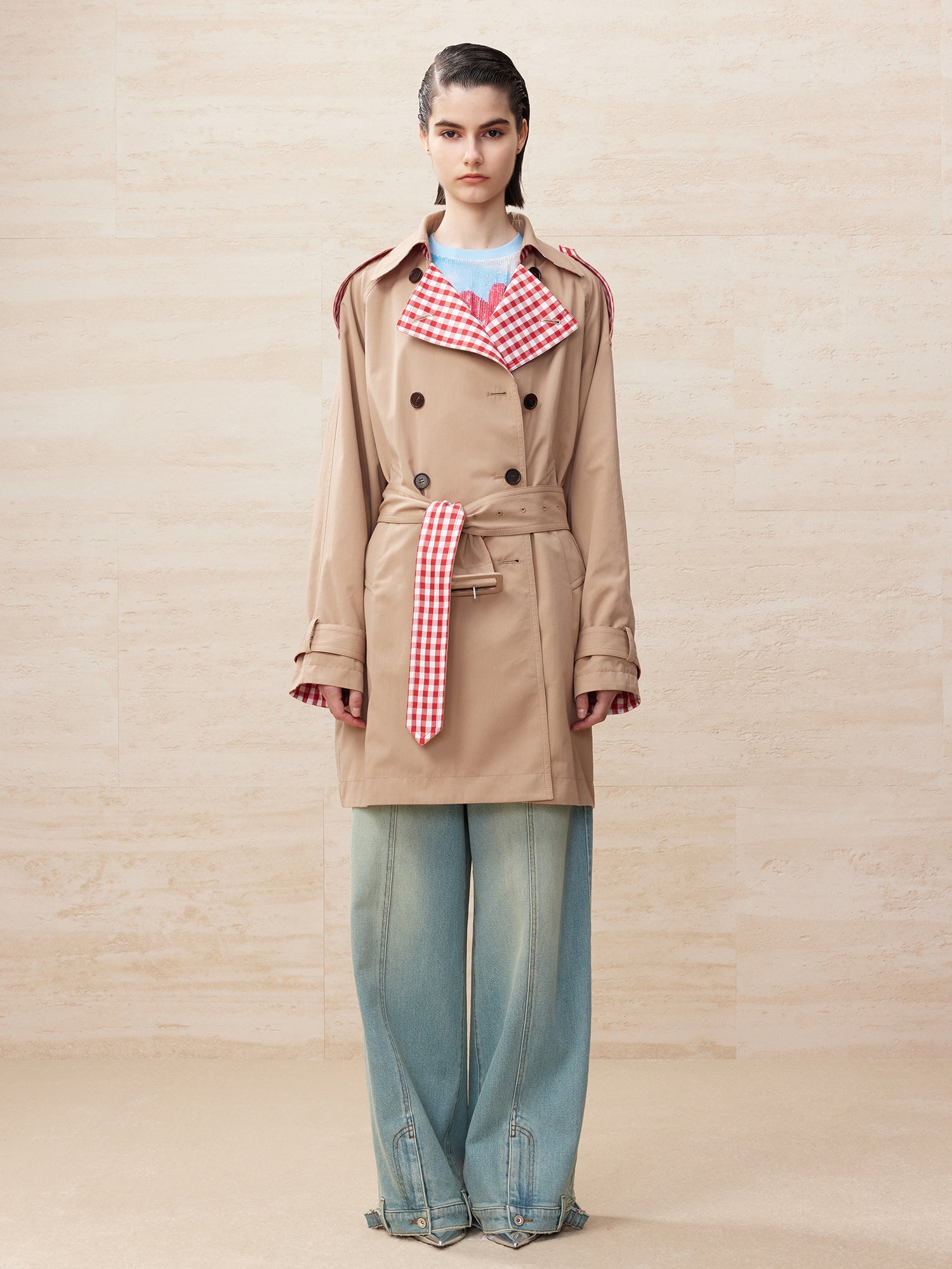 Deconstructed washed wide leg jeans
