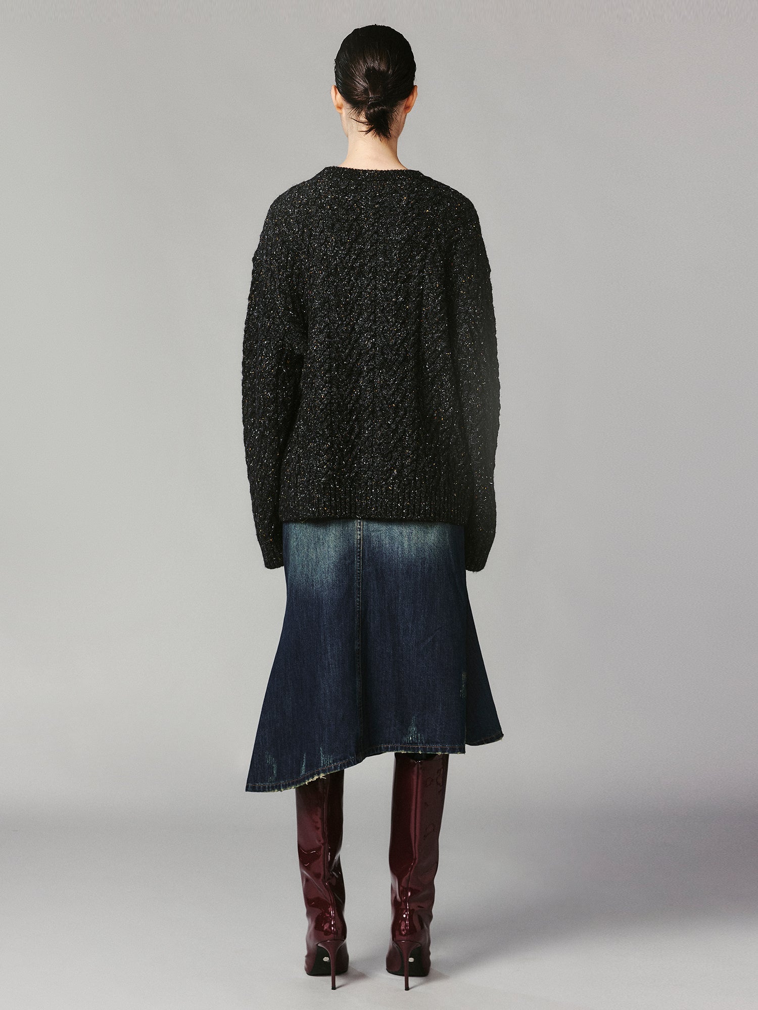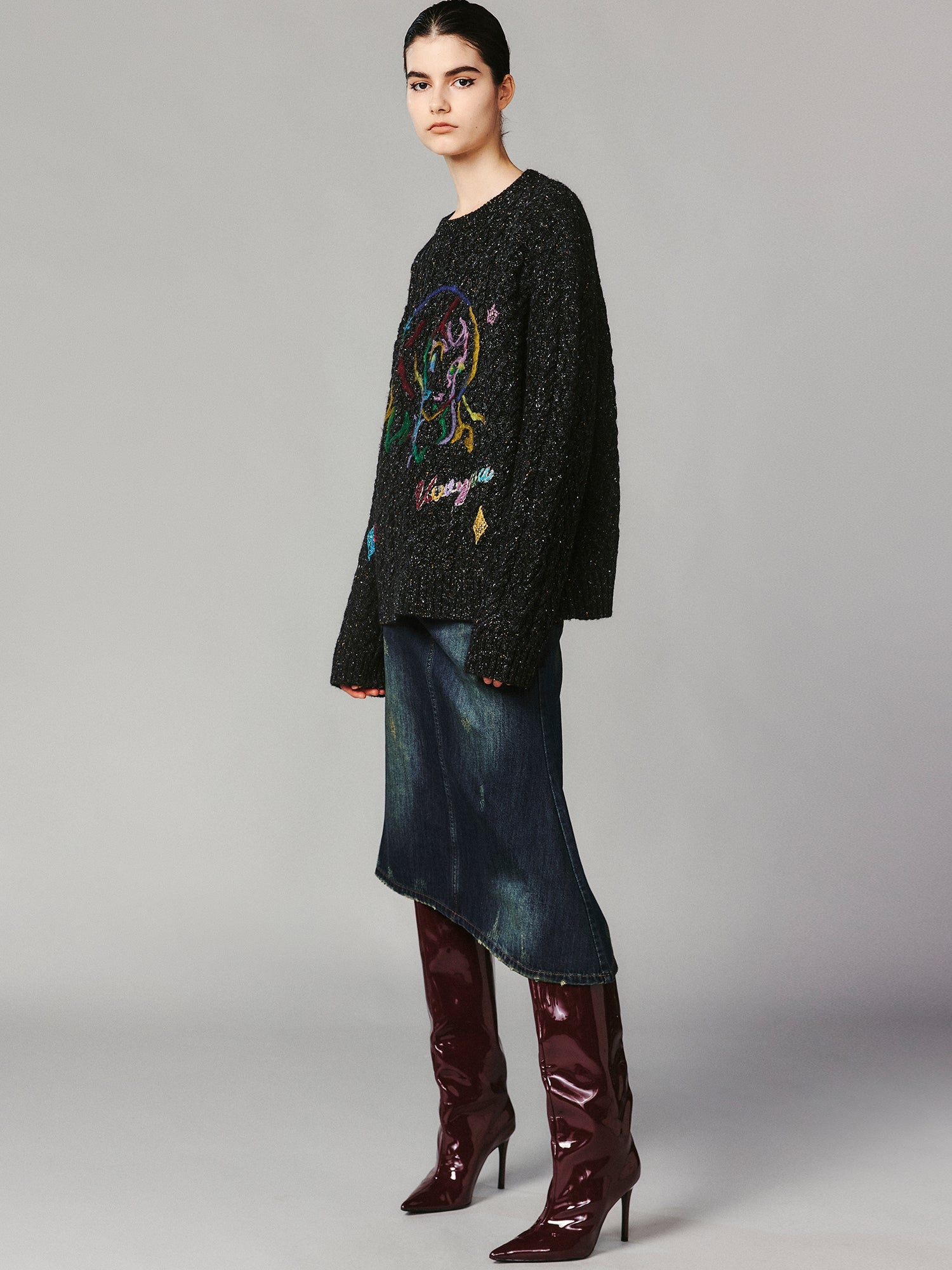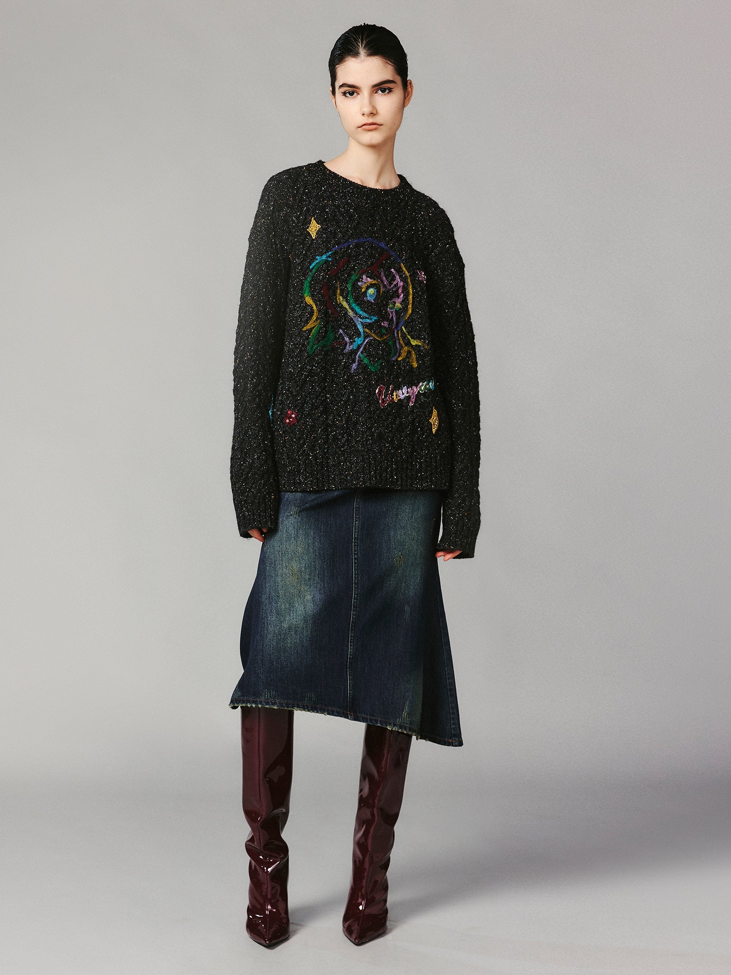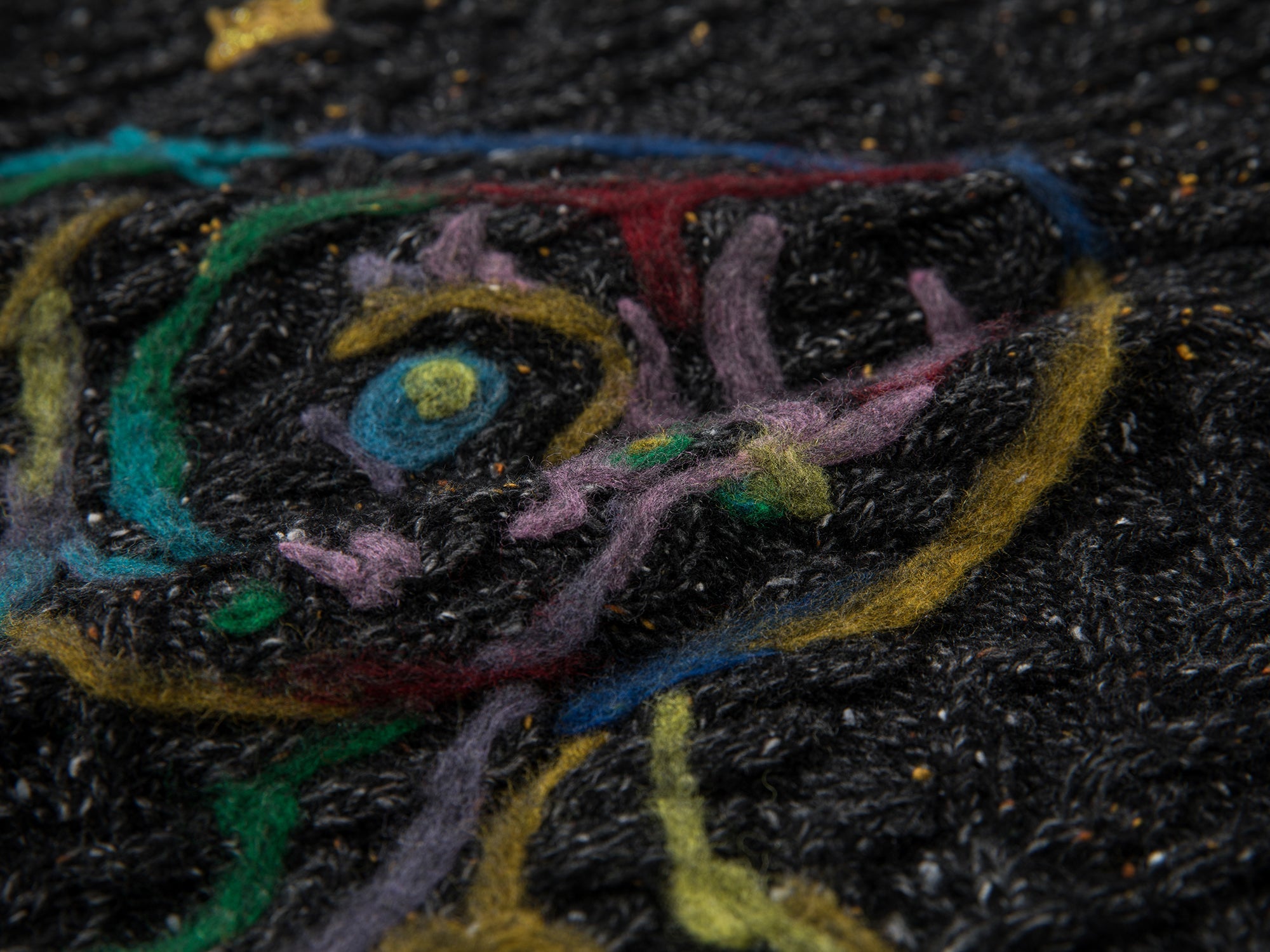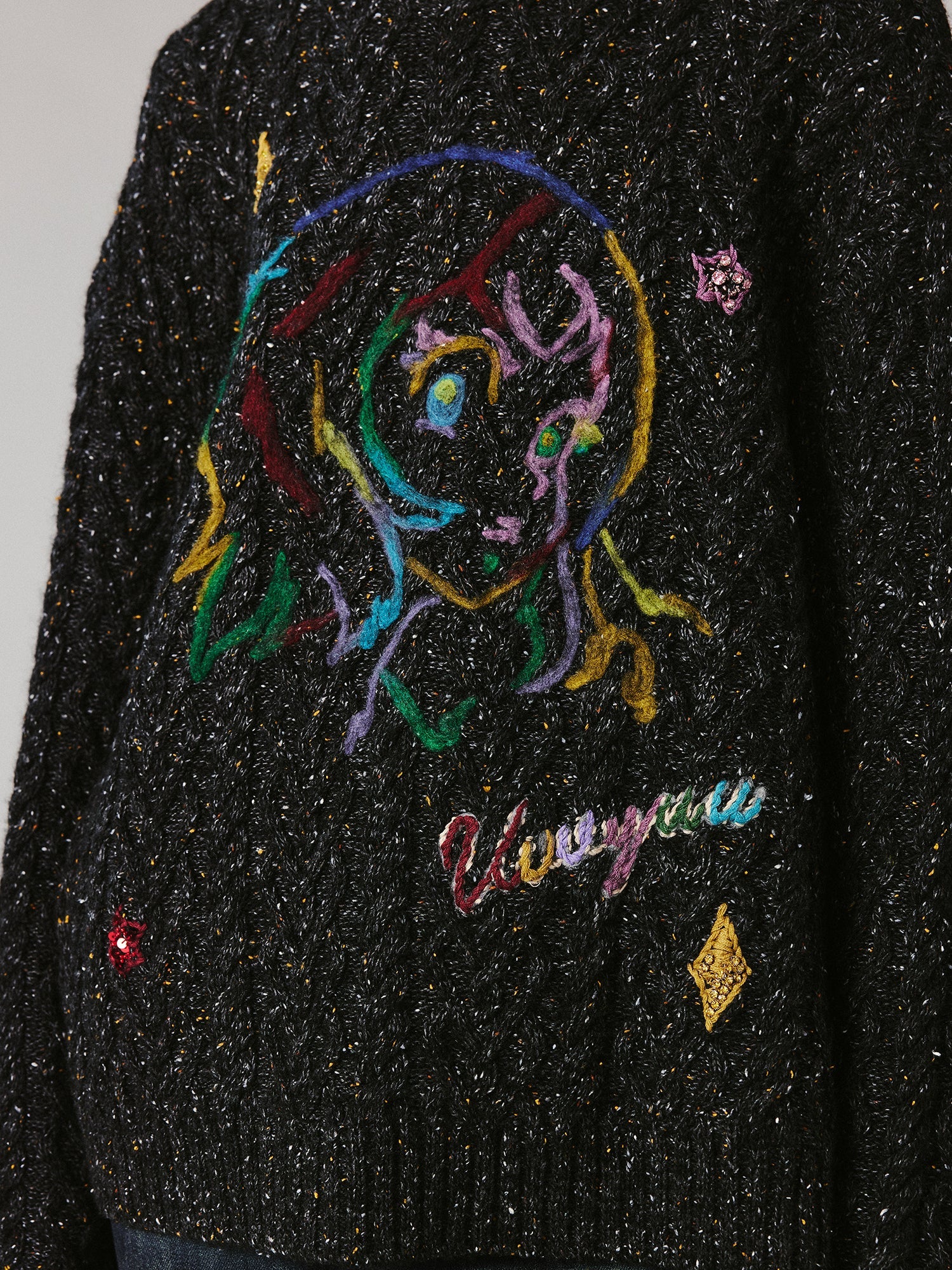 Vintage-inspired speckled yarn combined with wool felt embroidery, creating a warm and refined finish.