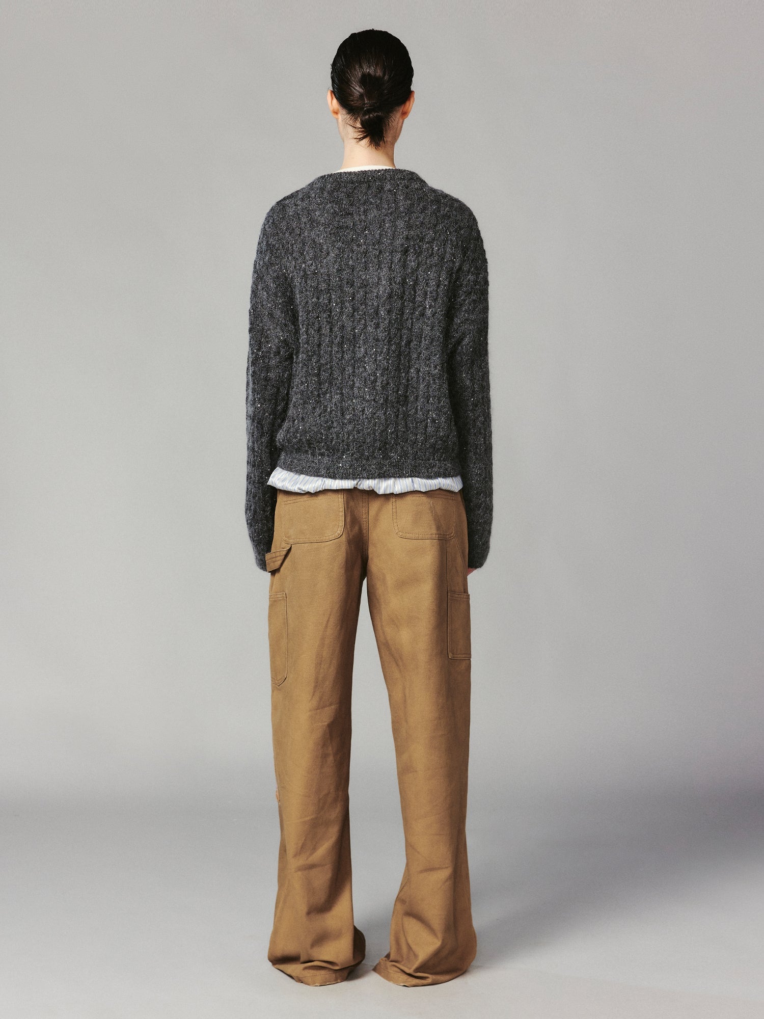 Exposed lining wool cardigan