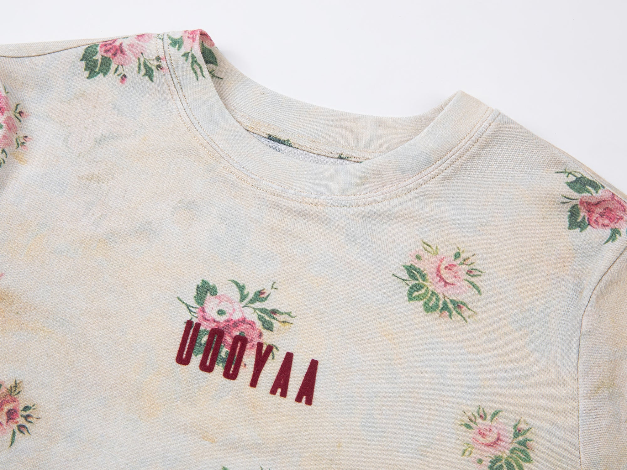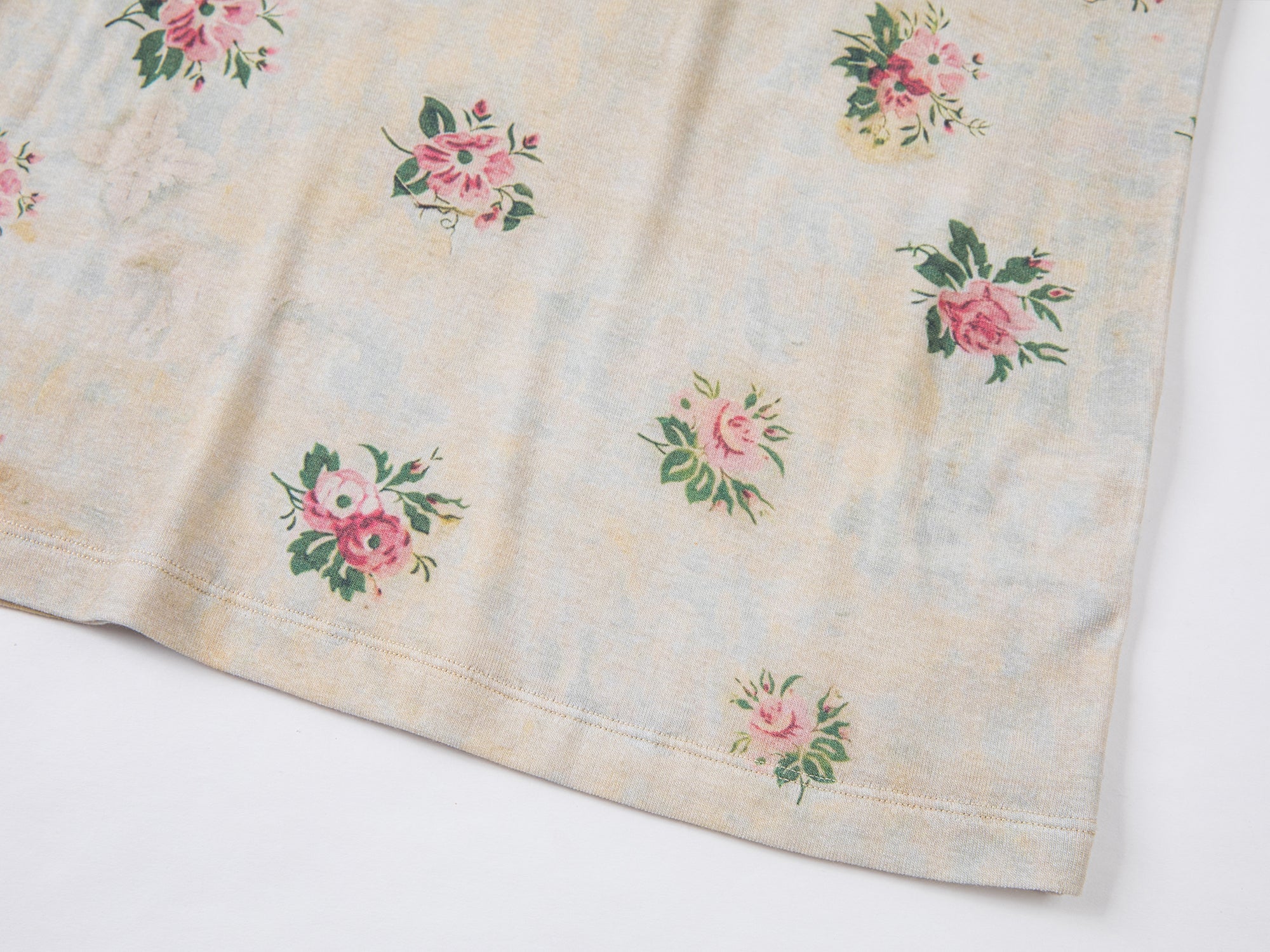 A long sleeve top featuring a vintage floral wallpaper print with subtle signs of aging, offering a warm, romantic feel.