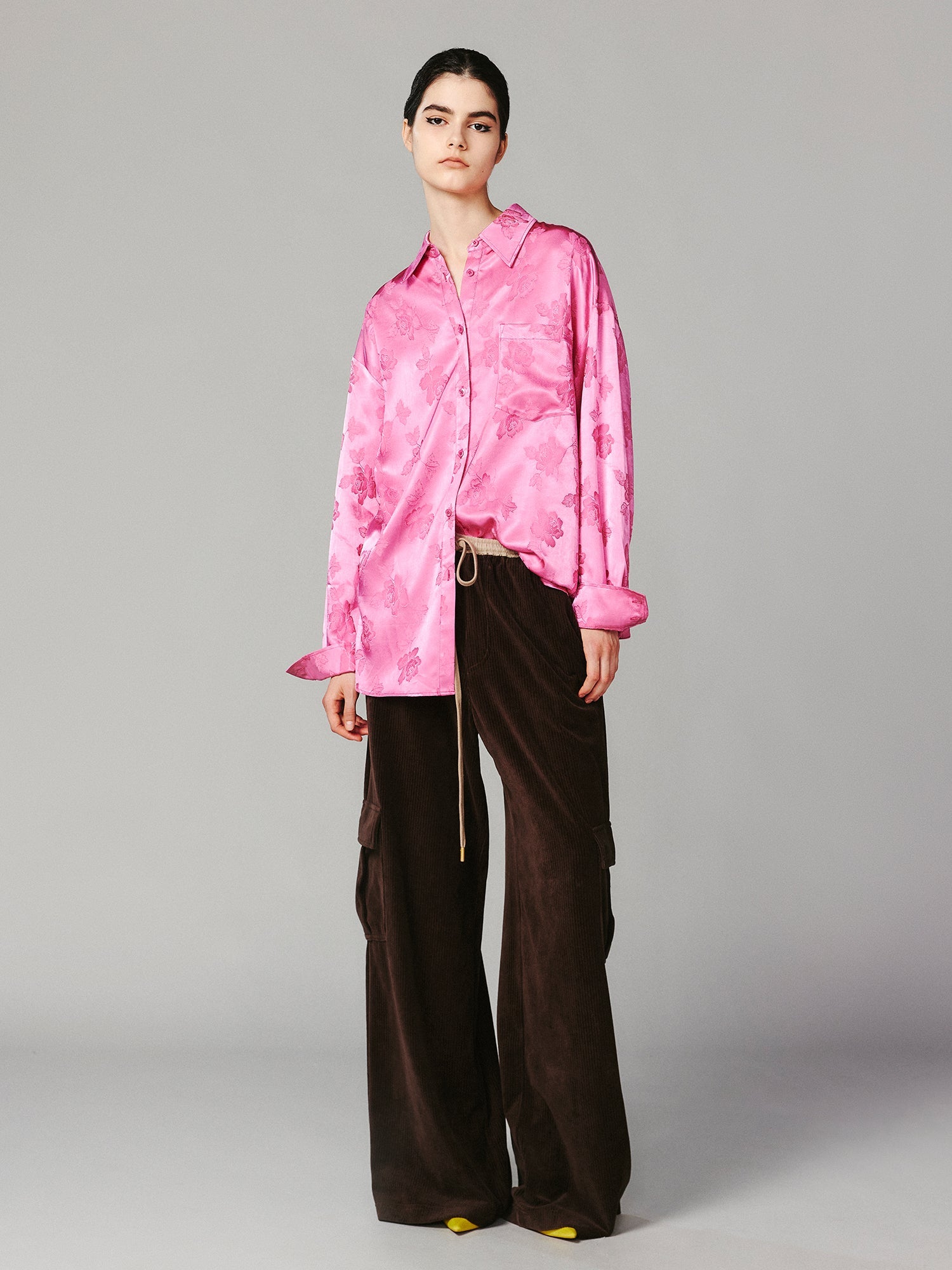 A pair of wide-leg corduroy work pants that capture the cozy atmosphere of winter, featuring a drawstring elastic waistband for a relaxed fit, vintage warmth, and easy comfort.