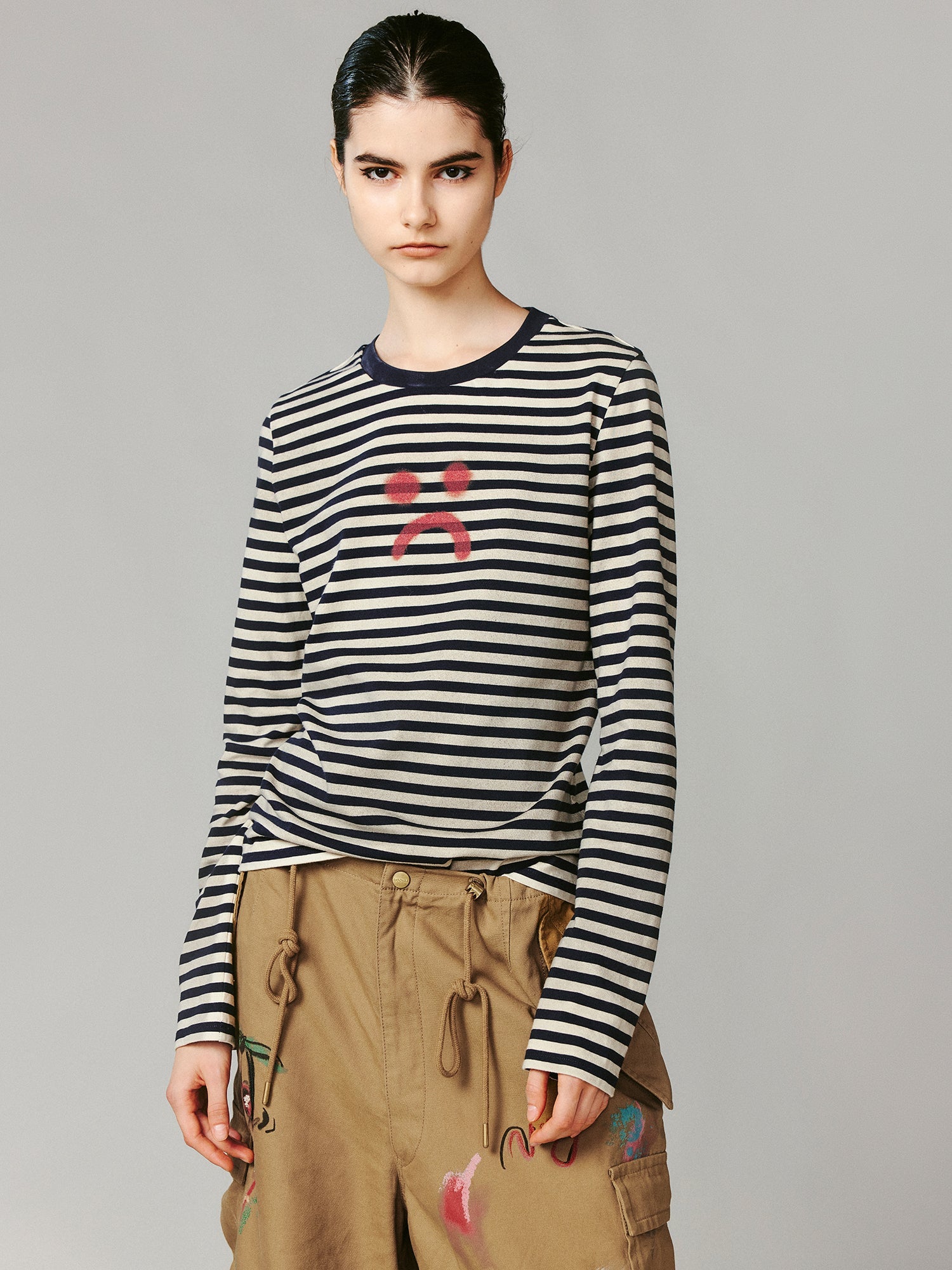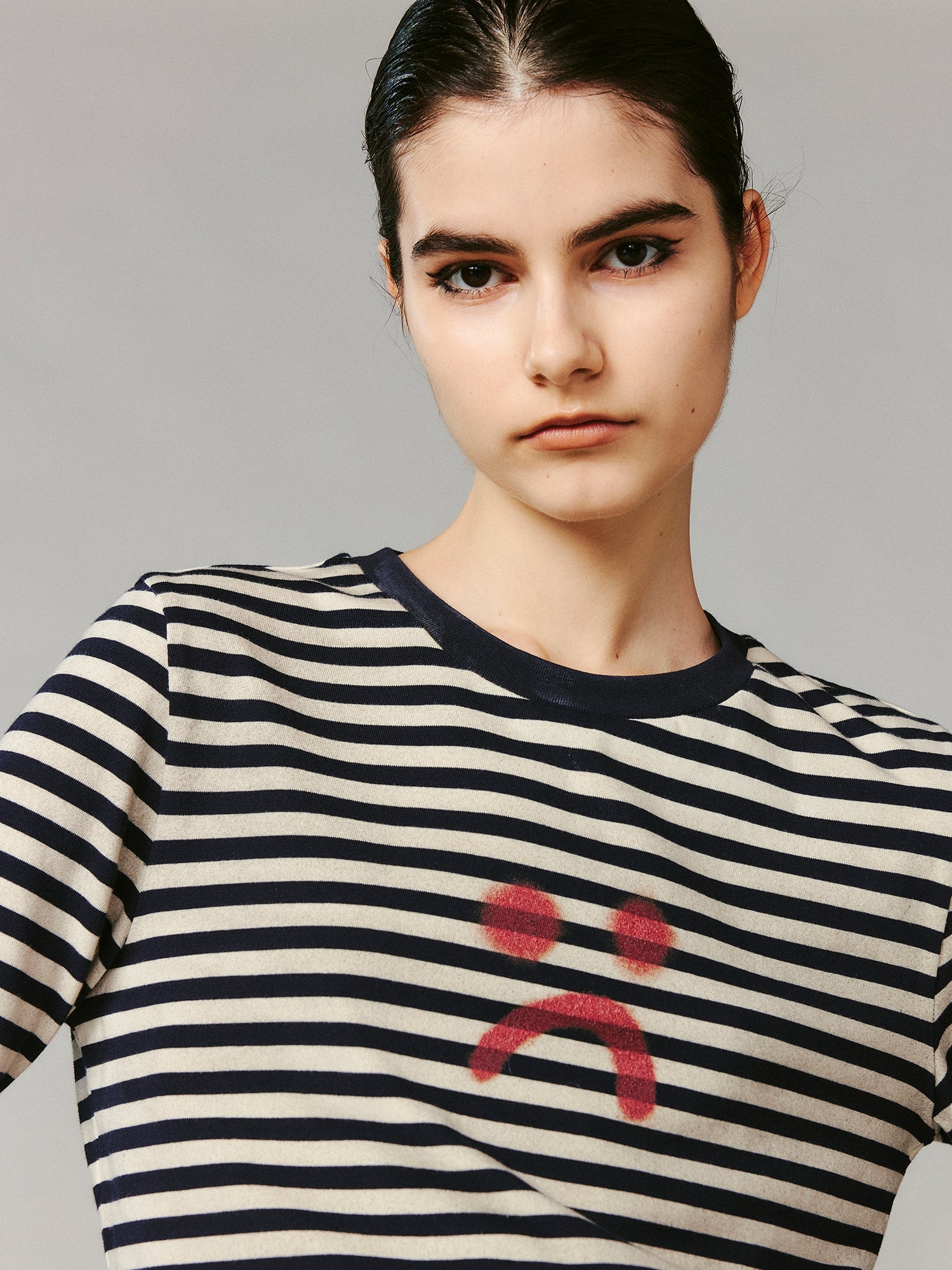 Striped sad face t-shirt