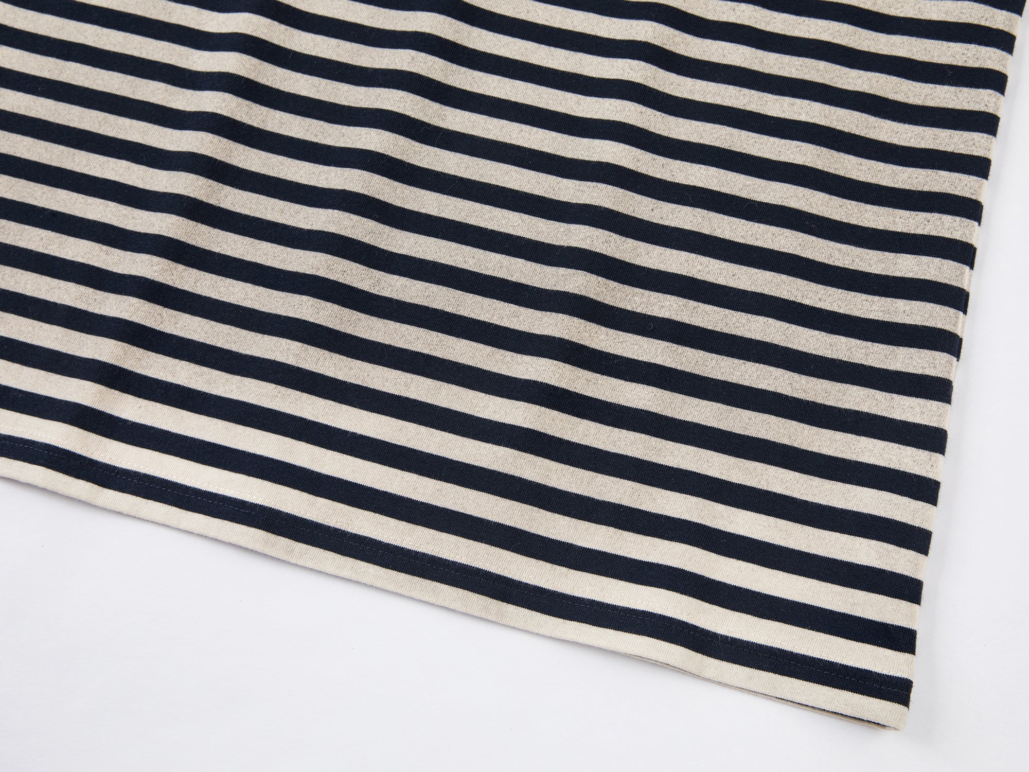 Yarn-dyed cotton stripes, soft and comfortable, with digital white ink printing that provides a refined and vivid finish.