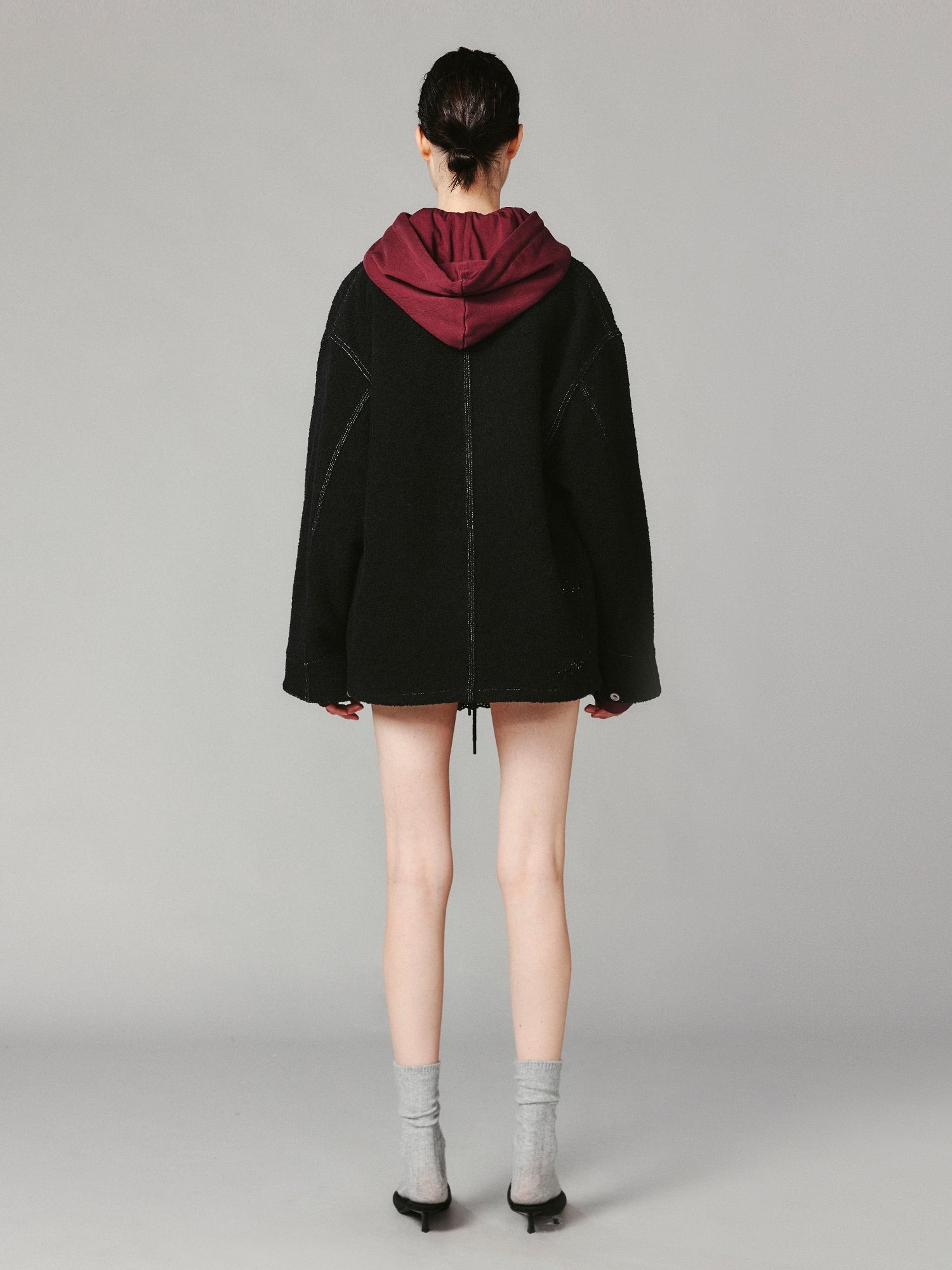 Taking the classic Michigan jacket as a prototype, this design outlines the visual structure of the jacket using white sewing thread on vintage tweed fabric, creating a refined yet playful look.