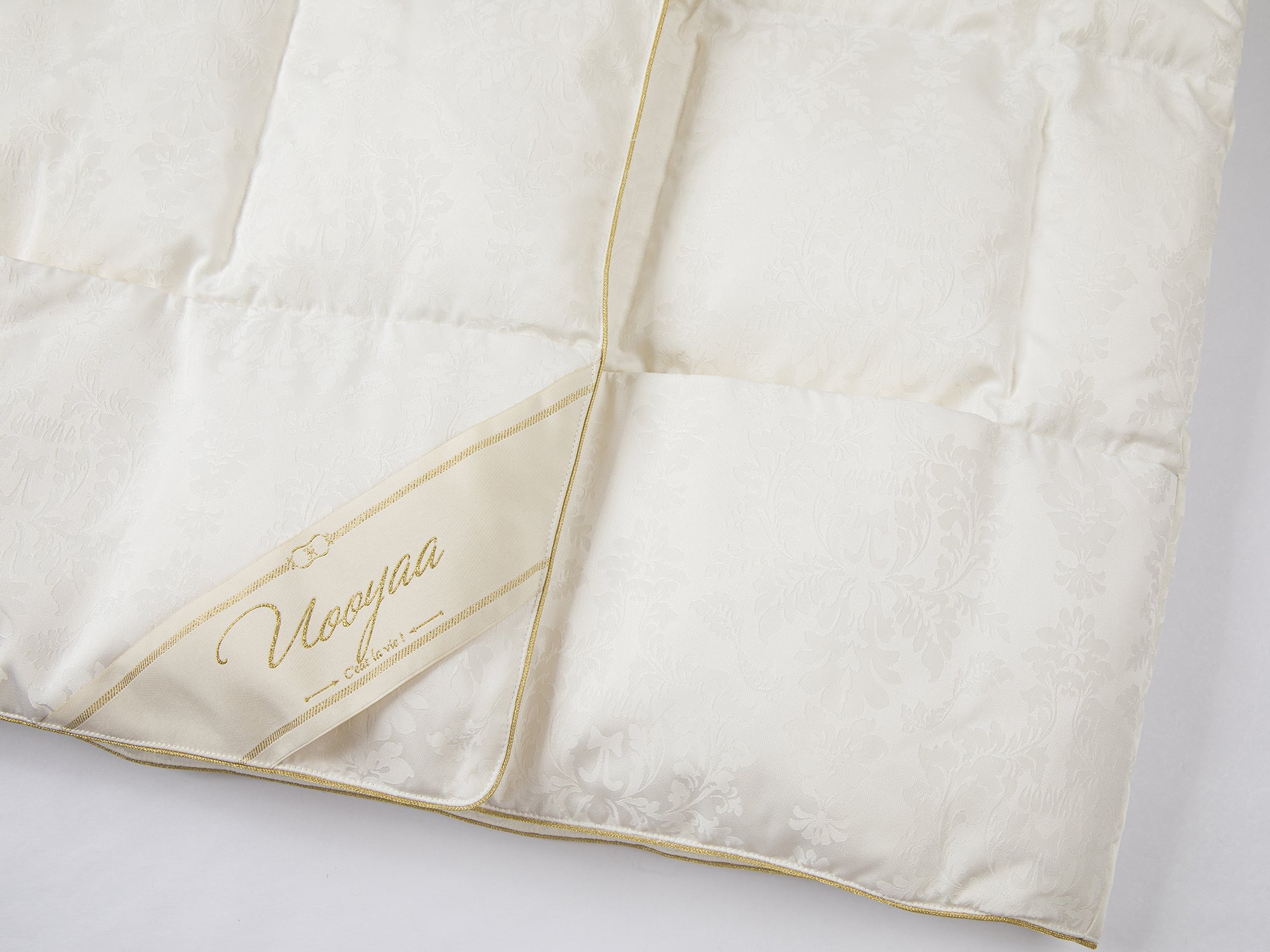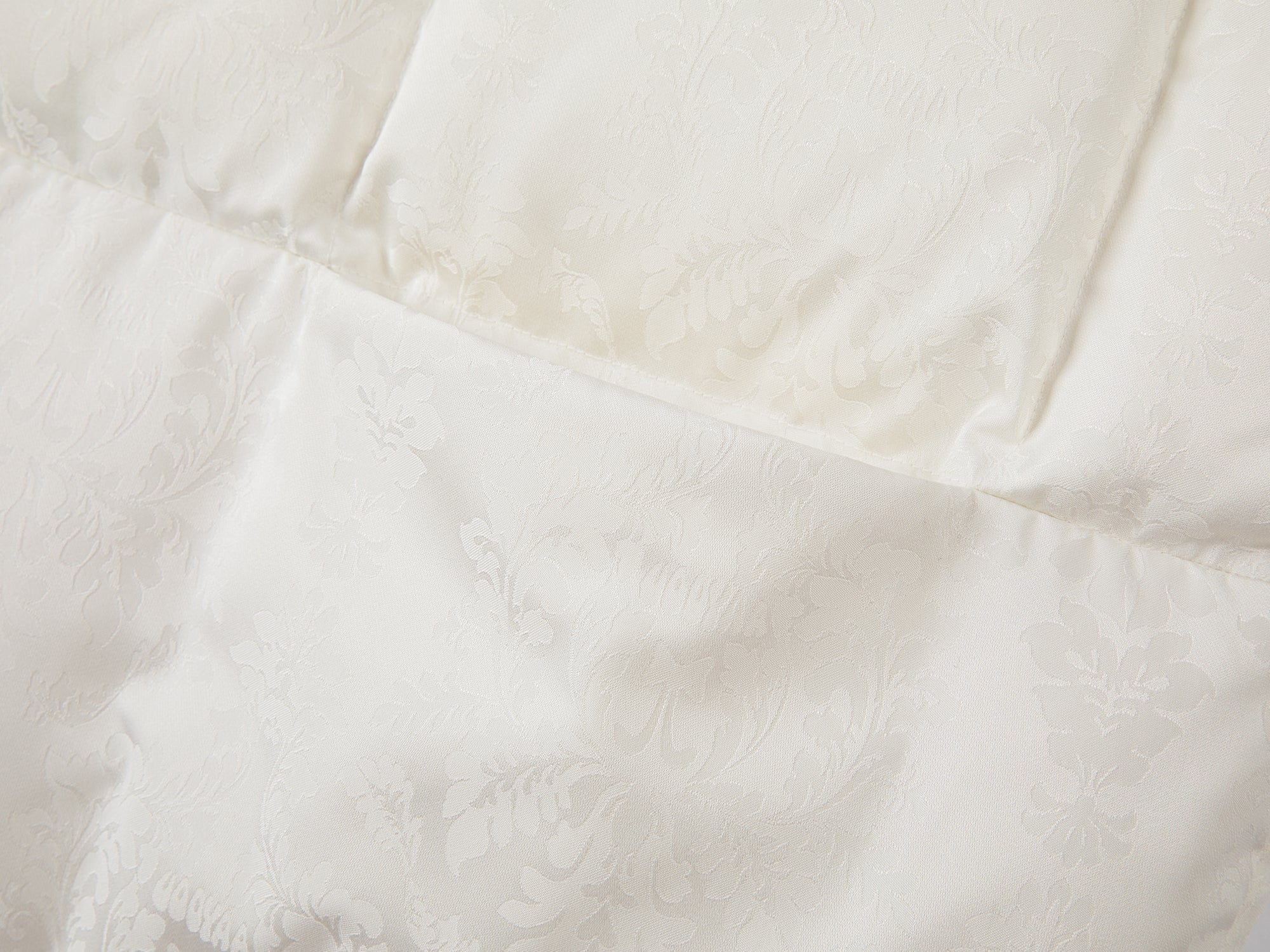 European pattern satin jacquard, exquisite and delicate, with a luxurious and playful feel. Wrap-around white duck down, elastic, warm, and comfortable.