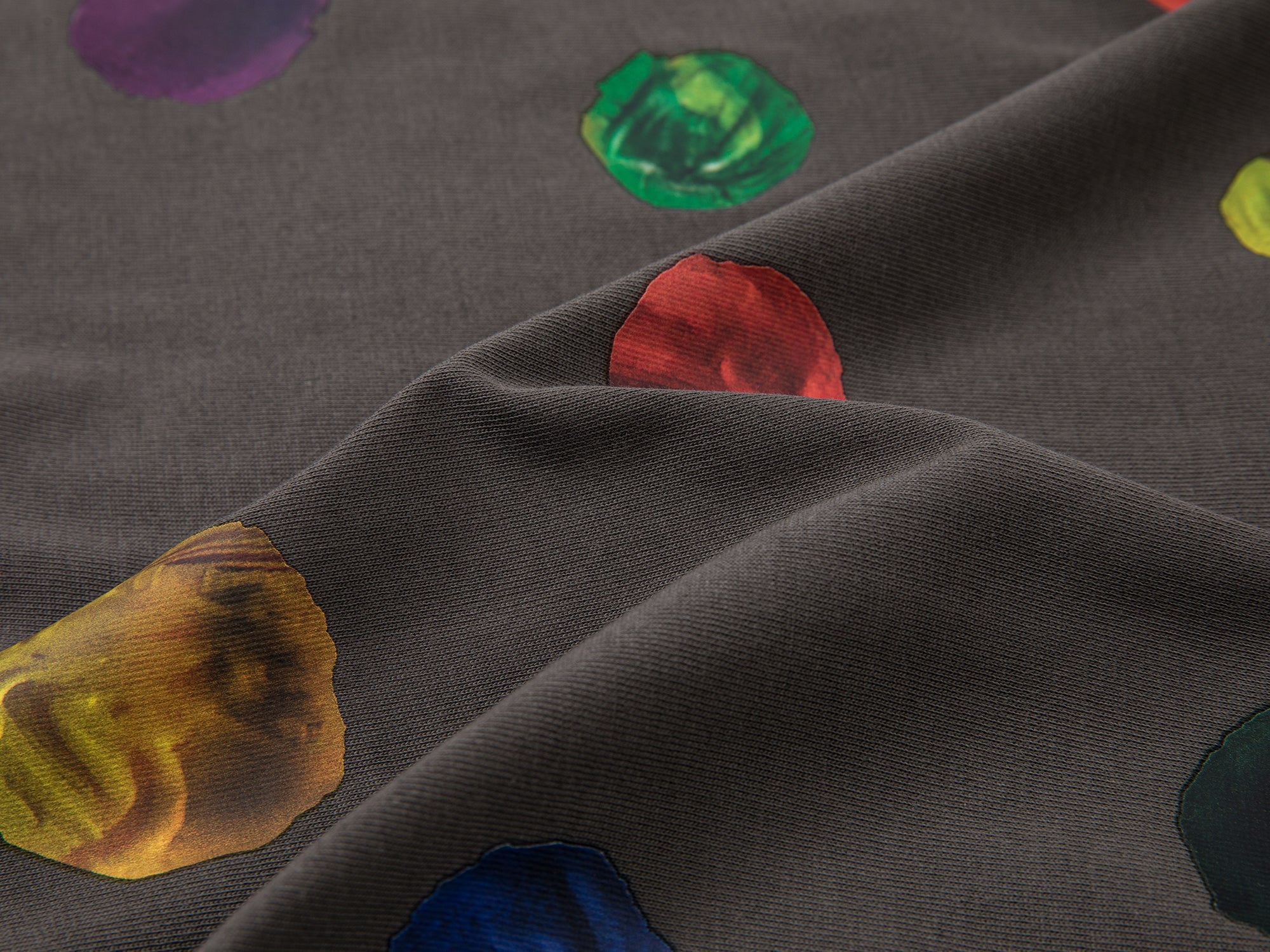 Classic polka dots get a fresh update with a dripping paint effect. The playful multicolor design adds an artistic flair to a simple T-shirt.