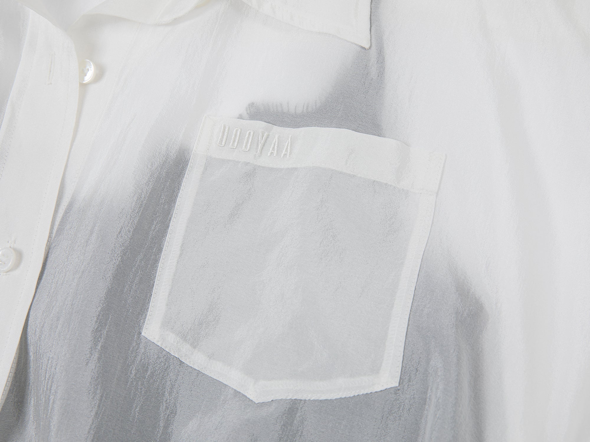 We select copper-ammonia organza for its light, sheer quality, good drape, and gentle feel on the skin.