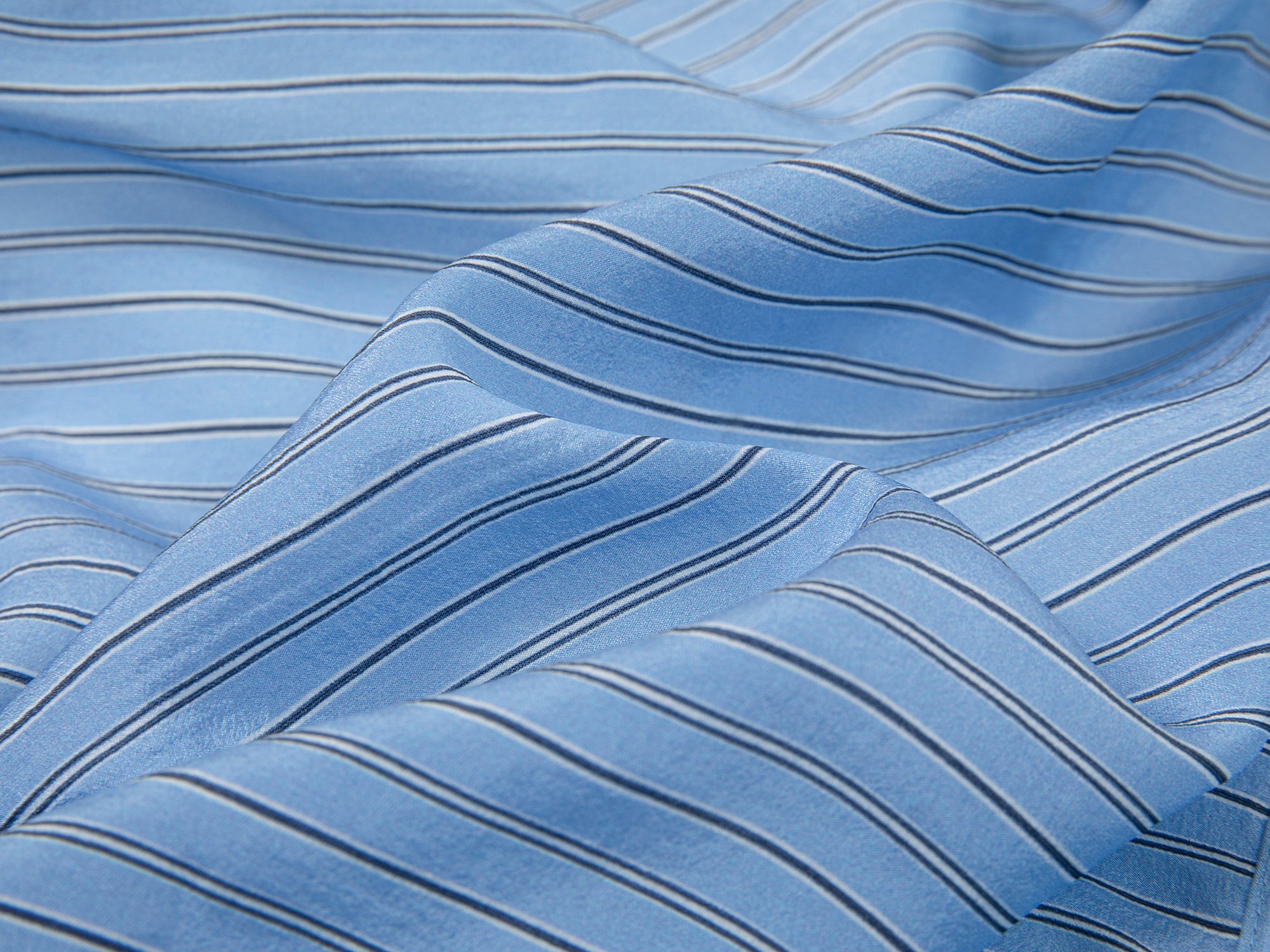 We select copper-ammonia organza for its light, sheer quality, good drape, and gentle feel on the skin.