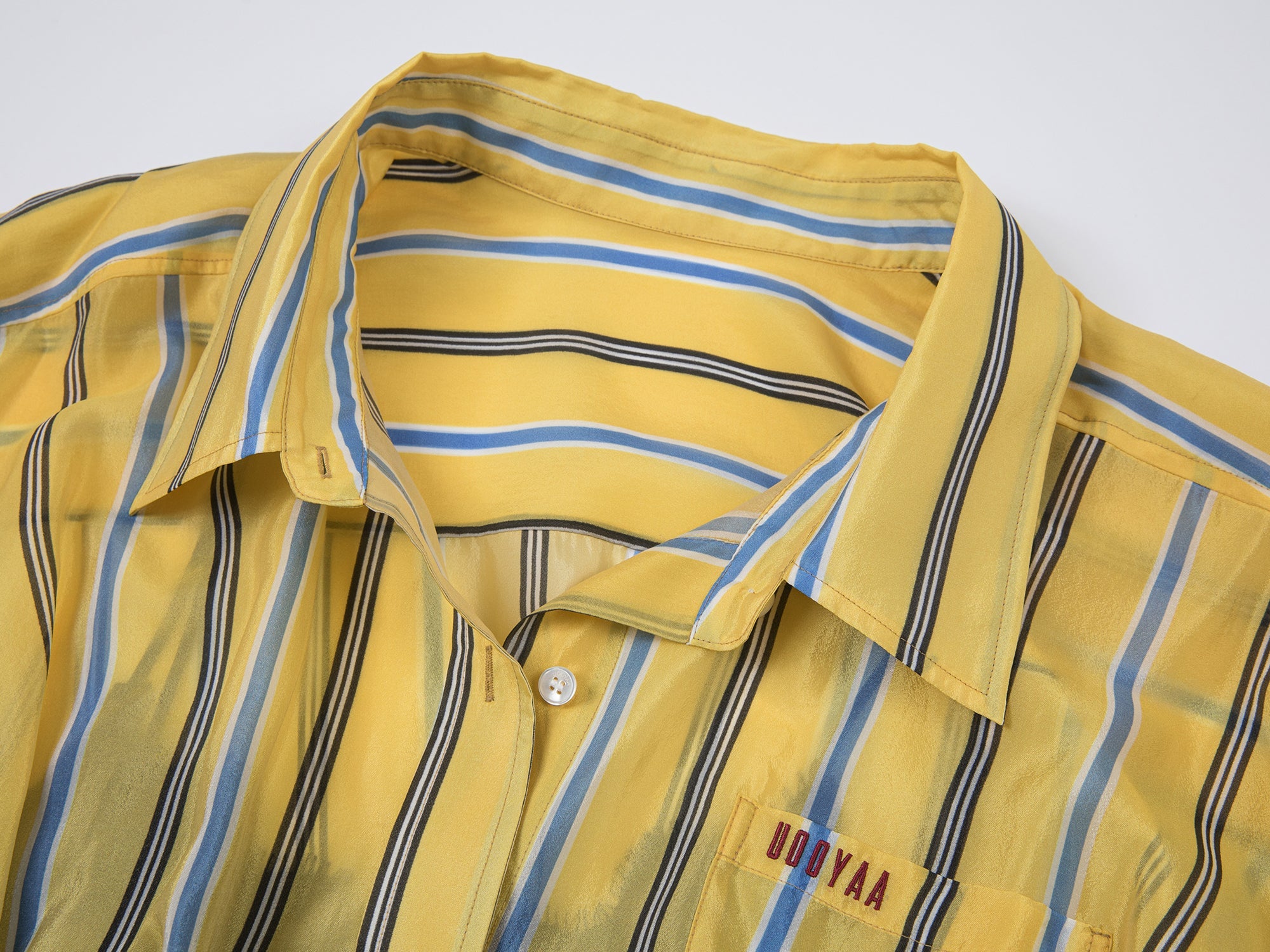 We select copper-ammonia organza for its light, sheer quality, good drape, and gentle feel on the skin.