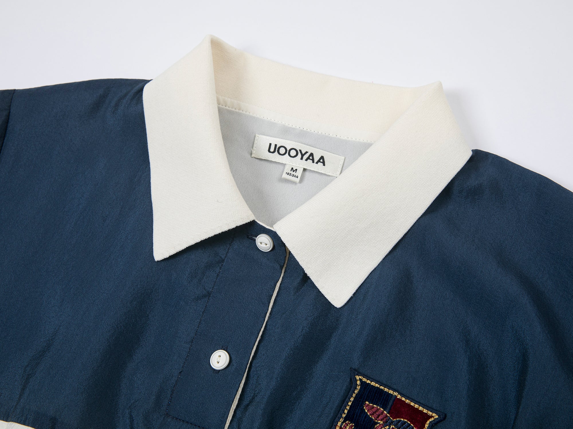 The UOOYAA1998 logo uses freeform, raised embroidery for a sketch-like energy. A small cherry patch adds extra character.