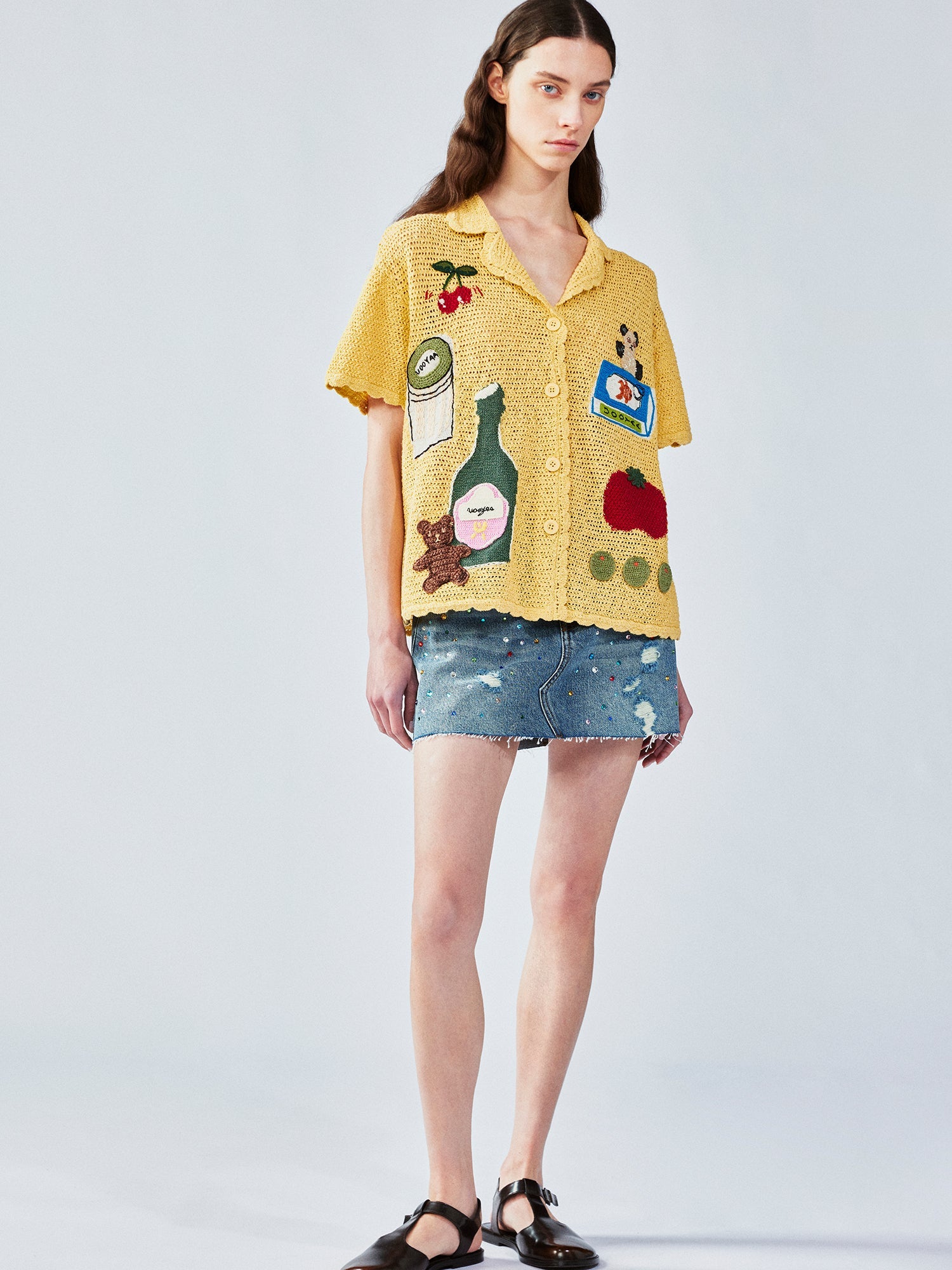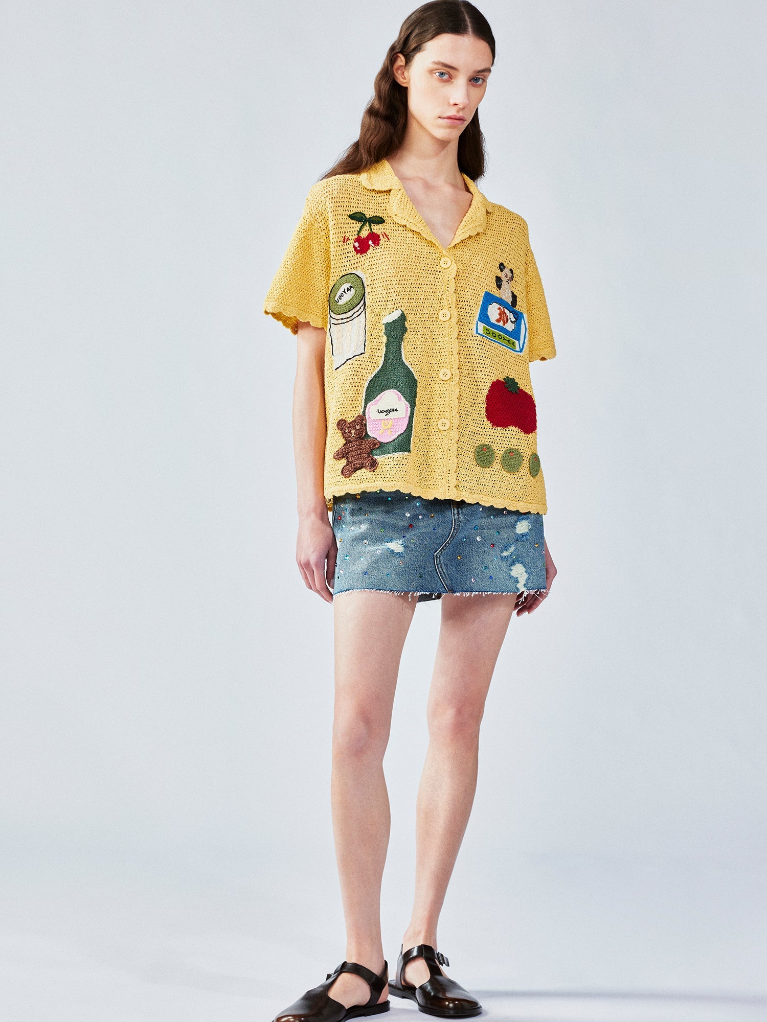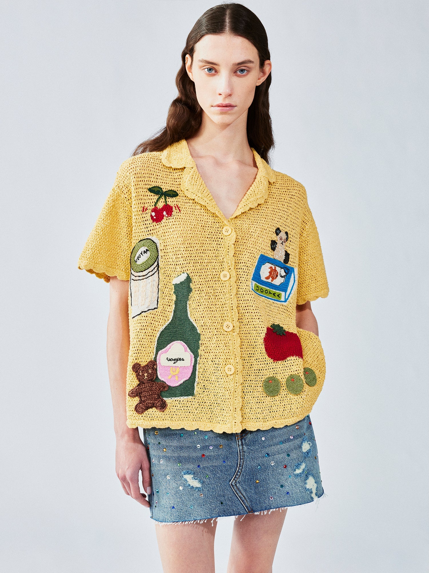 We pair foods like wine glasses and canned fish, symbols of happiness, with UOOYAA's classic brown bear using intarsia, crochet, and embroidery to express a love of life.