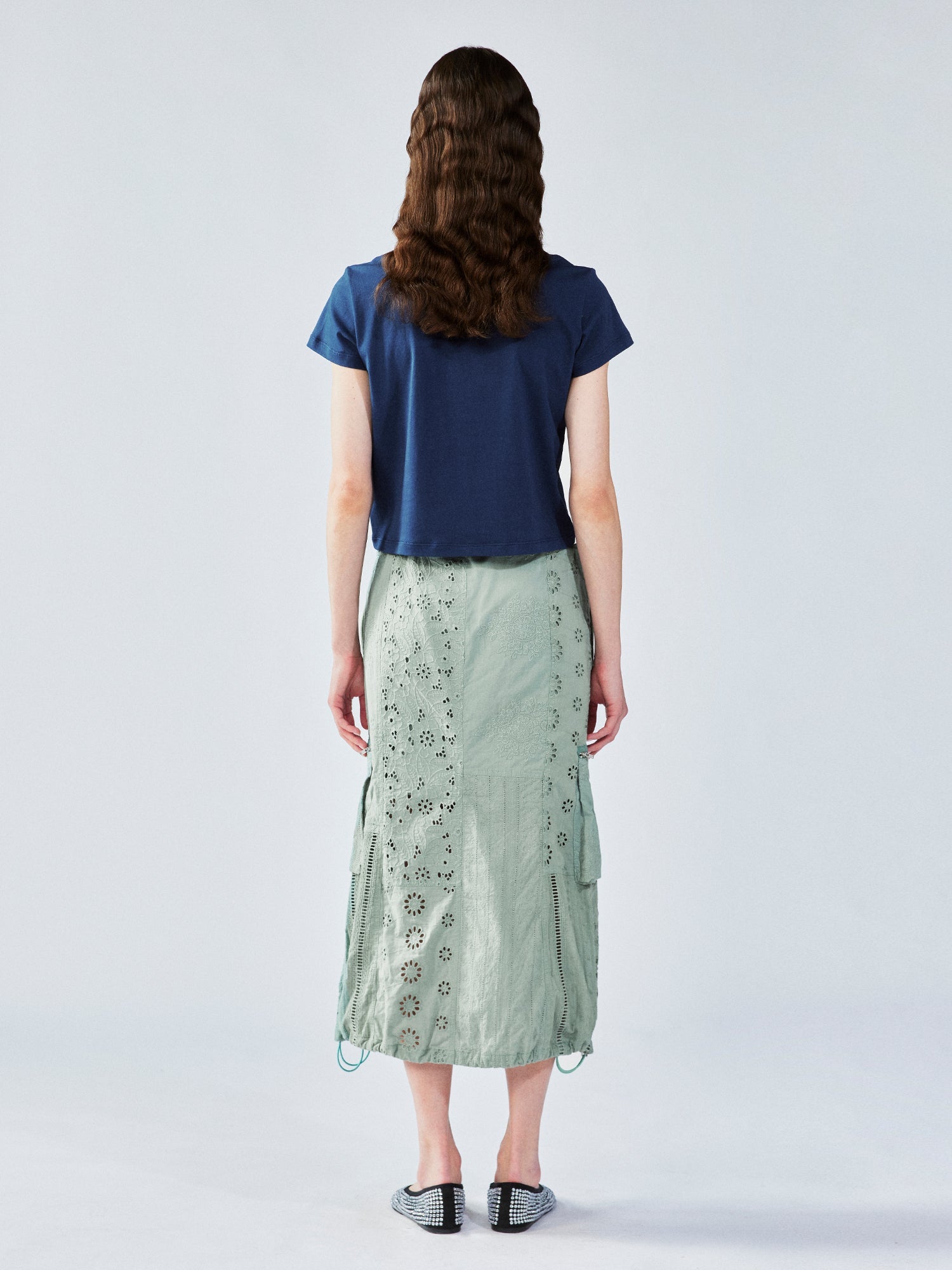 We combine different fabrics for the appliqué and layer them with tiny seed-bead embroidery, giving a handcrafted, detailed finish.