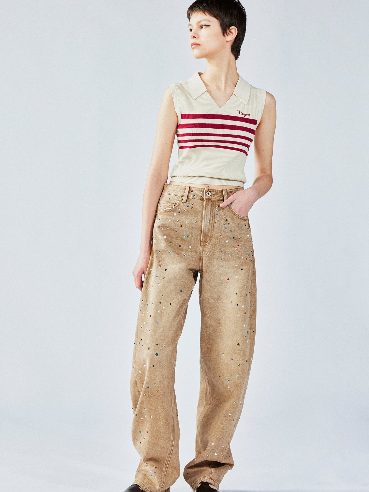 Retro striped POLO knit vest