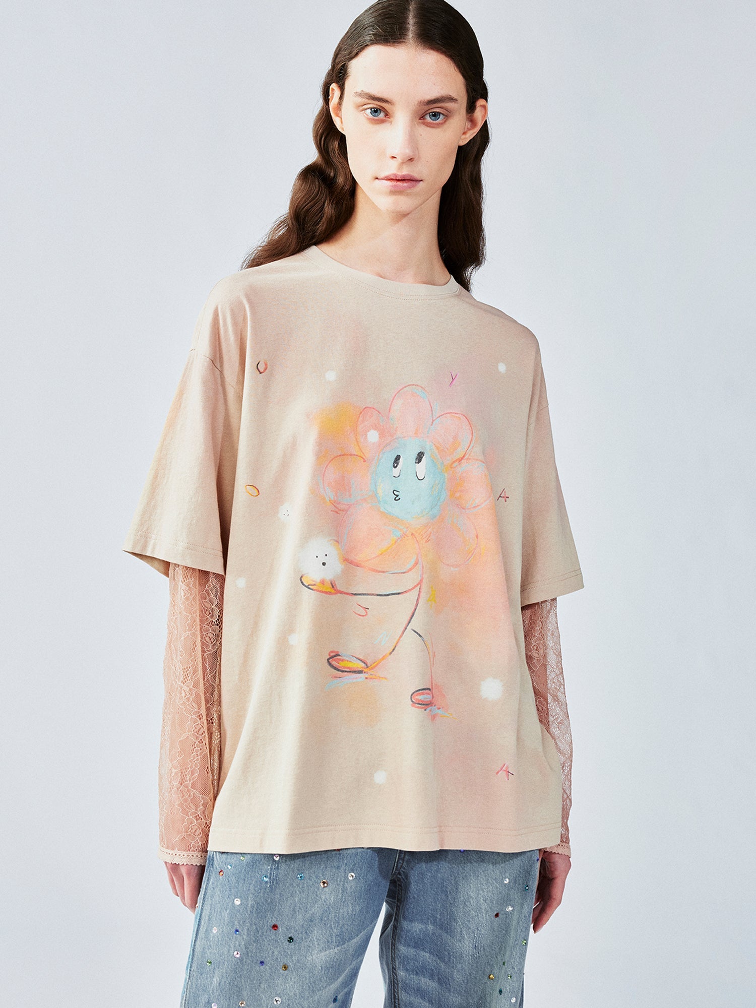 Lace long sleeves are built into a layered tee silhouette. Loose fit ensures both comfort and style.Care guide: