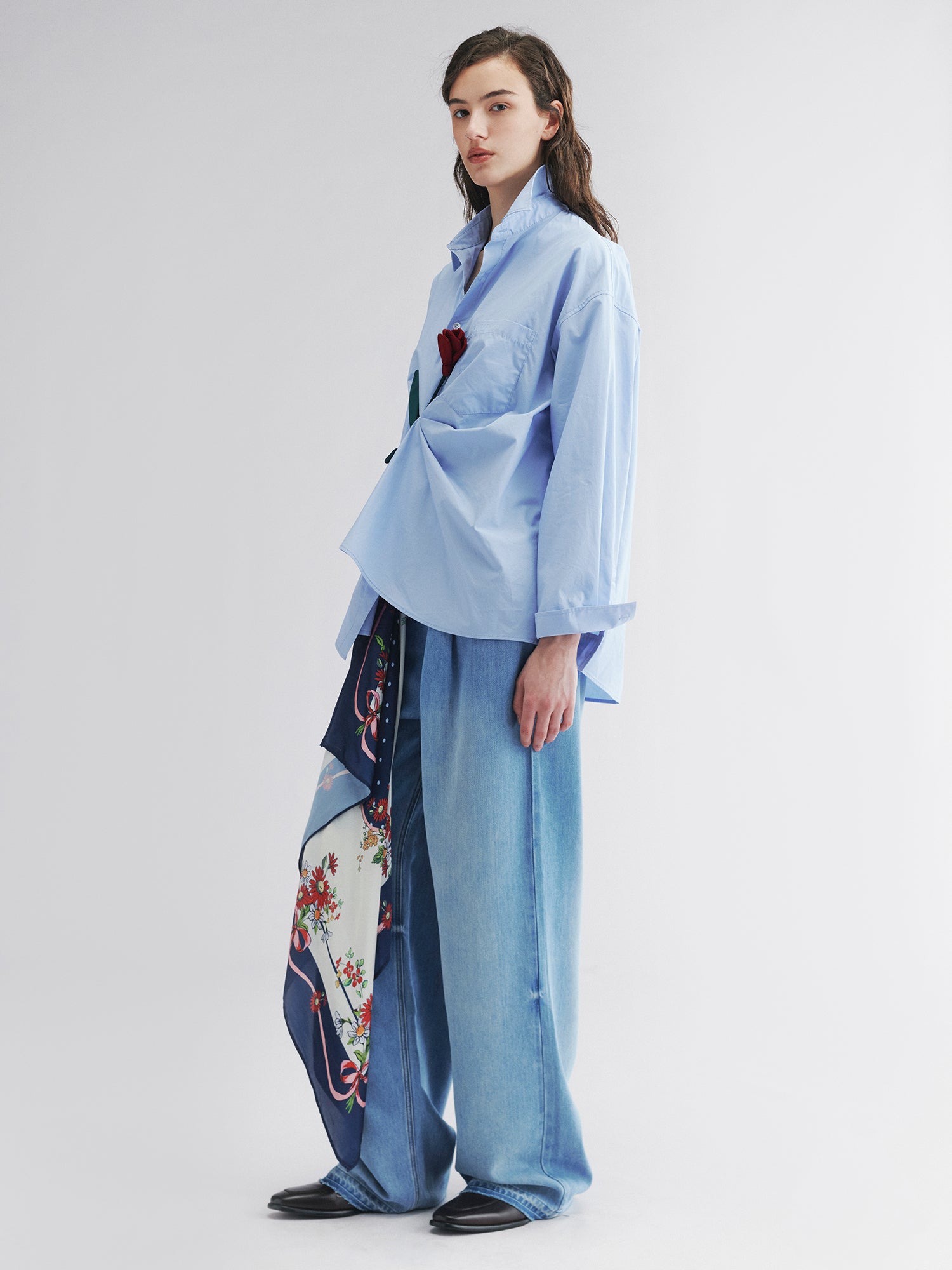 A single rose accents a men¡¯s shirt, softening its sharp tailoring with gentle, effortless creases.