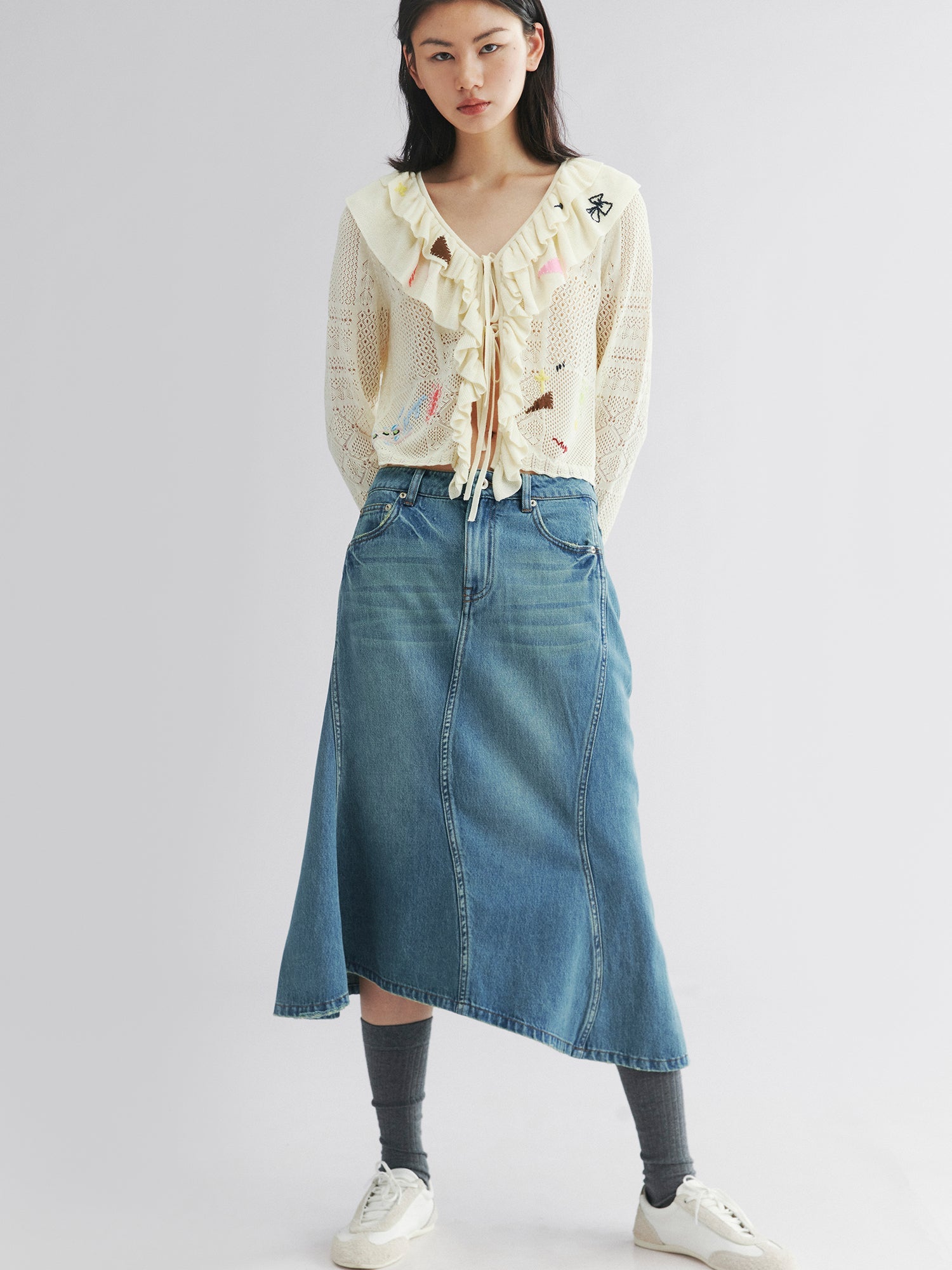 Twisted denim mermaid skirt
