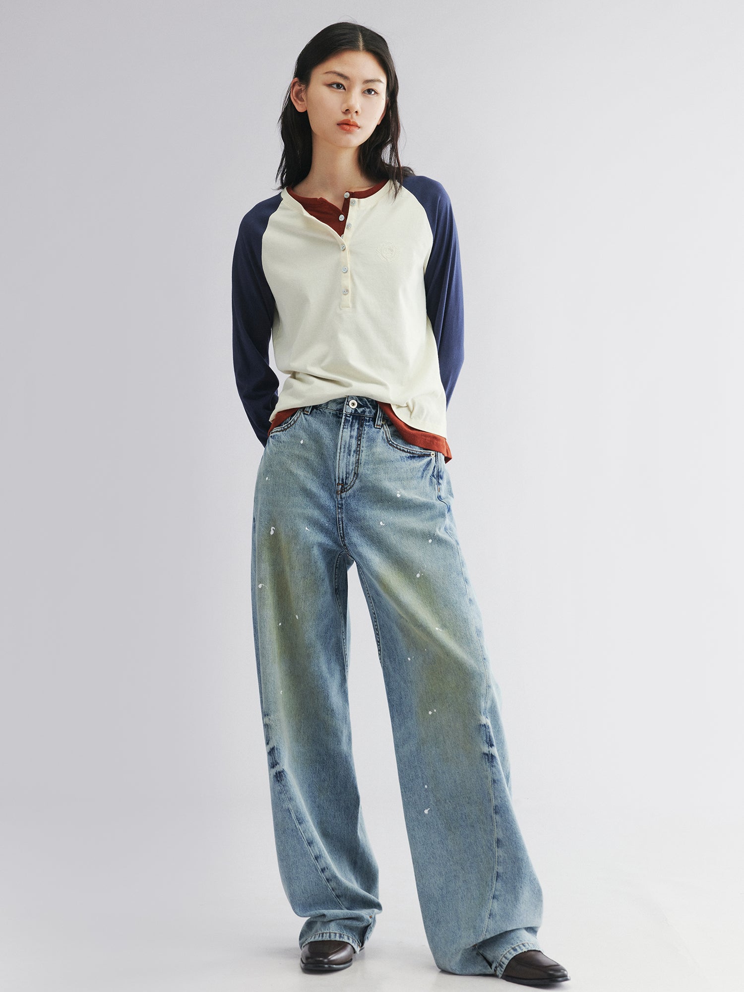 Friendly reminder: This product features a special distressed wash finish. Slight color fading is normal due to the nature of the process. Gently hand wash in cold water. Do not use detergents containing bleach or optical brighteners. Avoid long soaking, and wash separately to prevent color transfer.