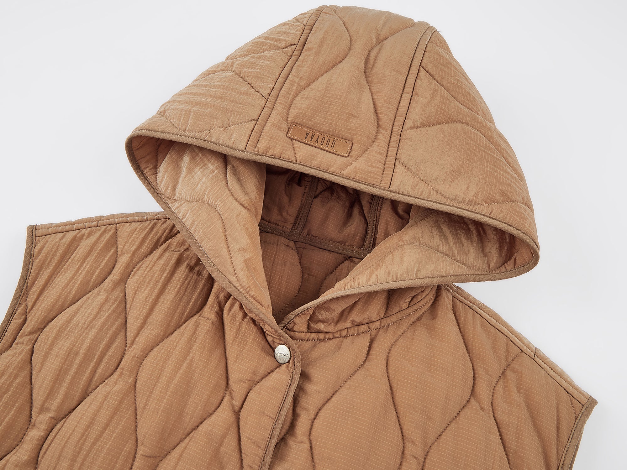 Simulates the look of layering a cable-knit cardigan over a hooded puffer, blending retro warmth with modern ease in a practical two-in-one piece.