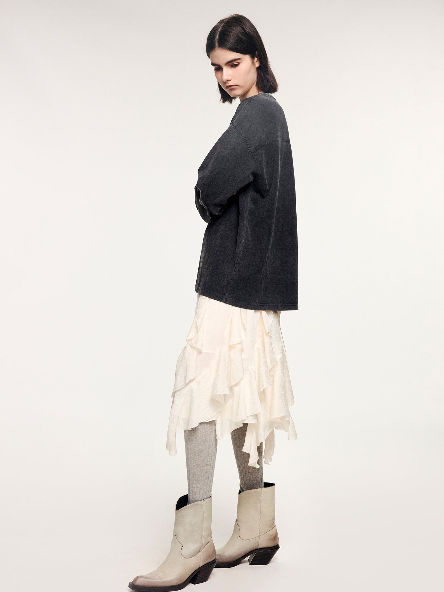 This product features a snowflake-washed finish with a heavy washing treatment. Slight color fading may occur, which is normal. Please avoid soaking and wash it separately.