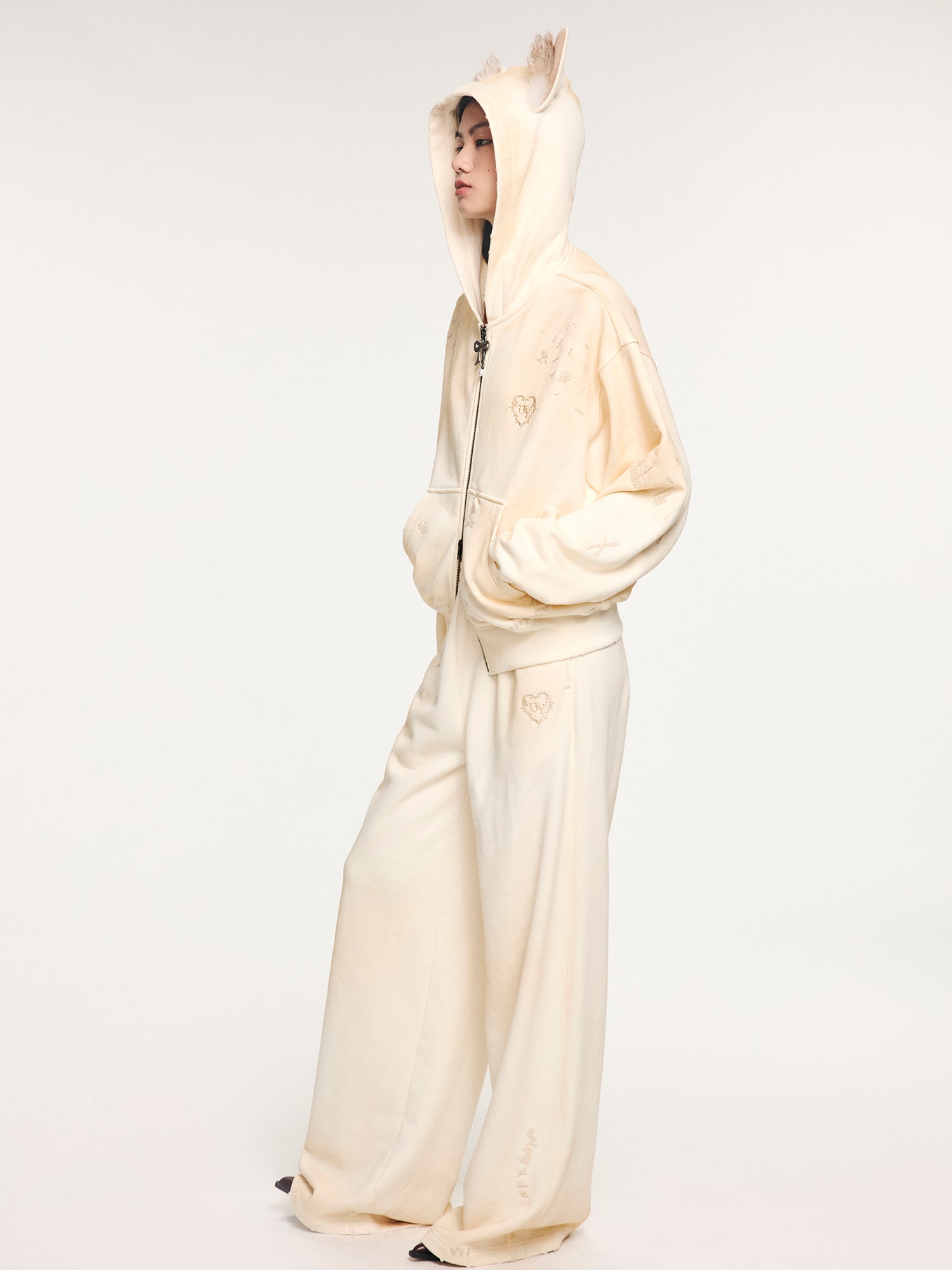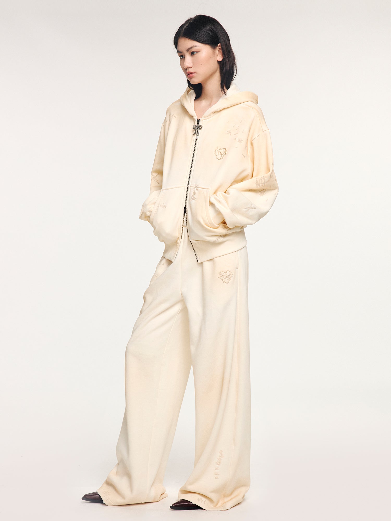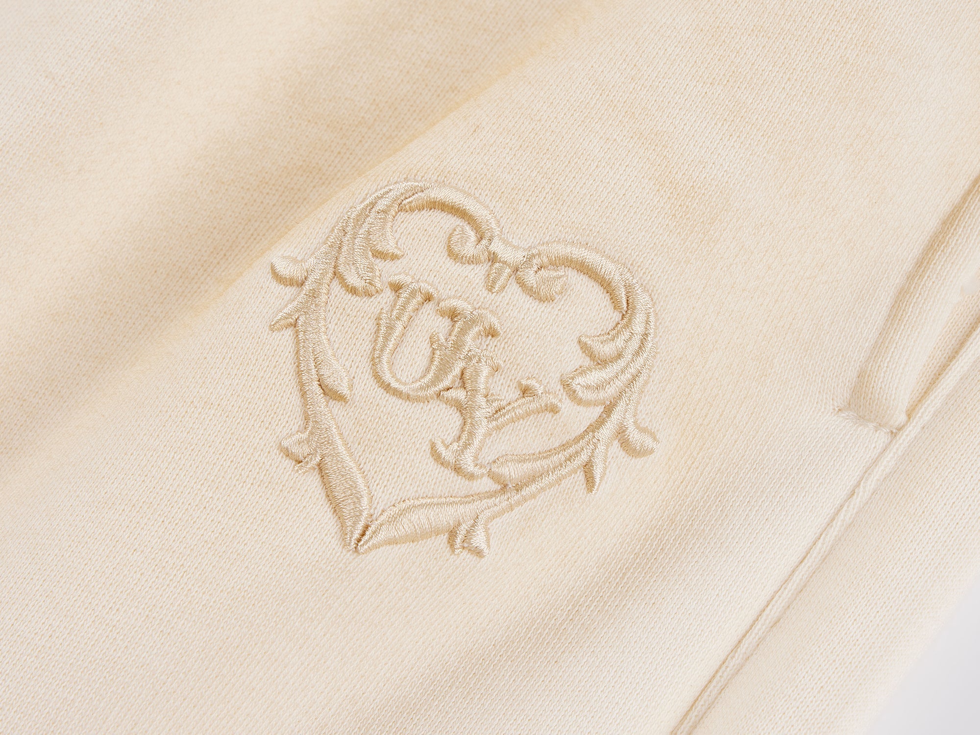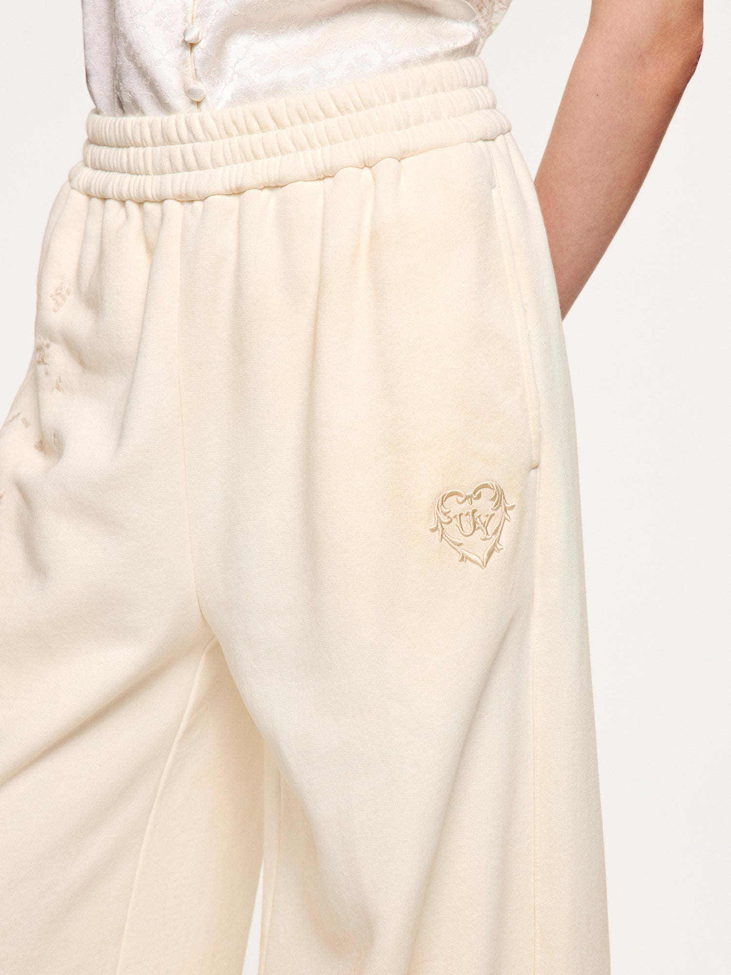 Relaxed fit ensures easy wear; elastic waistband offers a flexible fit for different body types. Finished with a 3D embroidered heart logo for added playfulness.Fabric:
