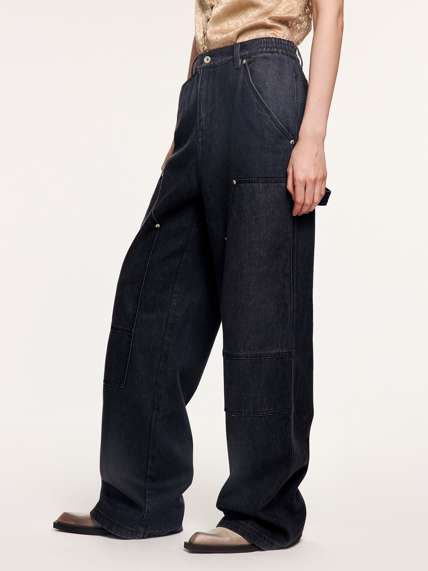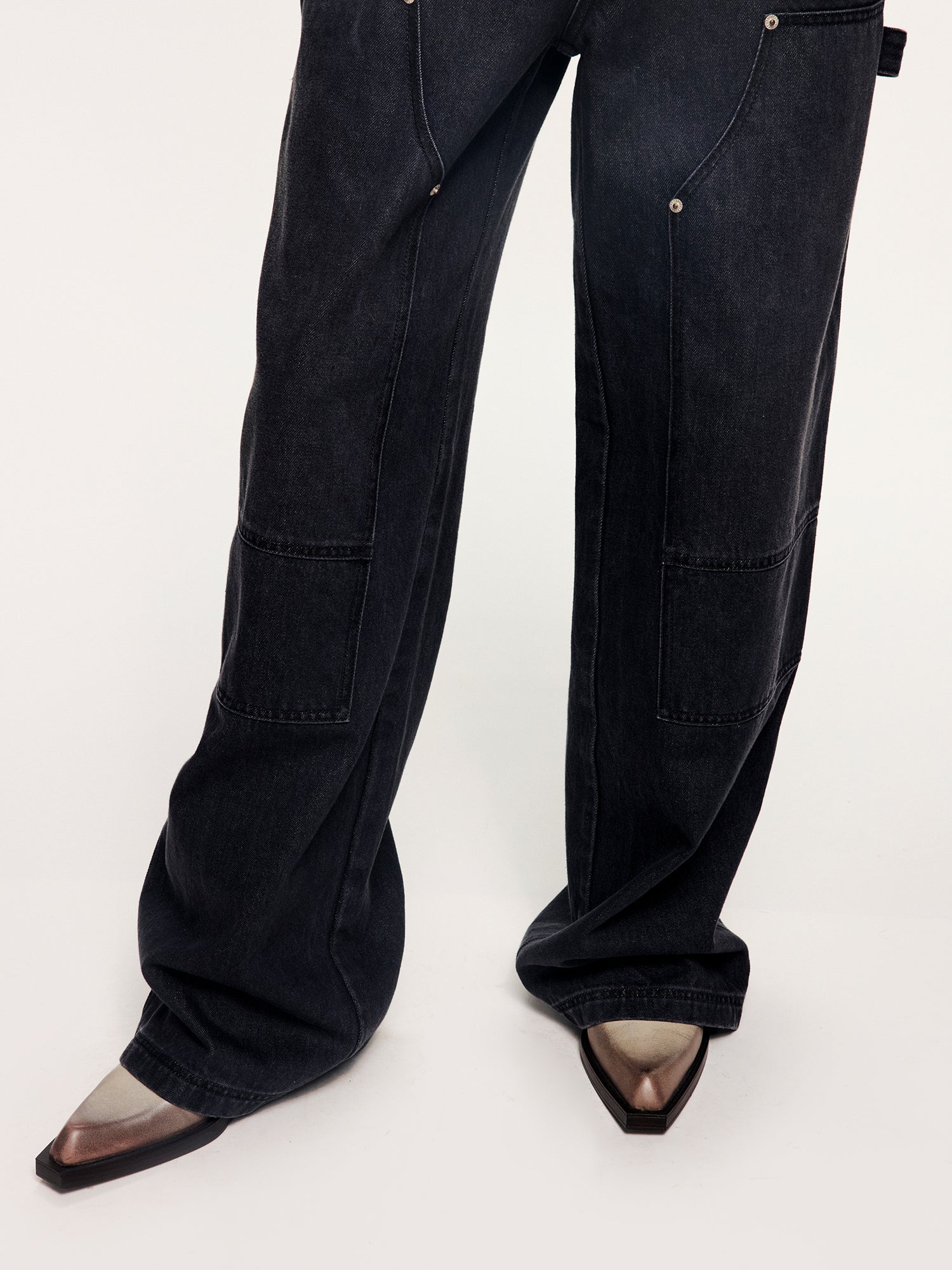 Dark grey washed denim brings a lumberjack-style pant into the city with a laid-back urban vibe.