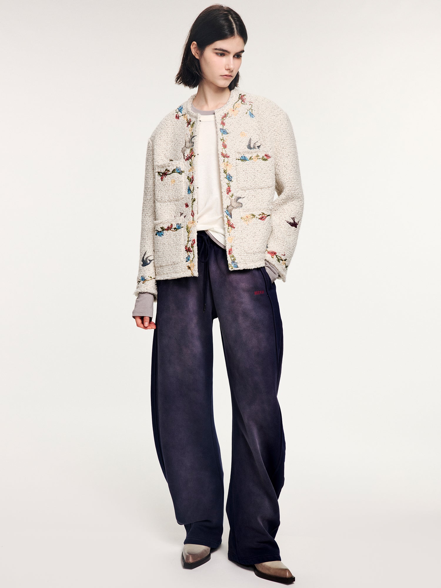 Magical garden floral embroidered tweed-style jacket