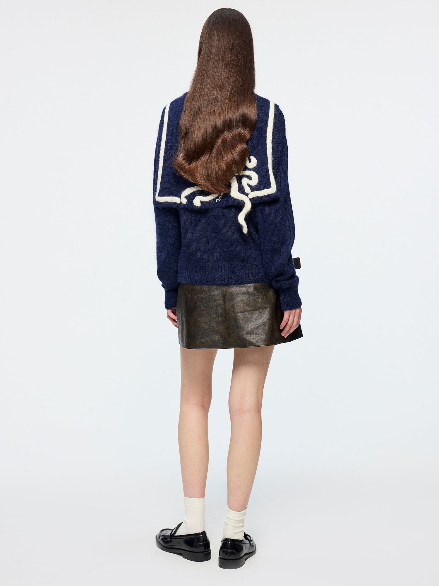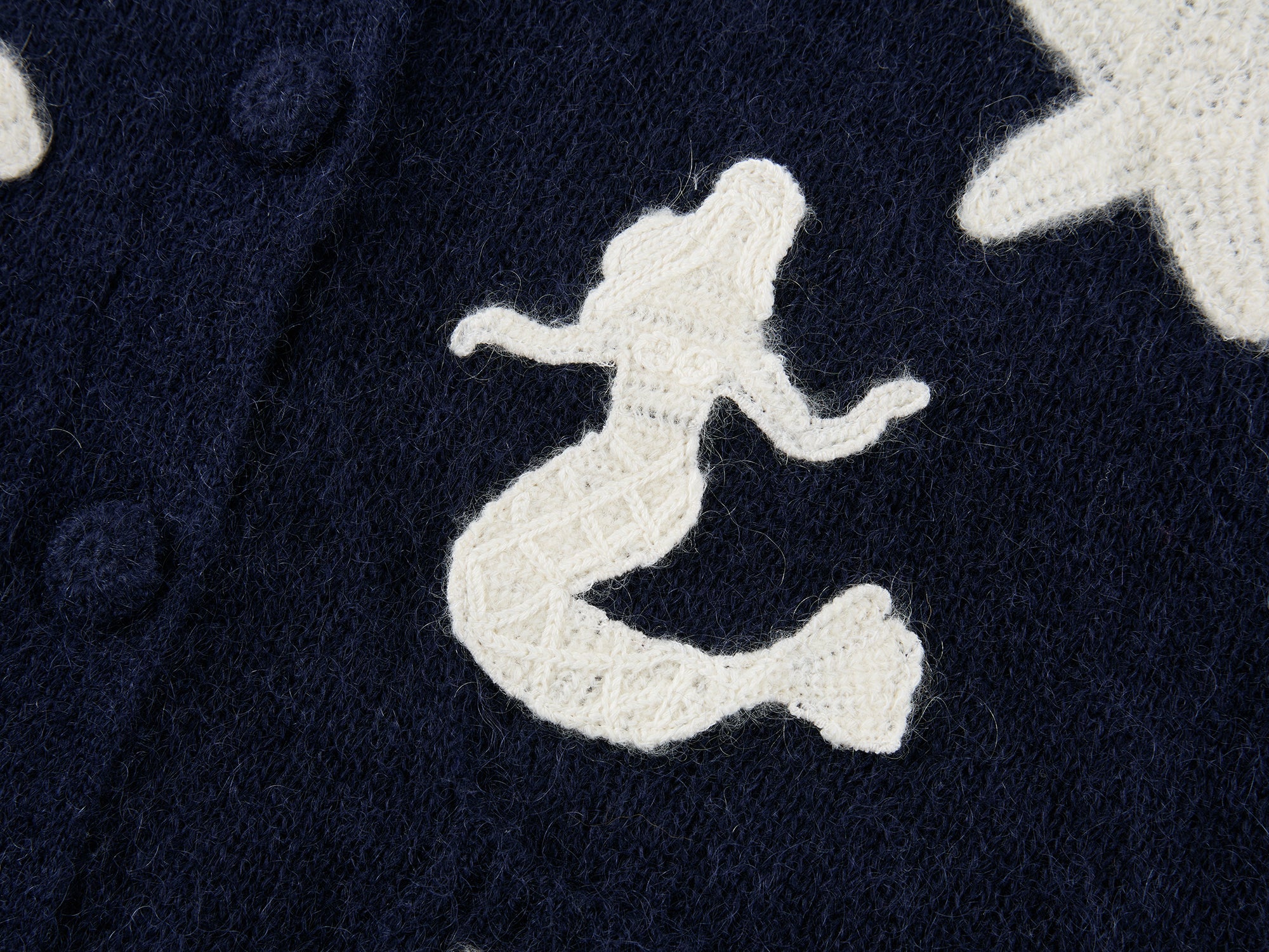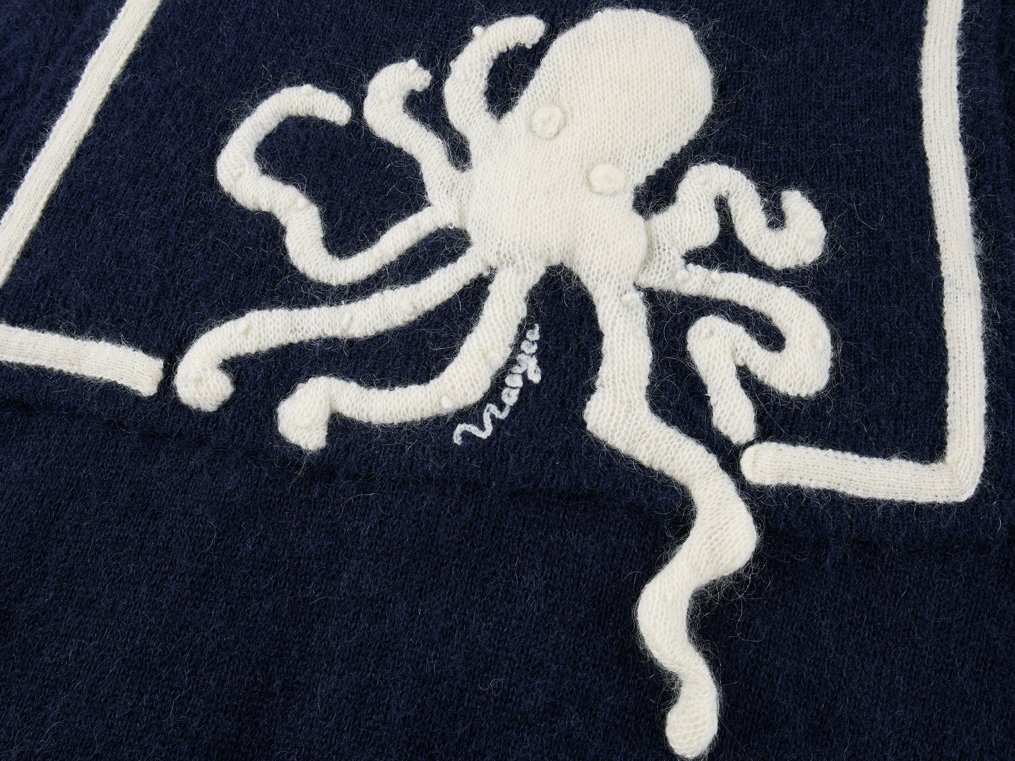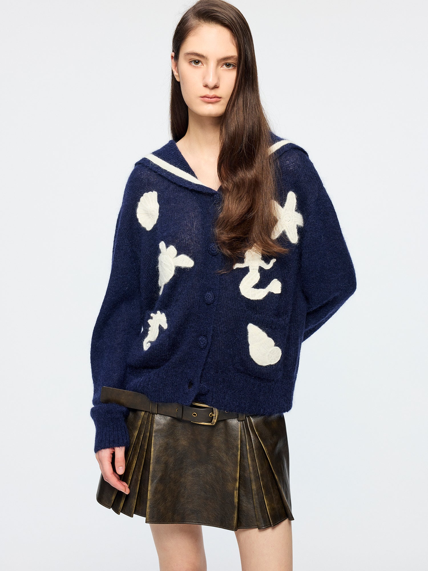 Classic sailor collar cardigan meets handcrafted fantasy undersea creatures; the 3D octopus echoes the back collar for a whimsical, playful style.