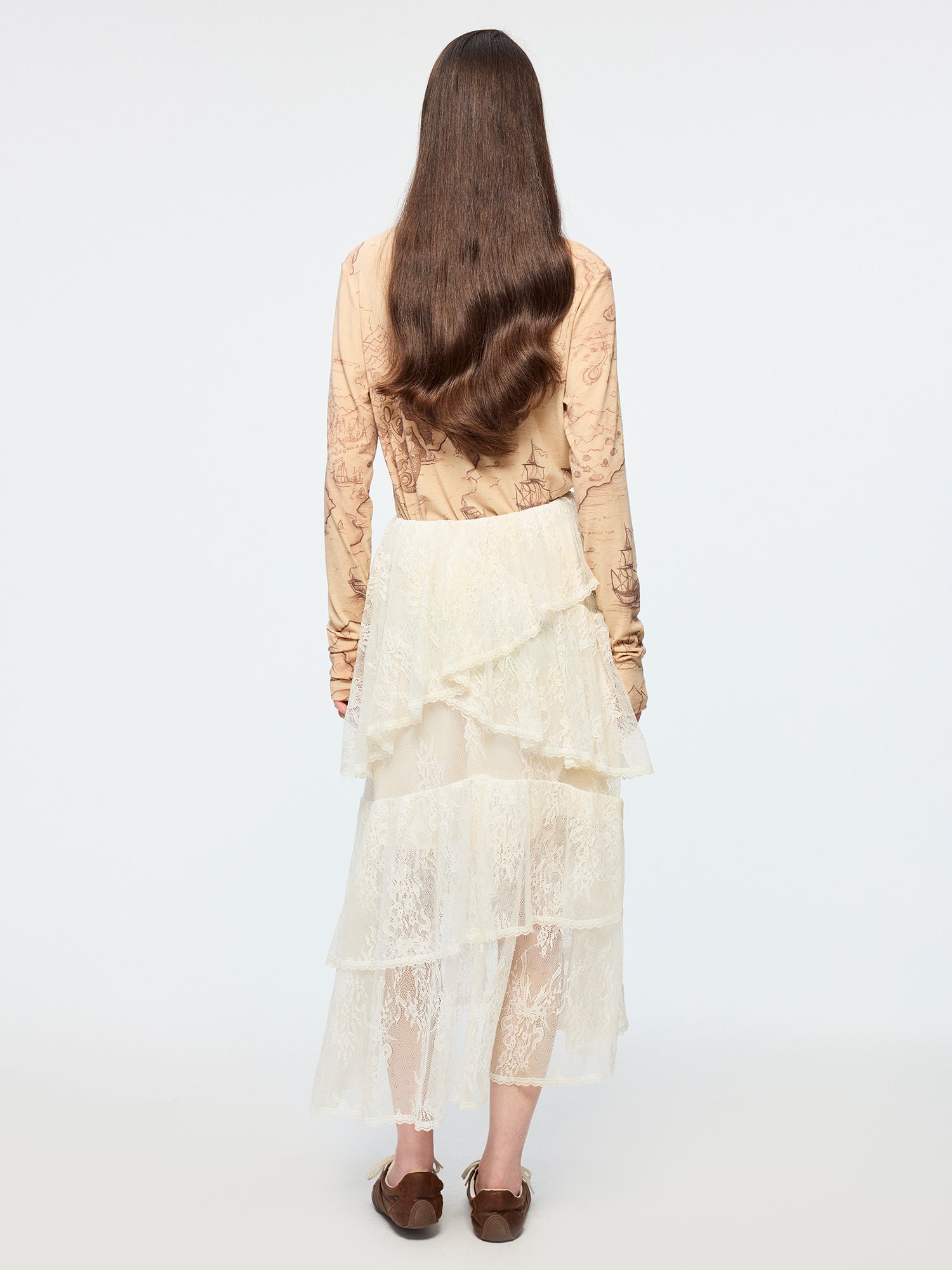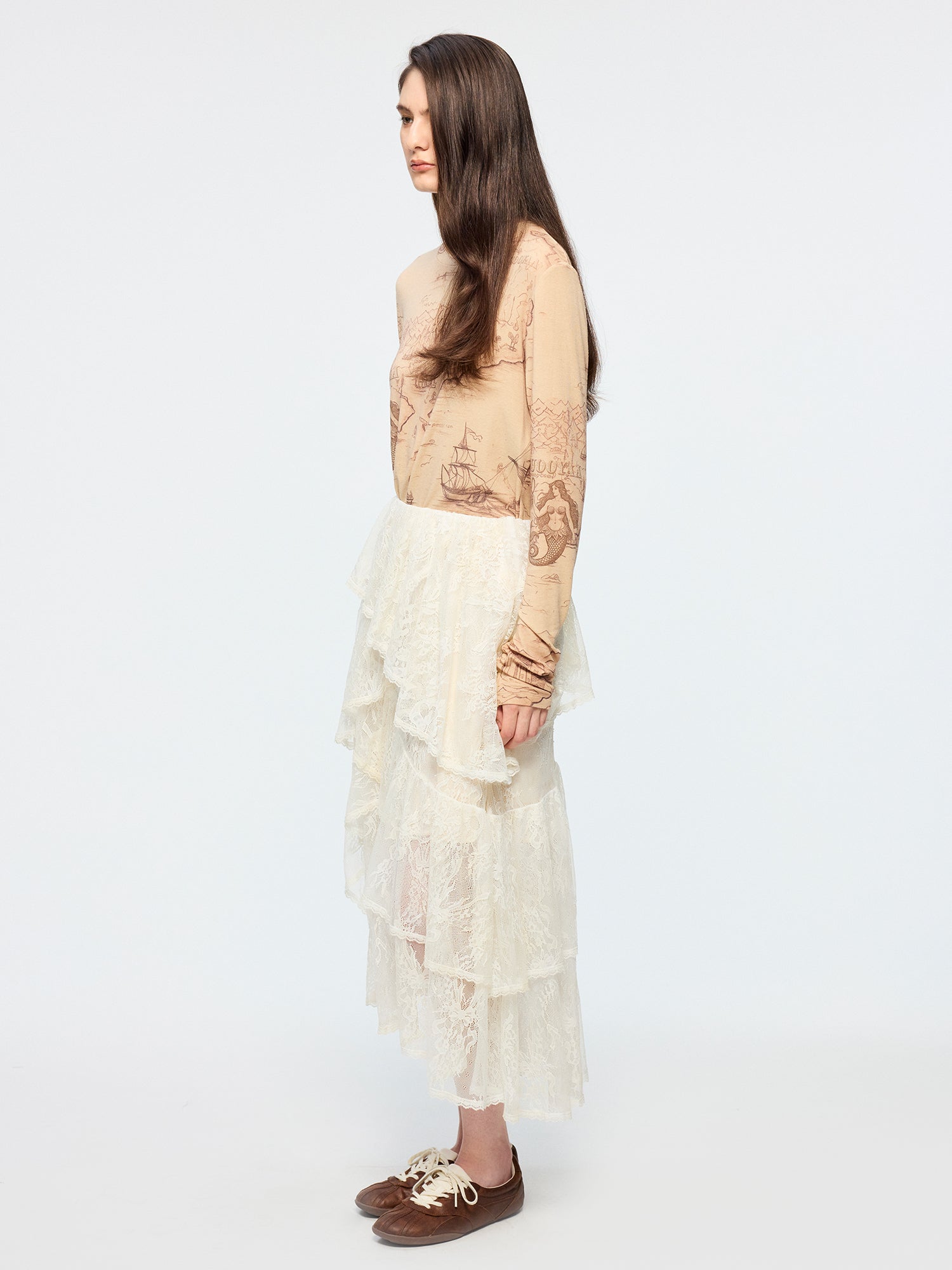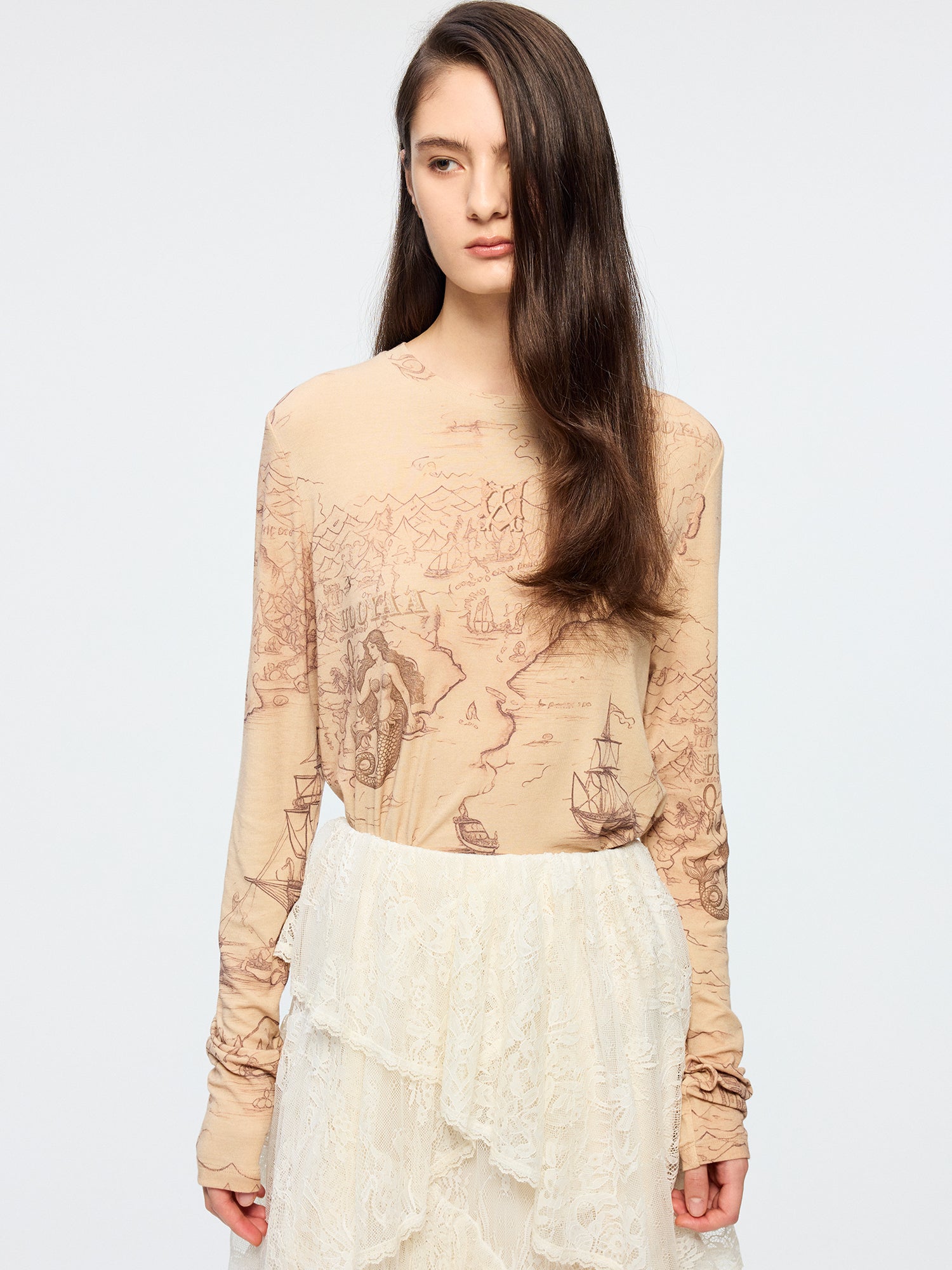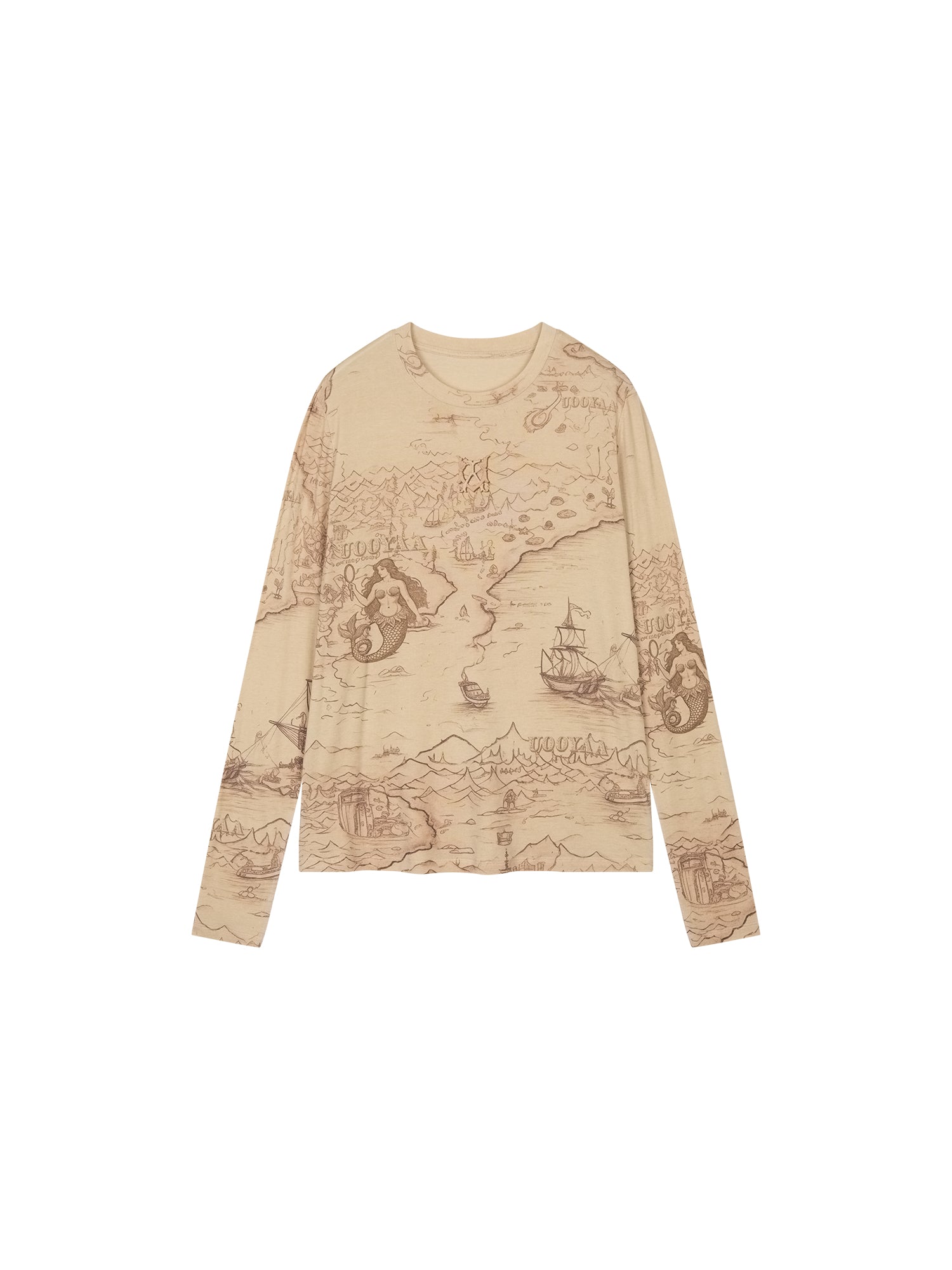 Tencel wool vintage map long sleeve t-shirt