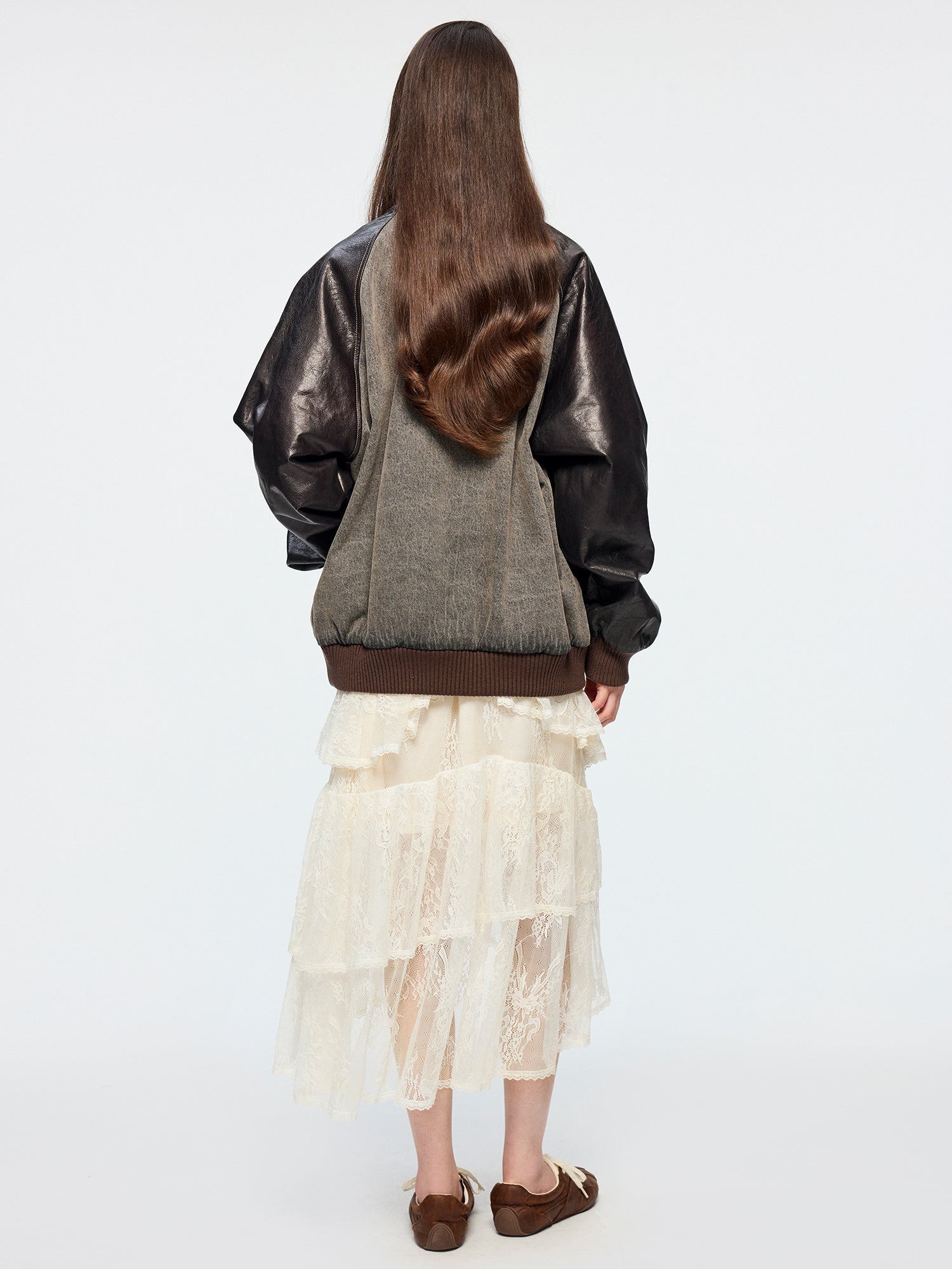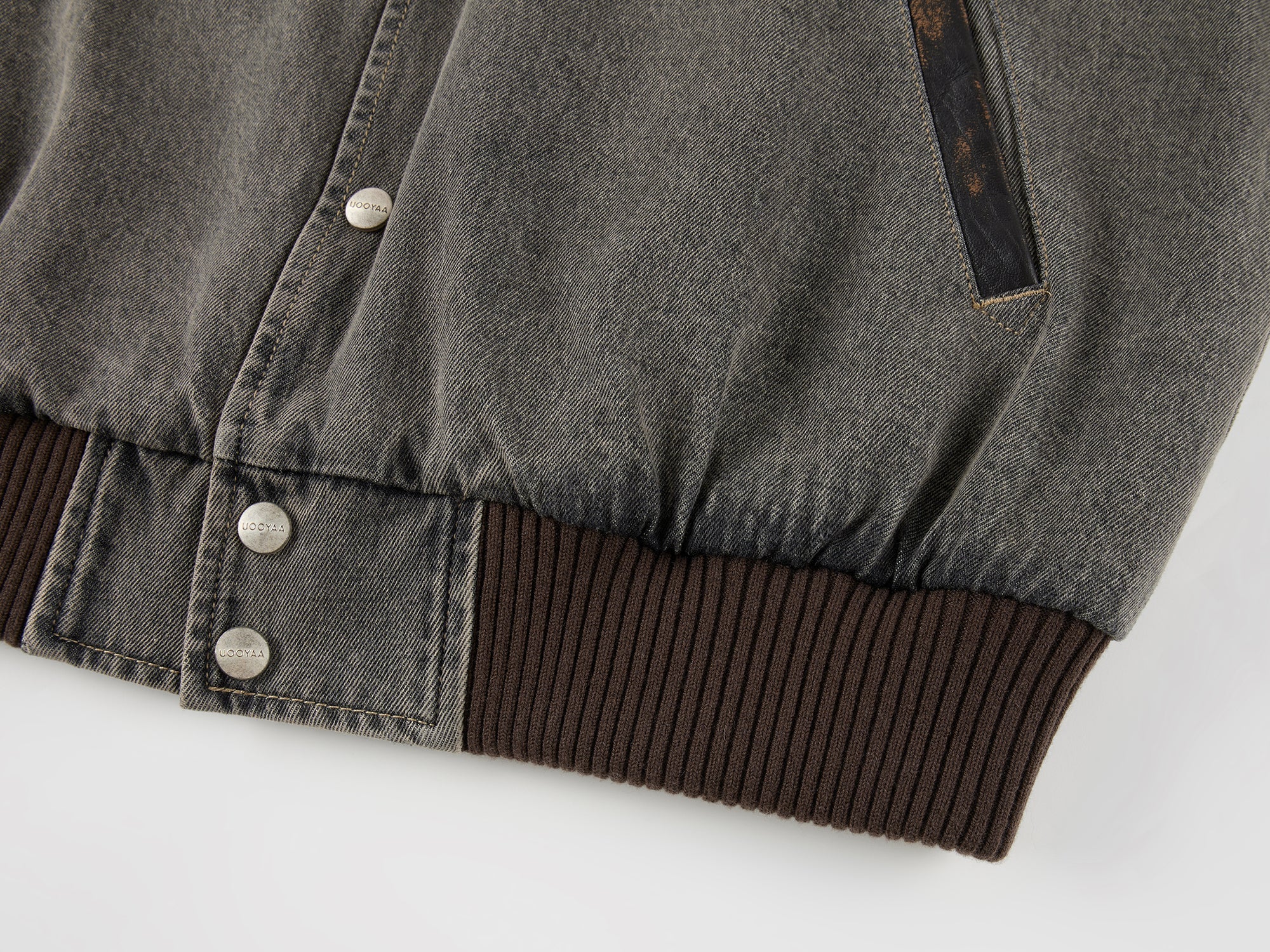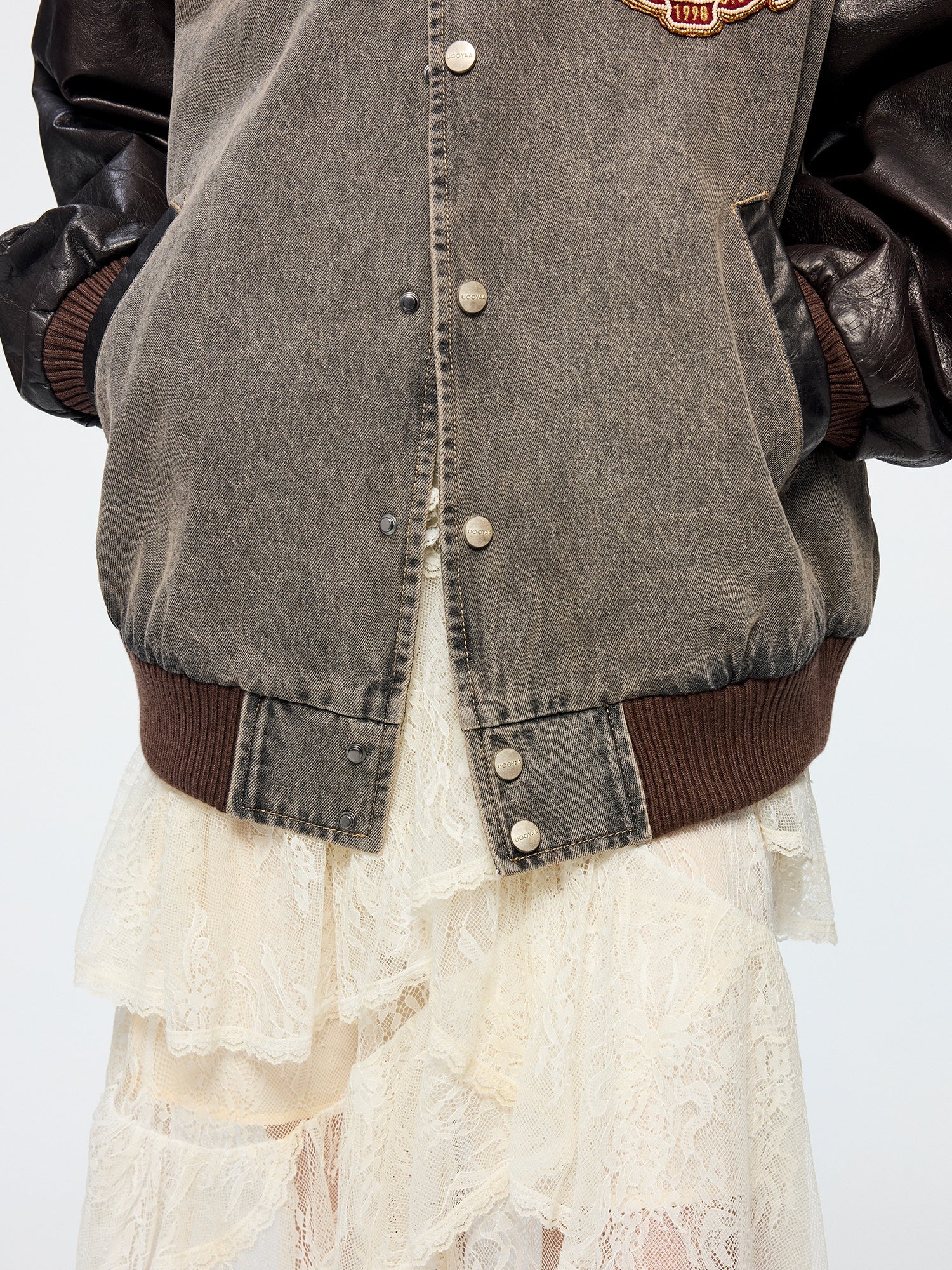 Baseball jacket with leather sleeves and badges