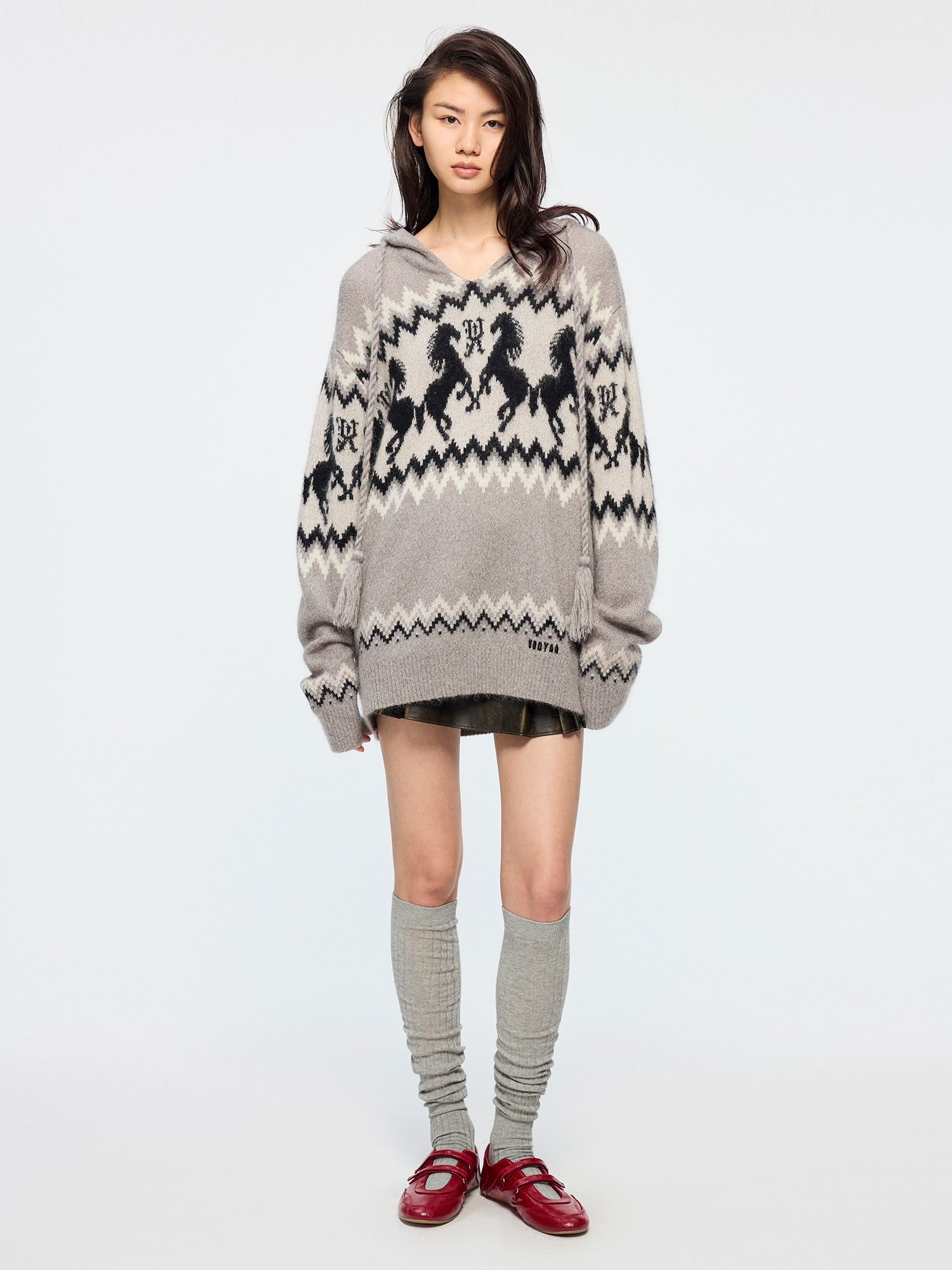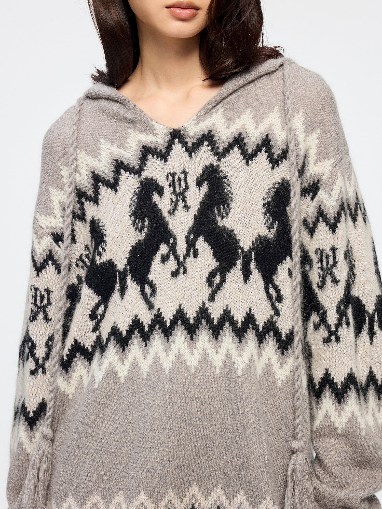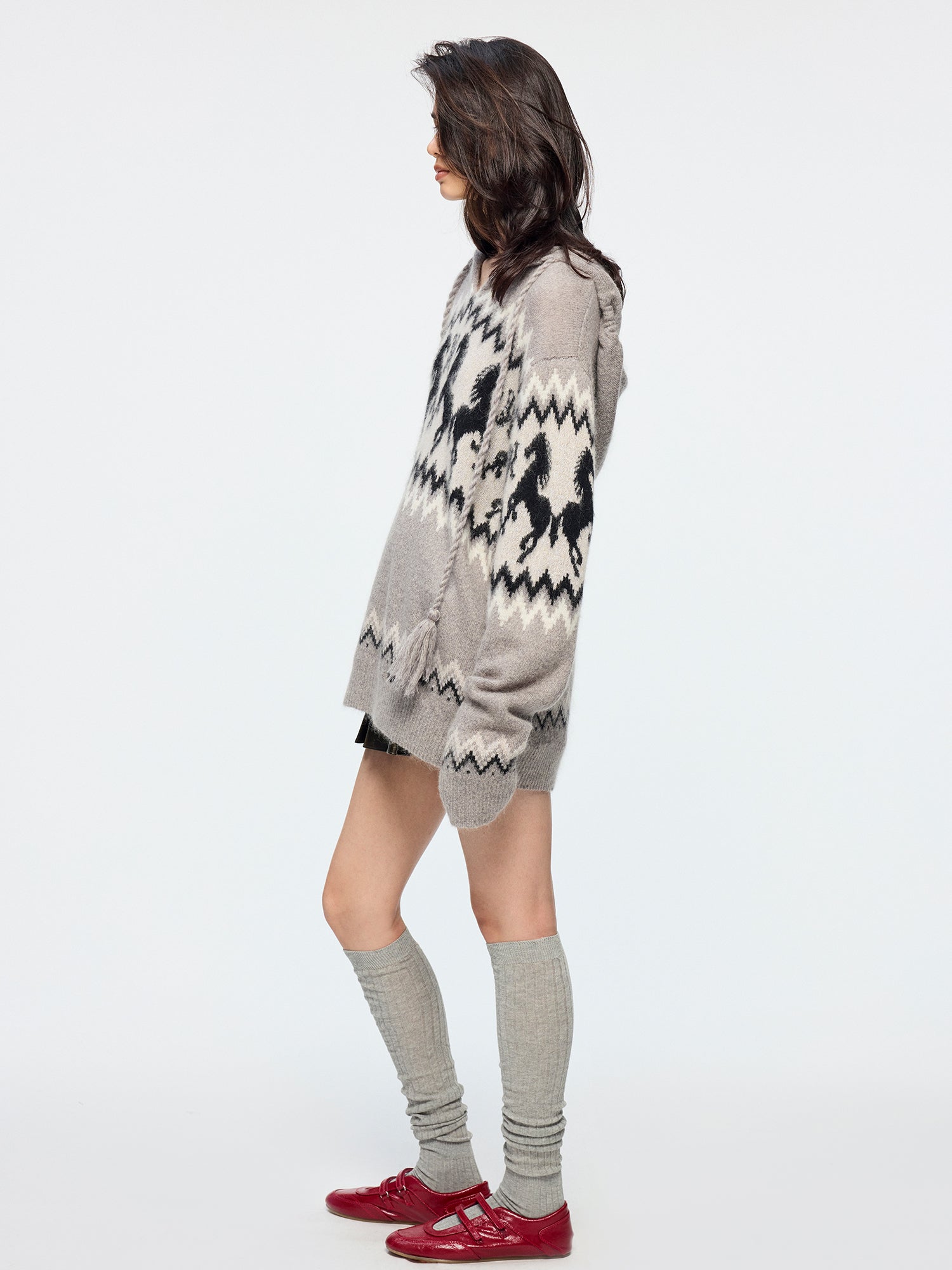 V-neck hooded silhouette with hand-braided tassel drawstrings maximizes vintage relaxation.Fabric: