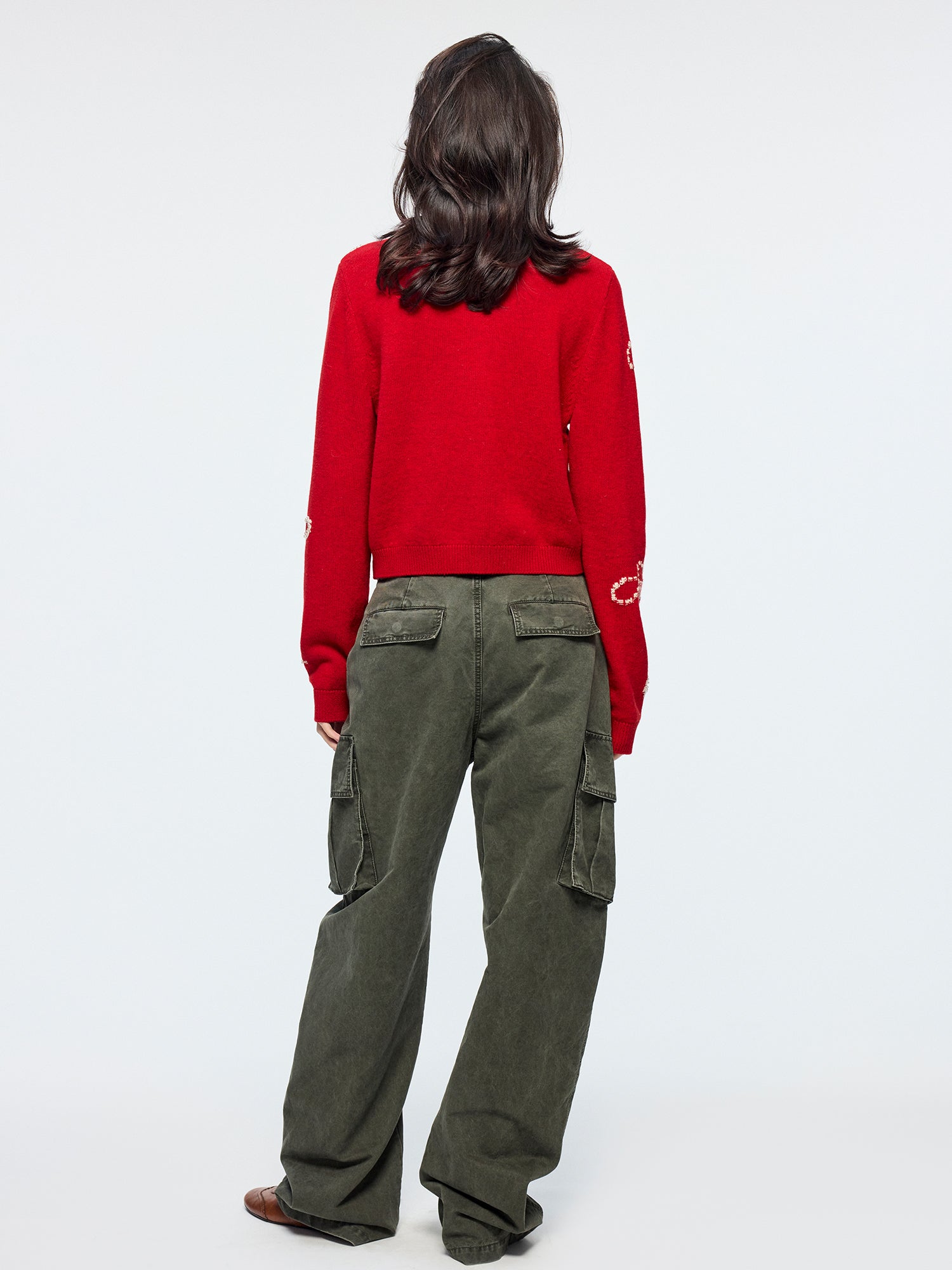 Fitted cropped cardigan in 100% pure wool features a 3D hand-crochet bow on the placket for rich texture and youthful playfulness.Fabric:
