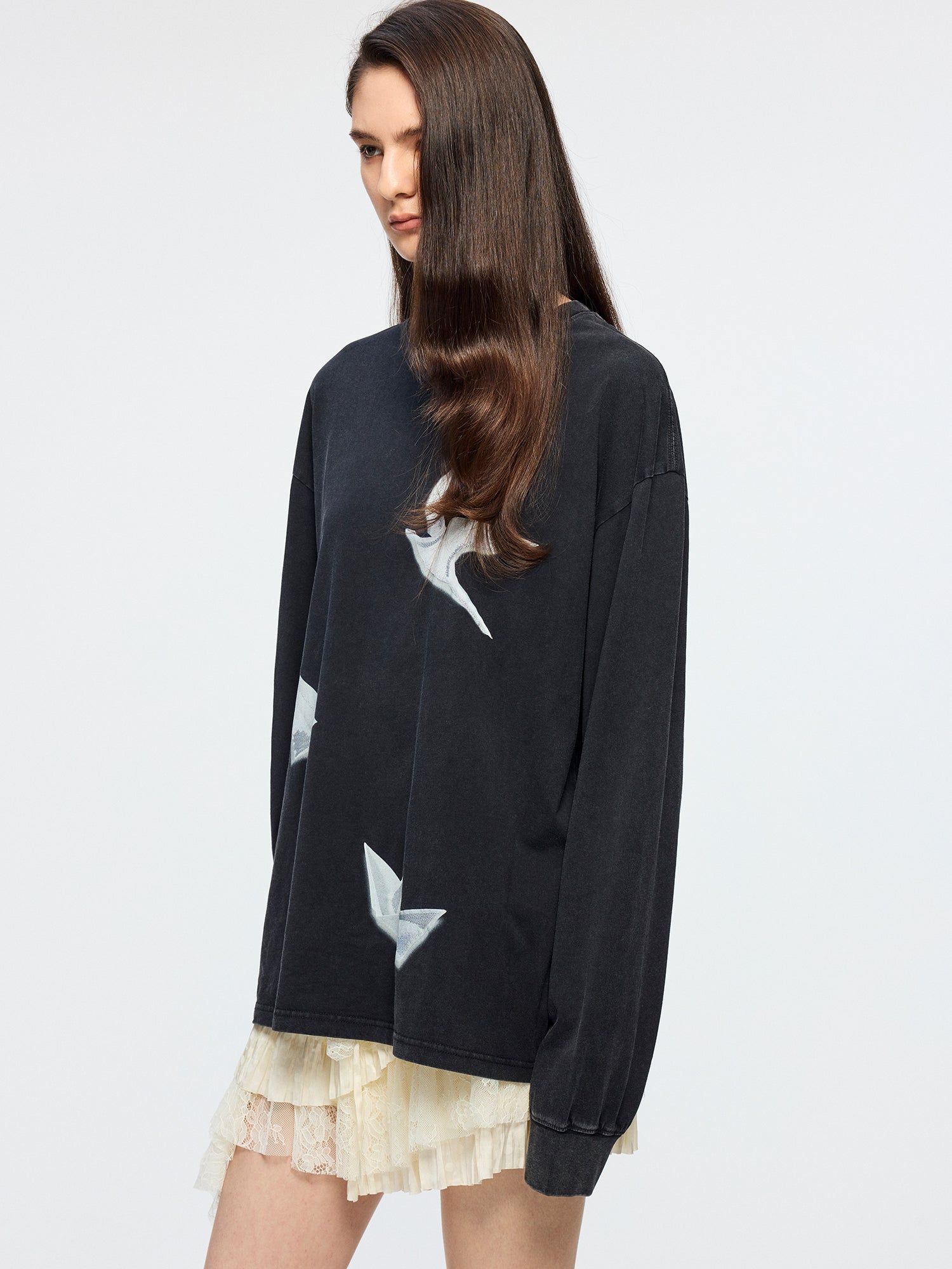 Origami bird embroidered long sleeve t-shirt