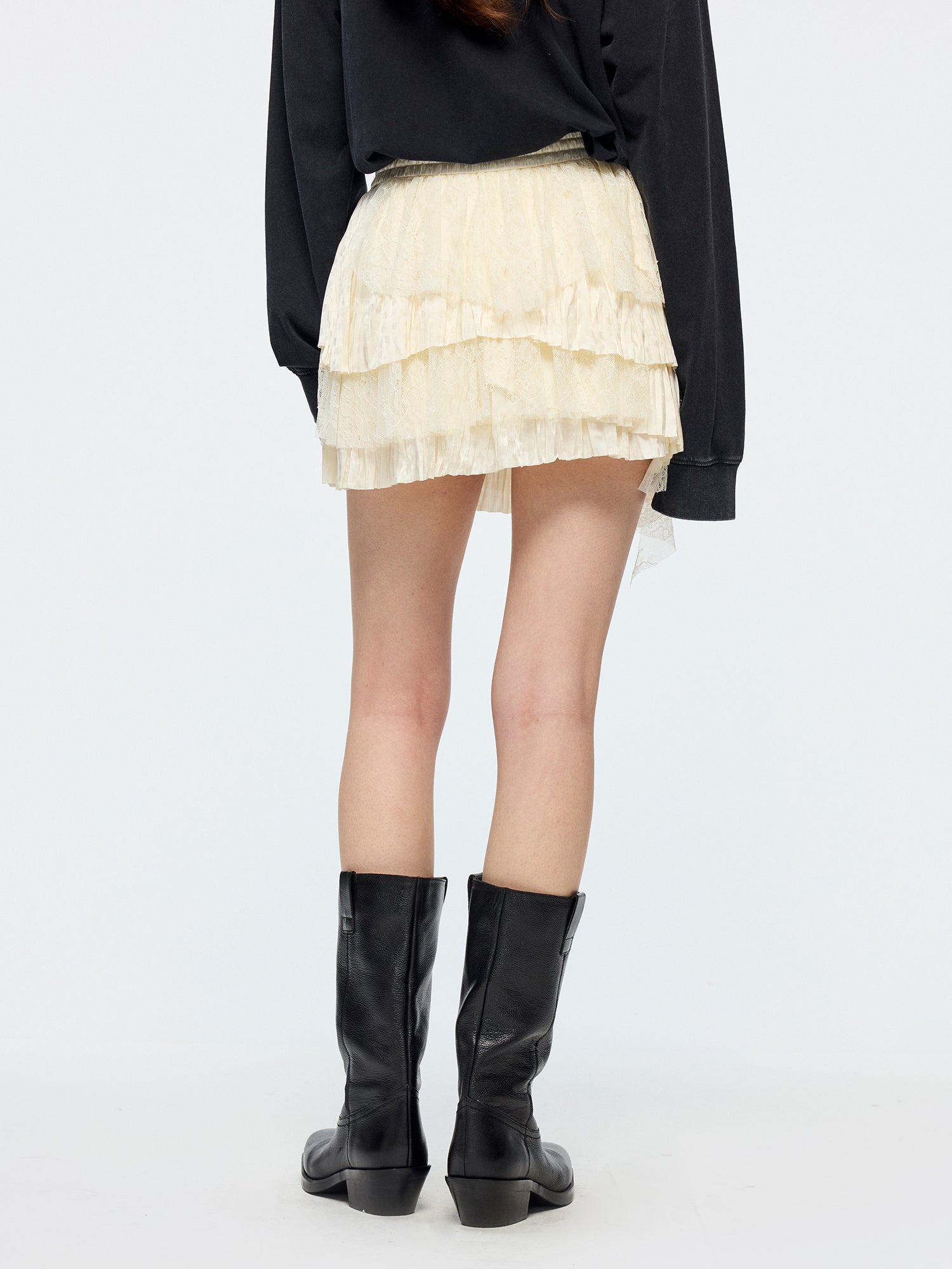 Lace patchwork tiered skirt