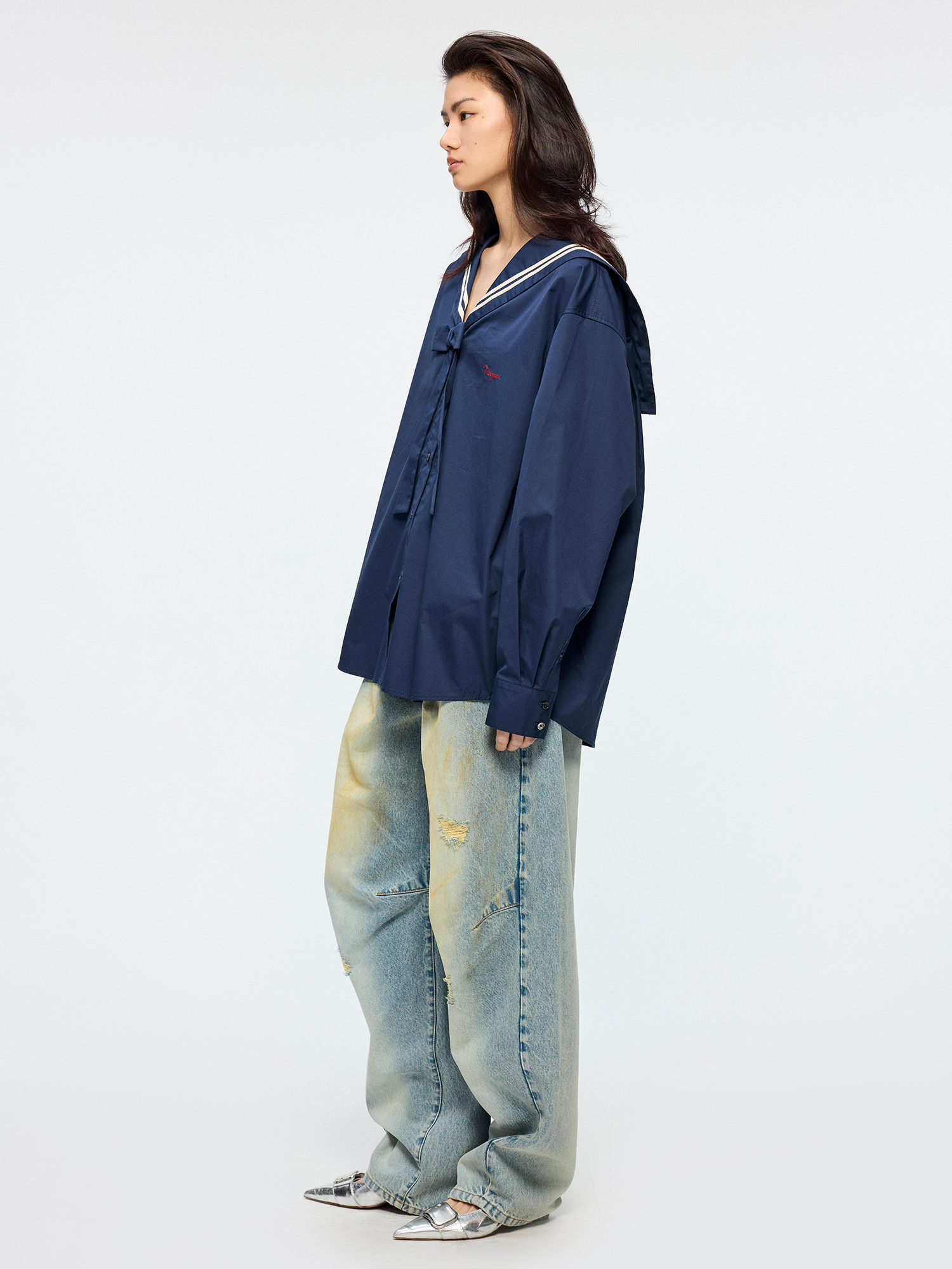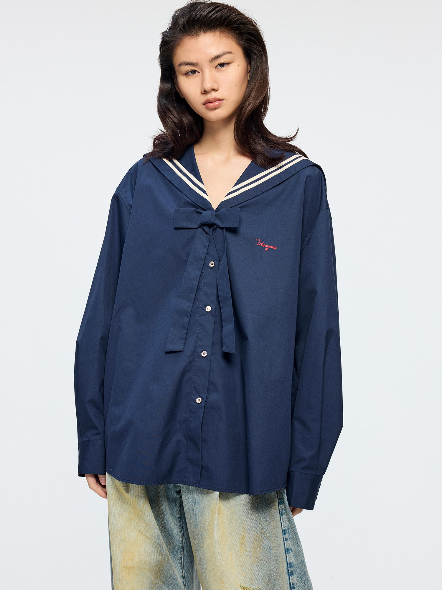 Classic sailor collar element featuring embroidered Dynamic Cherry on the back. Detachable 3D bow adds youthful playfulness.