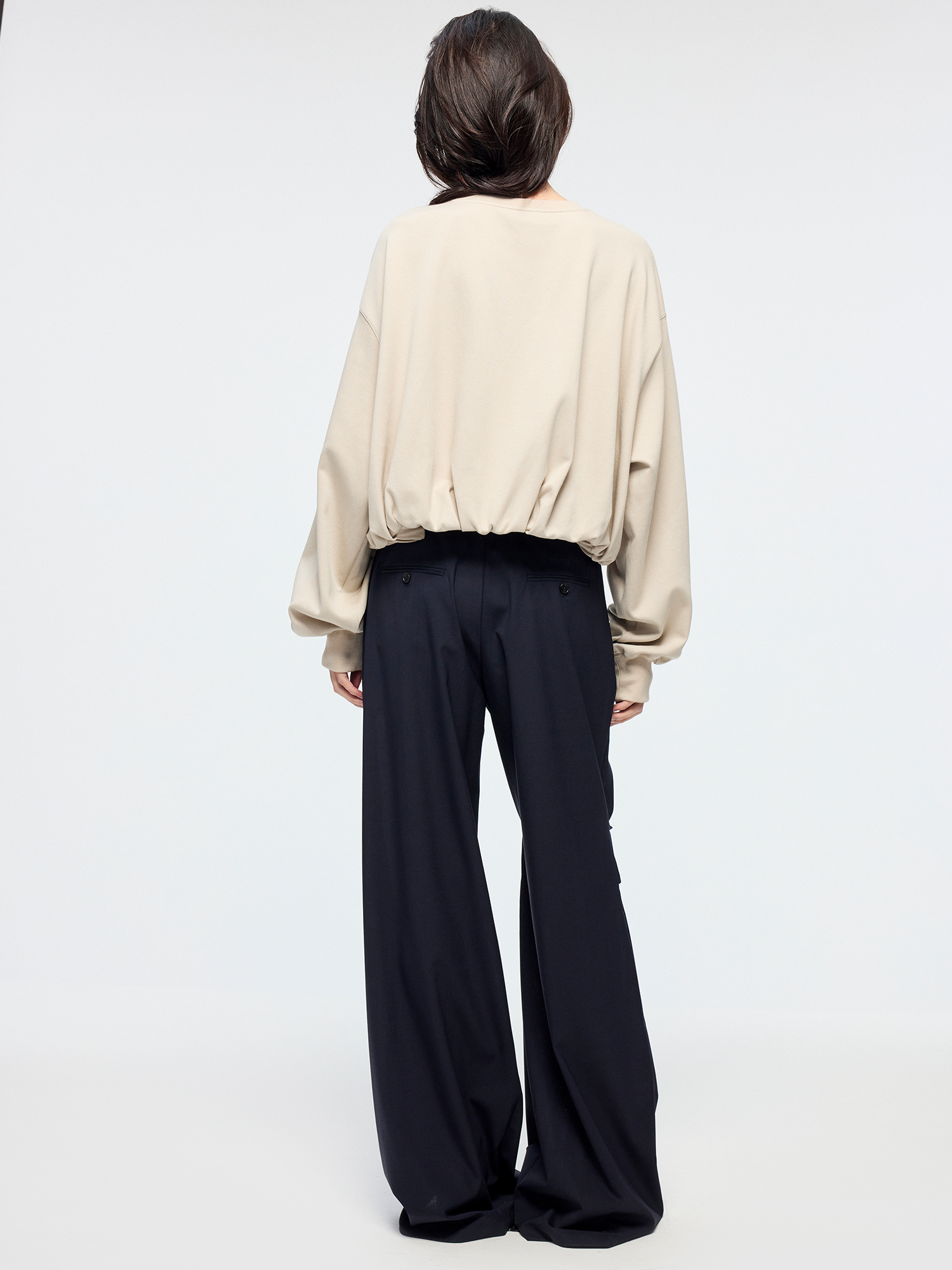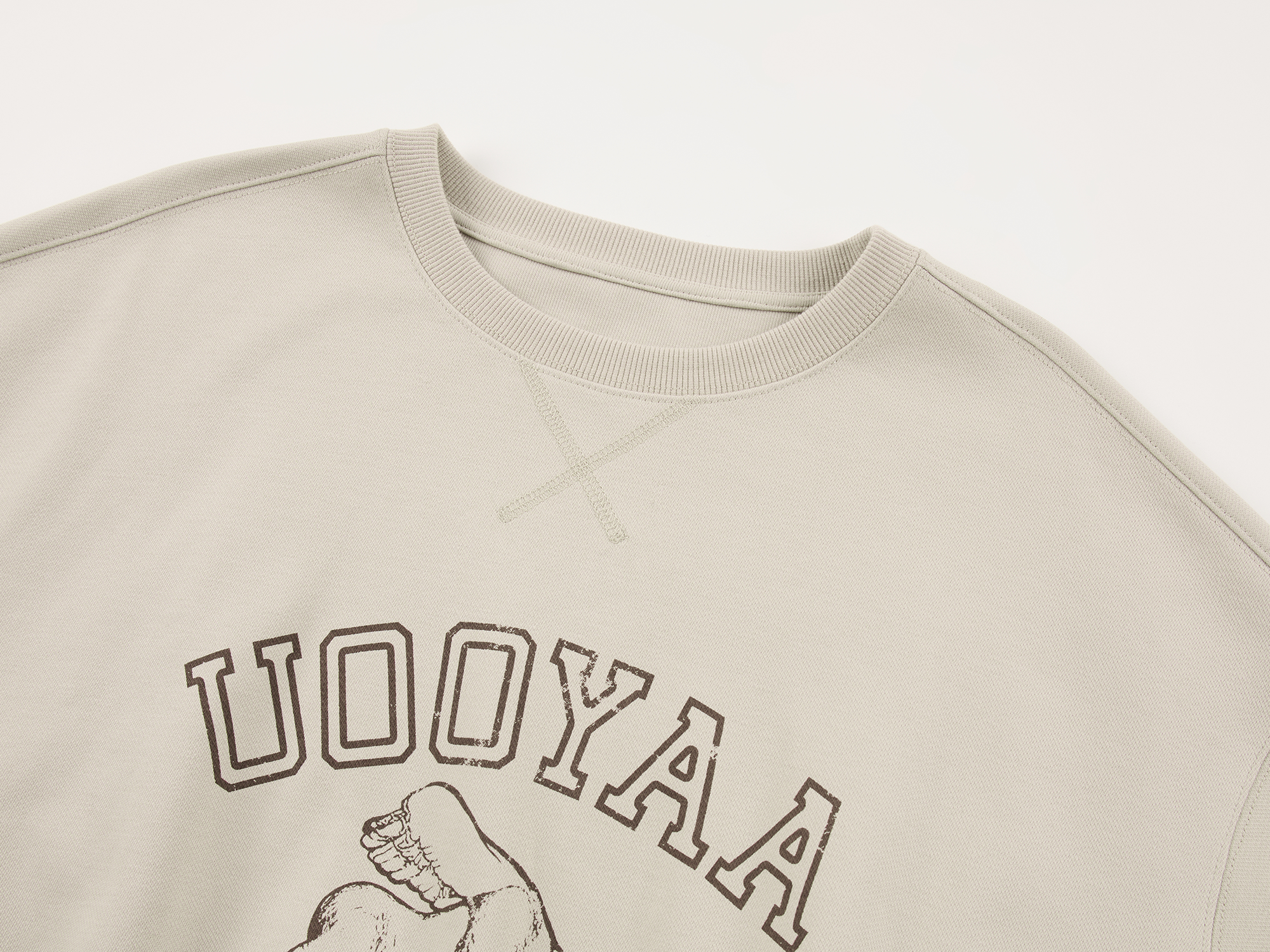 Angel collegiate print adorns this sweatshirt. Pleated pocket design at the hem adds a casual, playful twist.