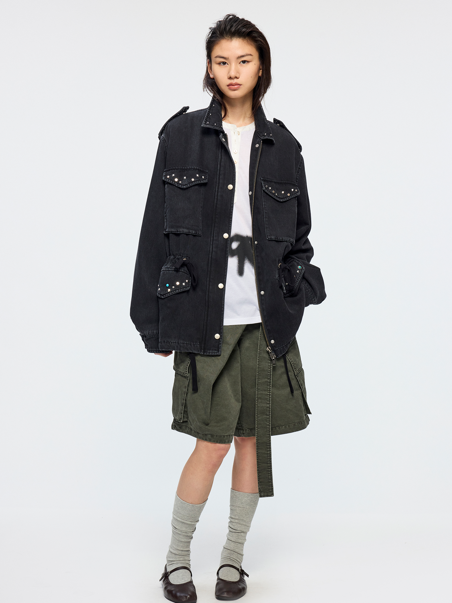 Studded washed jacket