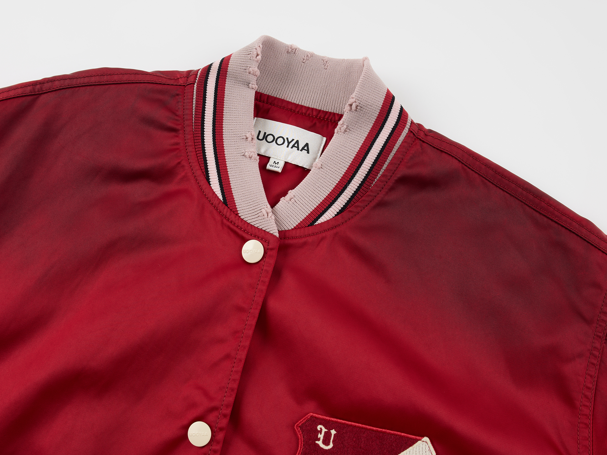 Classic bomber jacket features localized "dirty spray" vintage finish and Dynamic Cherry badges¡ªretro and casual.