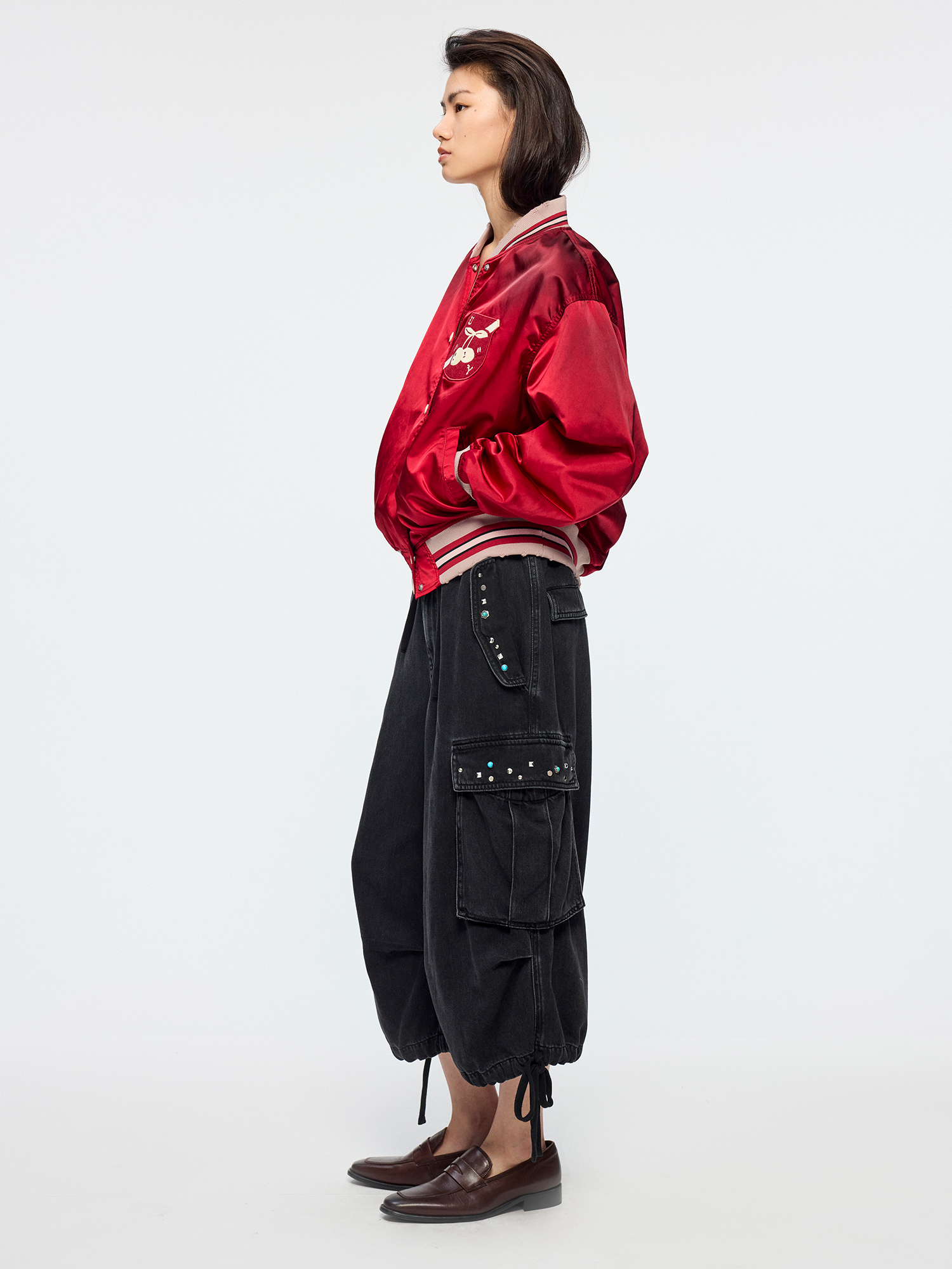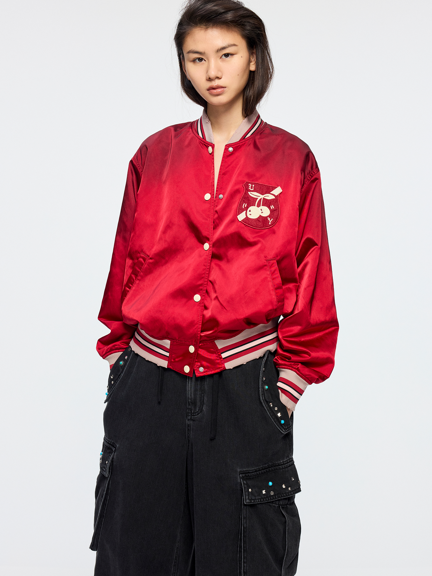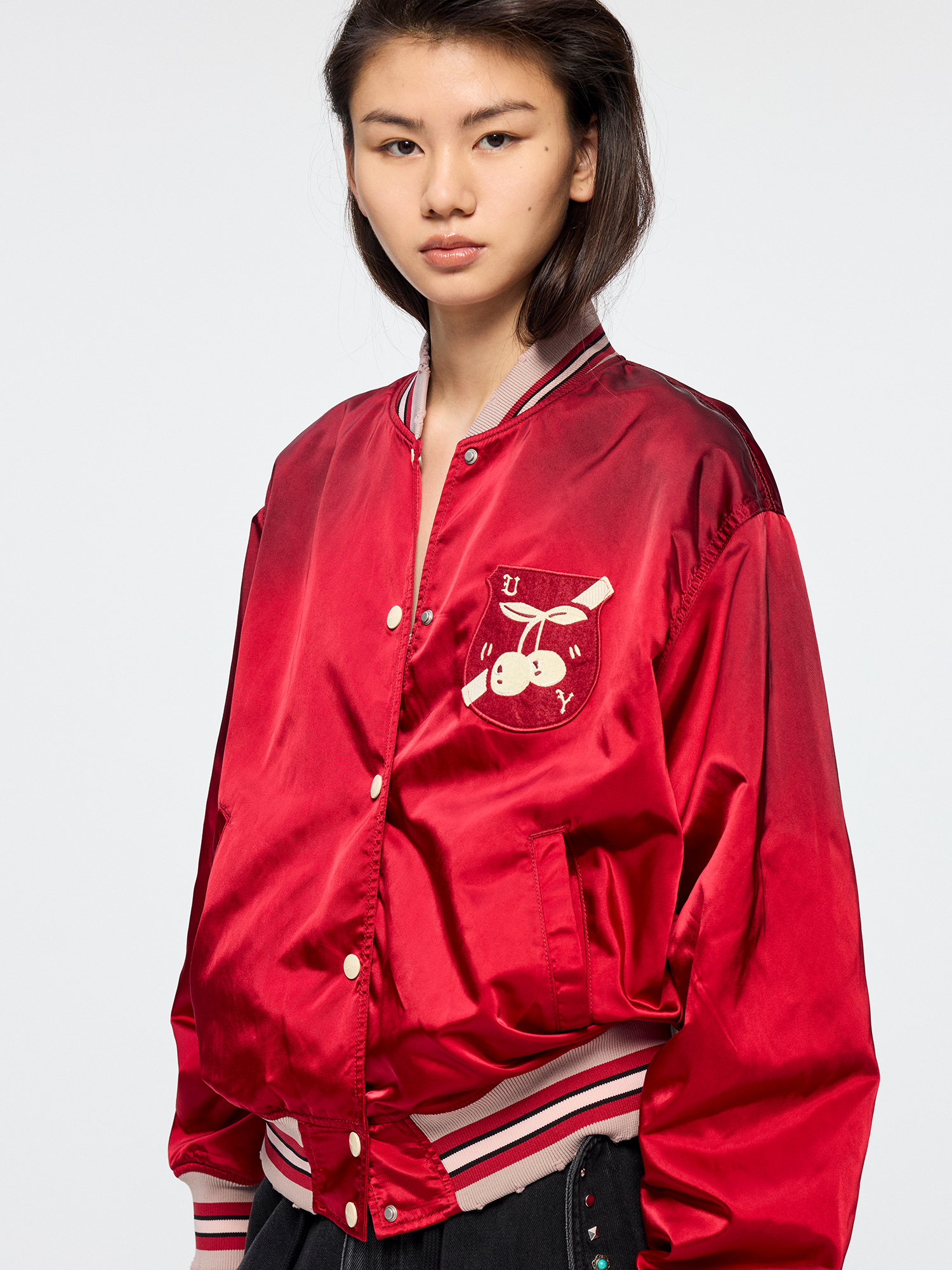 Dynamic cherry vintage bomber jacket