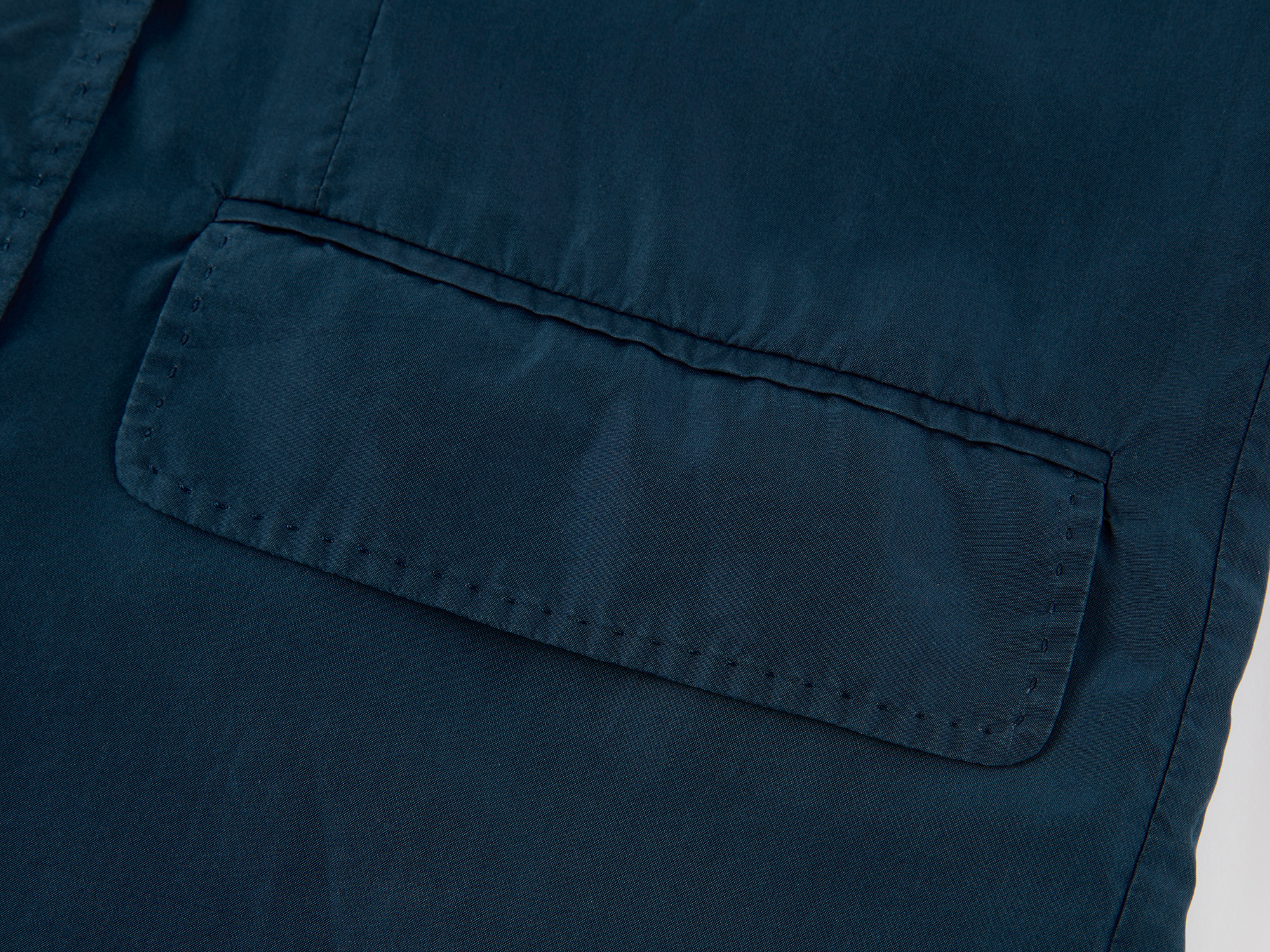 Garment washed for a wrinkled effect, shaping a nostalgic, casual look while retaining pick-stitch details for refinement.Fabric: