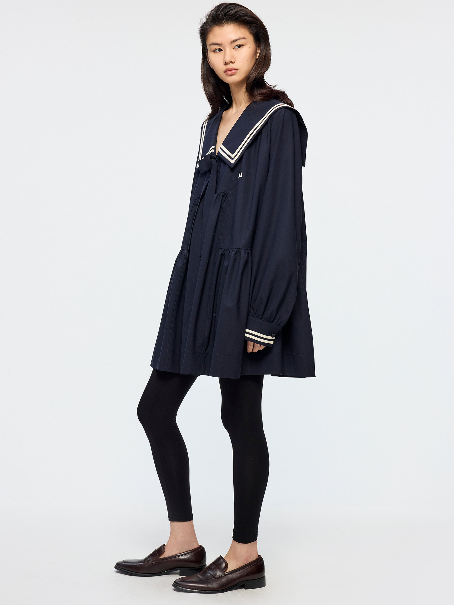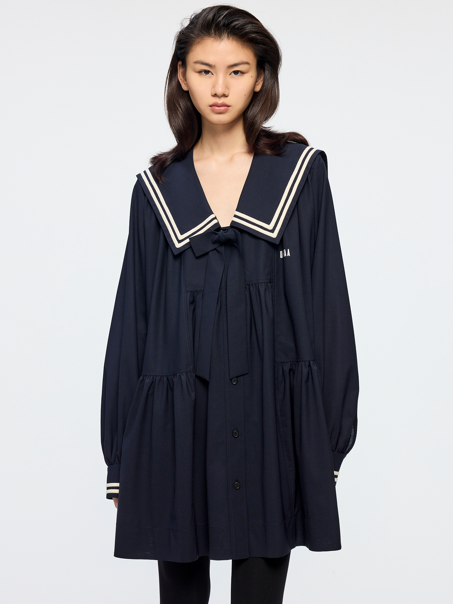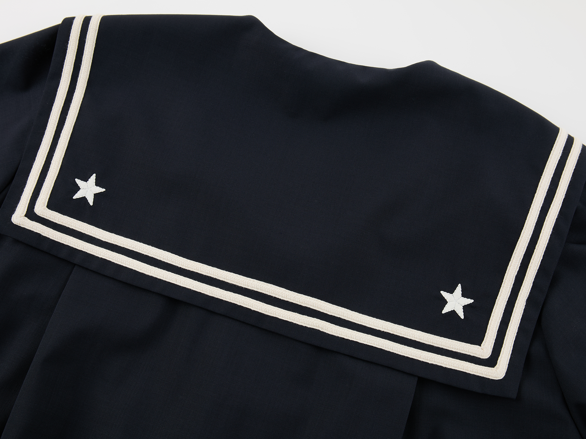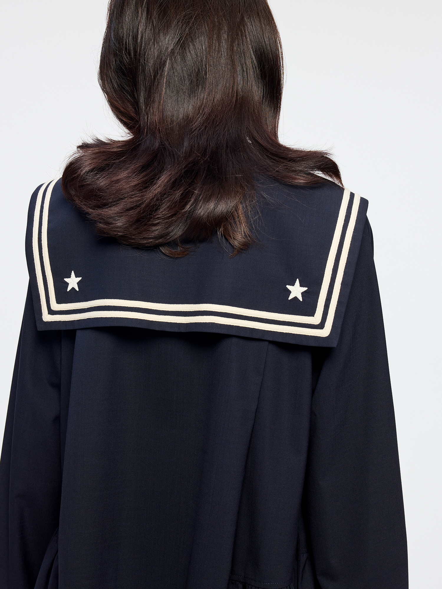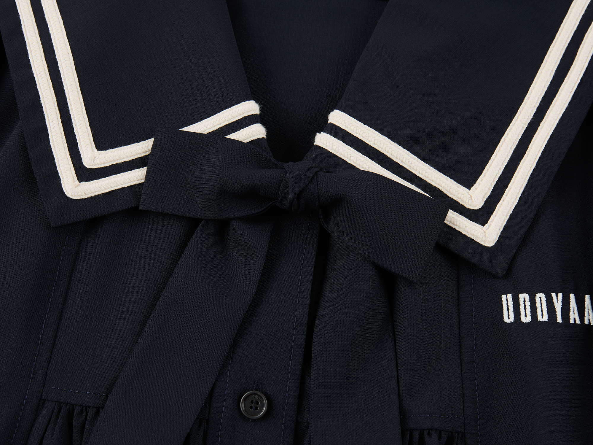 Classic sailor collar element paired with a detachable 3D bow¡ªyouthful and playful.