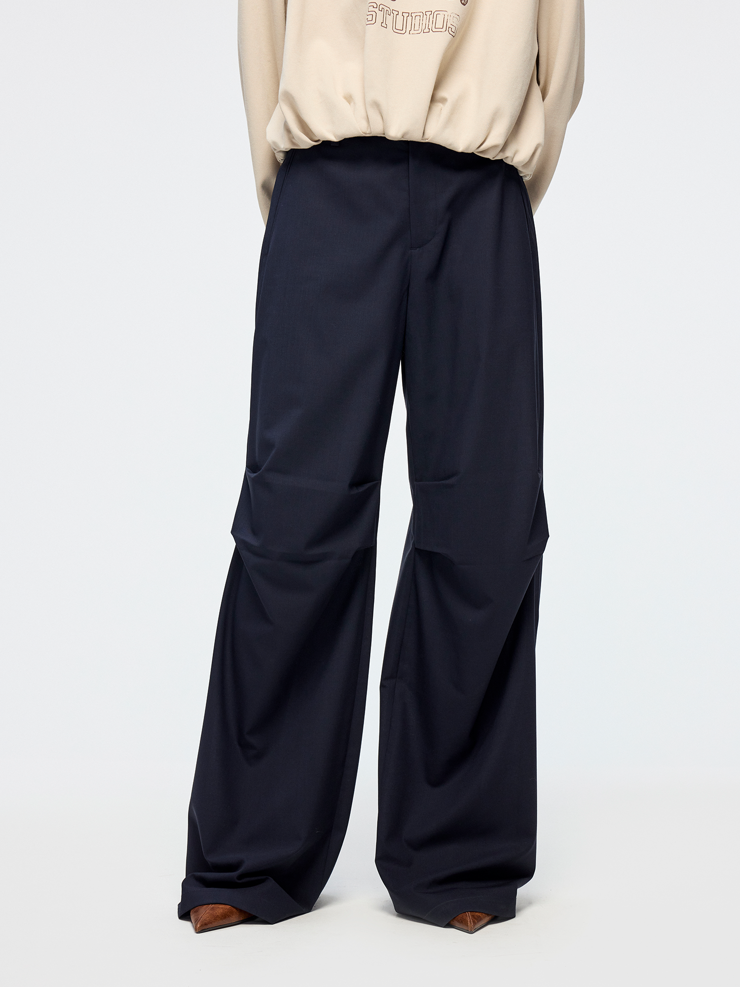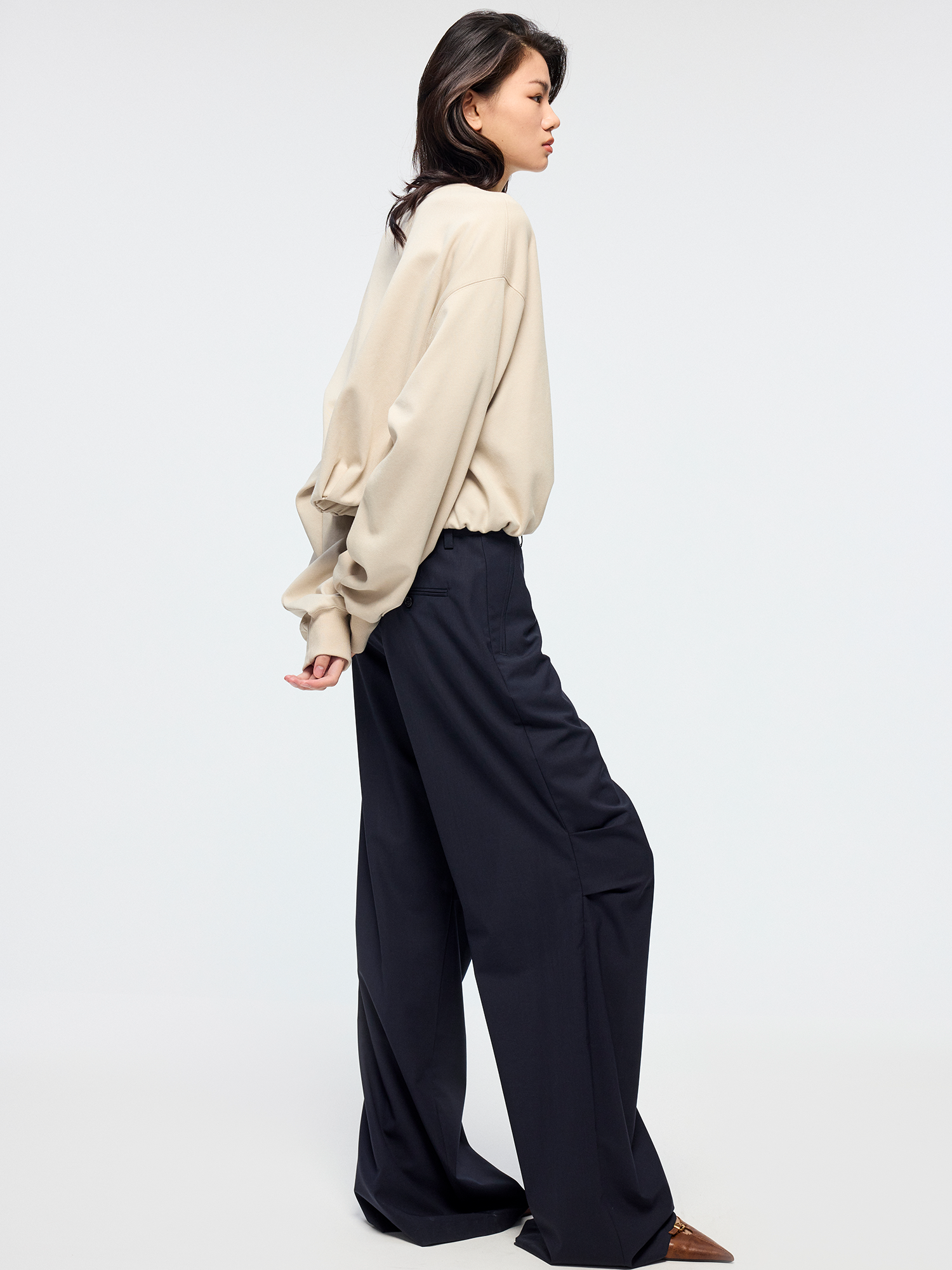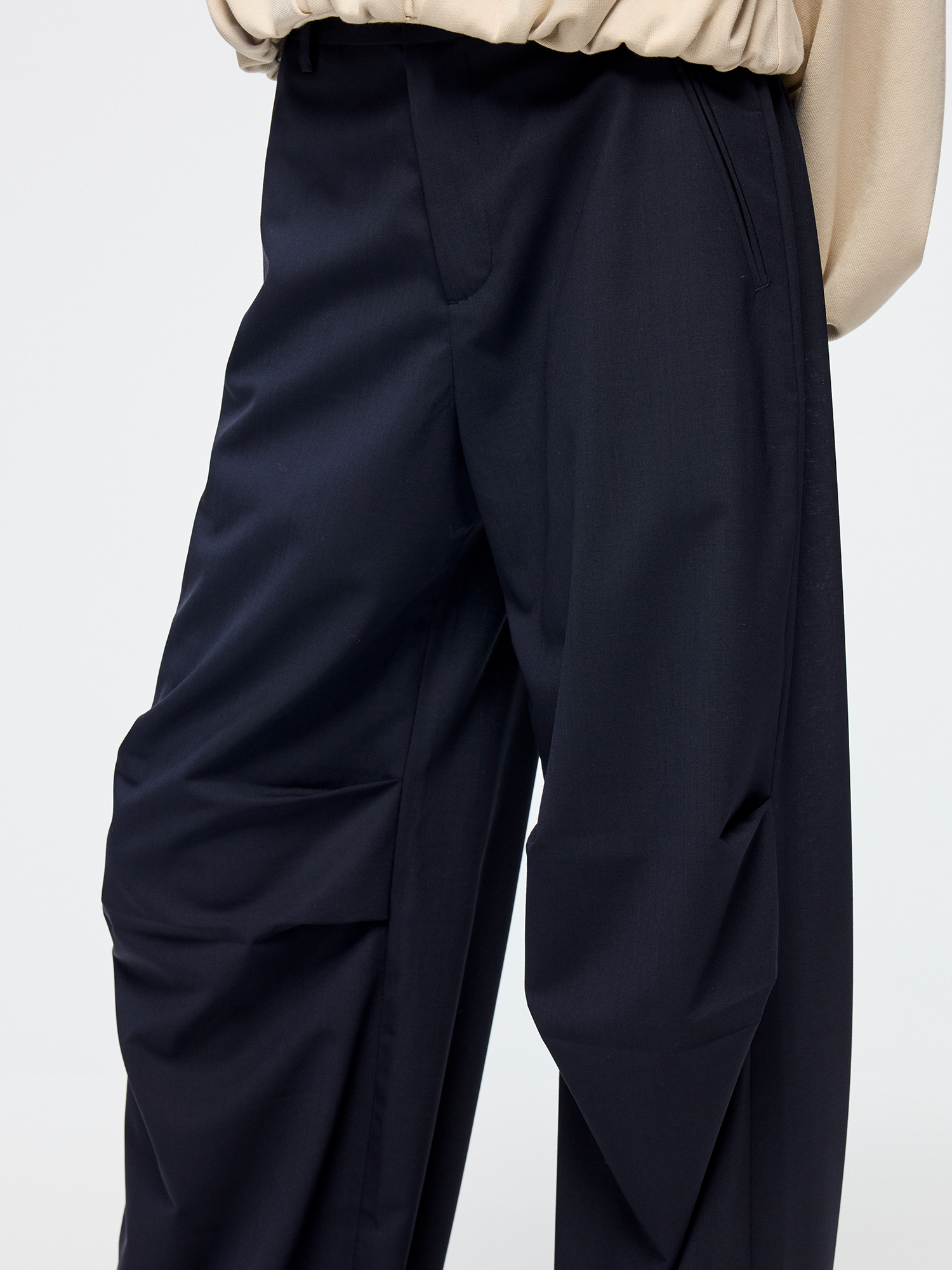 Relaxed pleated silhouette reinterprets the classic men's trouser waist¡ªloose and inclusive.