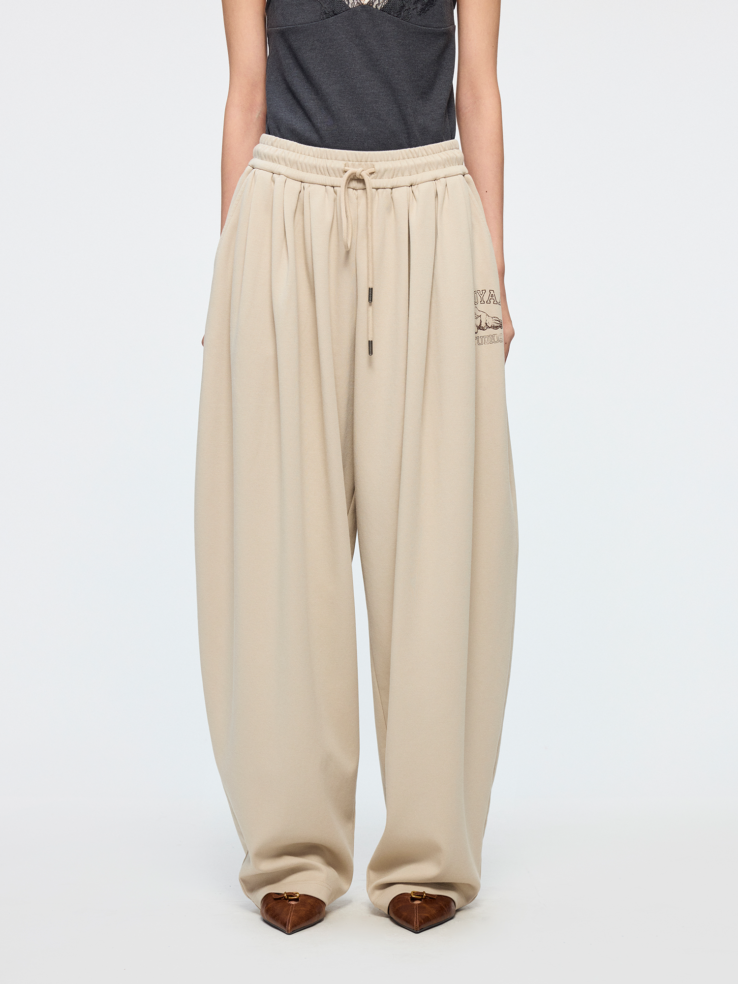 Angel collegiate print dots these loose balloon pants. Inclusive fit offers an instant casual vibe.