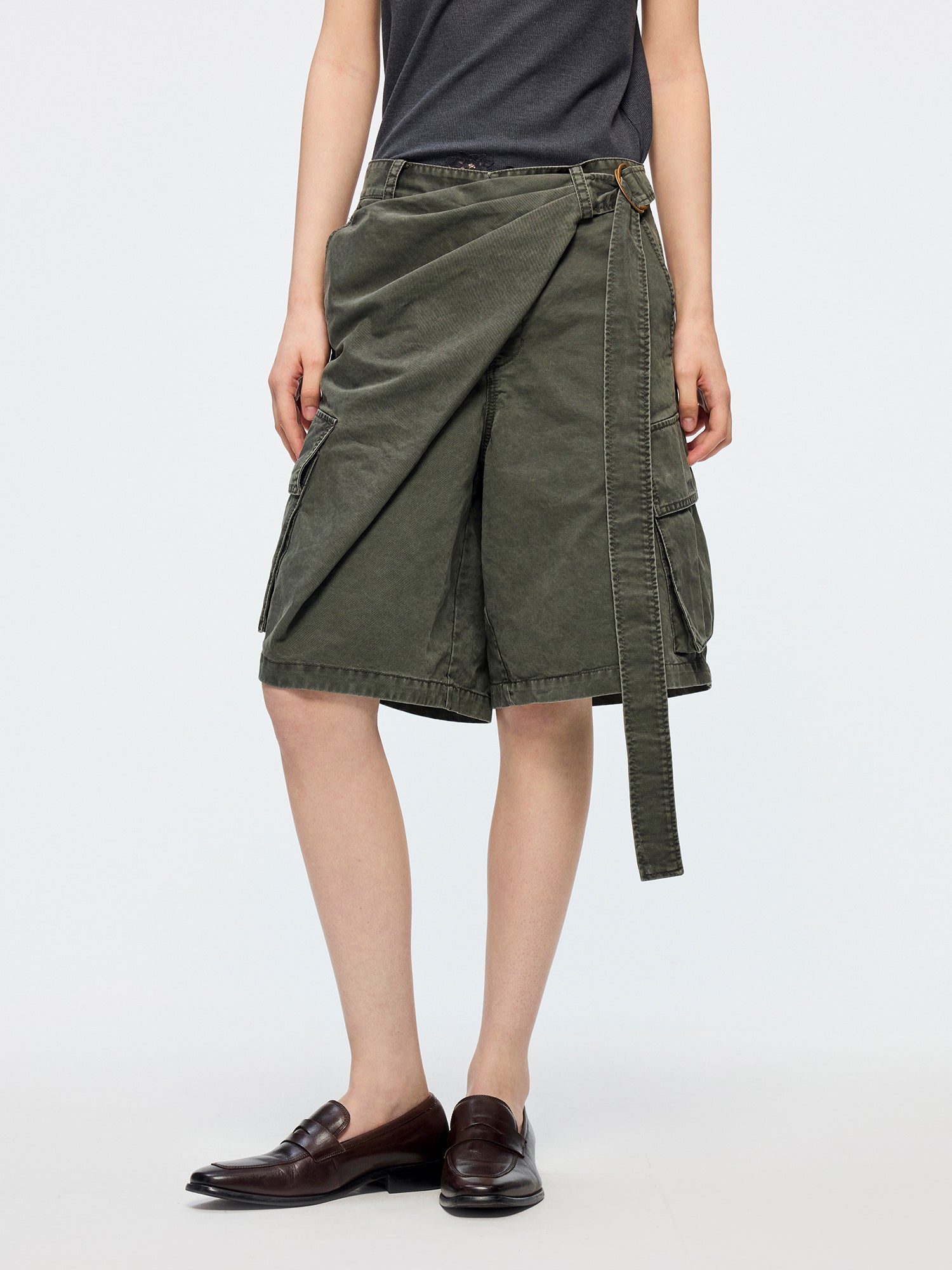 Wrap waist cargo shorts
